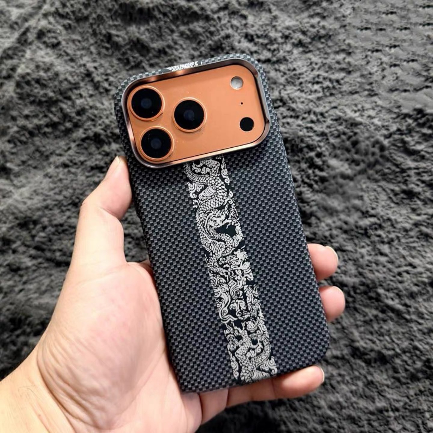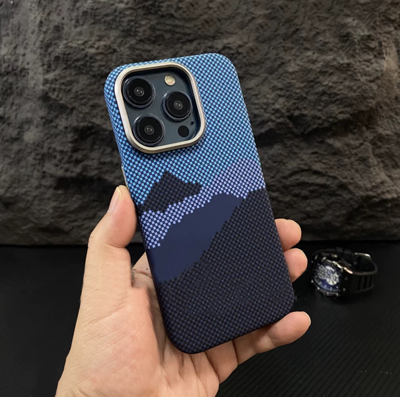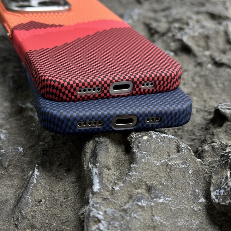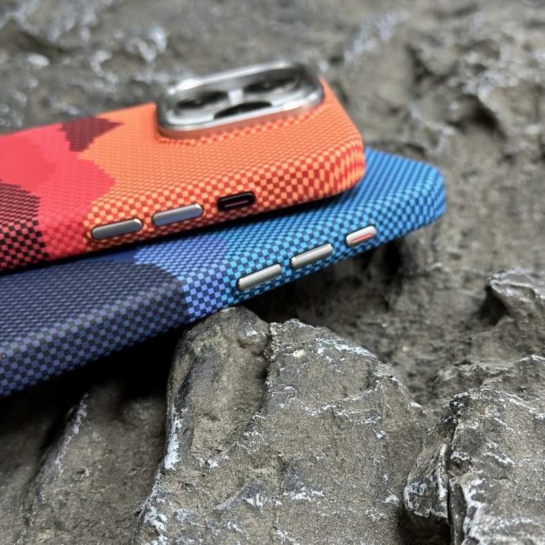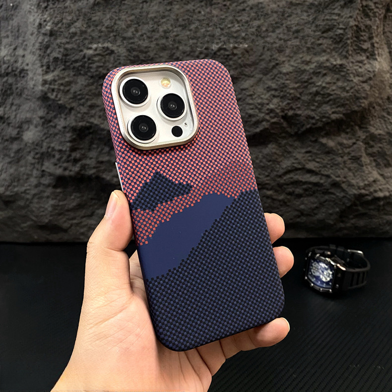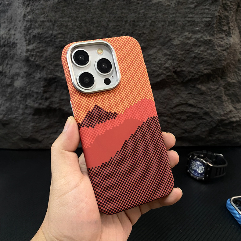 Apple 17ProMax Kevlar 질감 휴대폰 케이스 iPhone16 야간 조명에 적합한 새로운 산과 별의 강철 자기 흡입