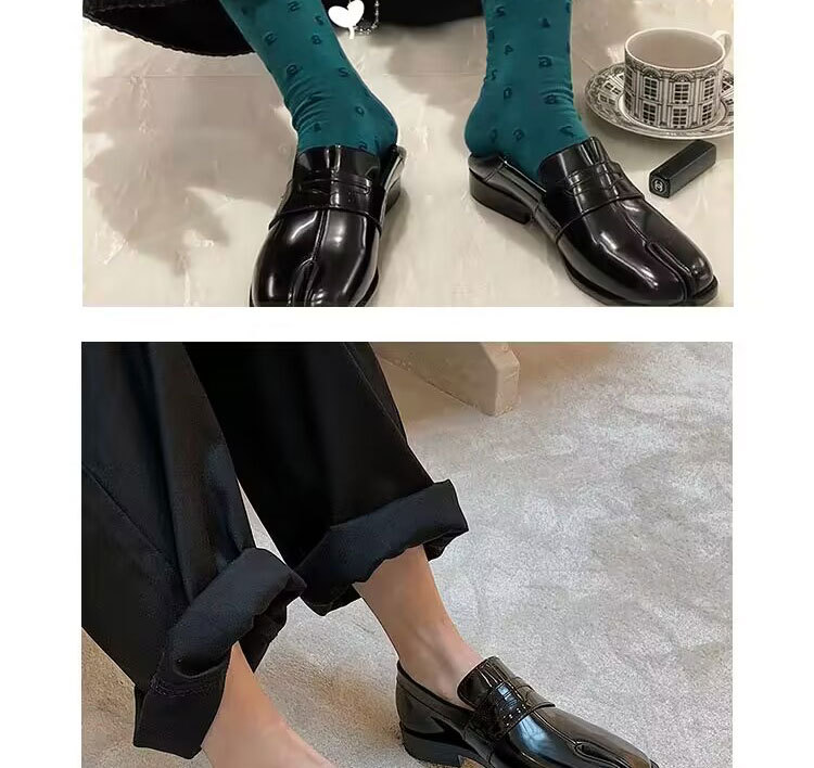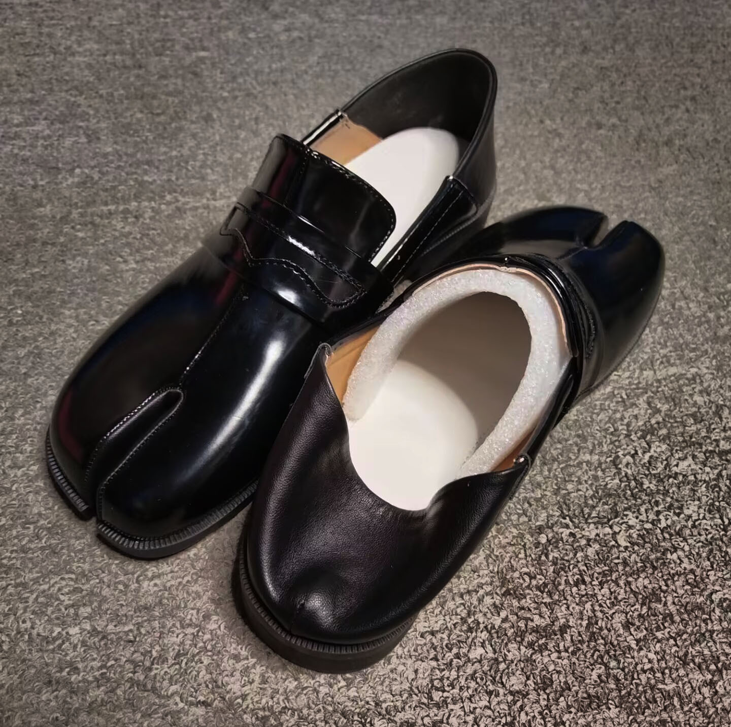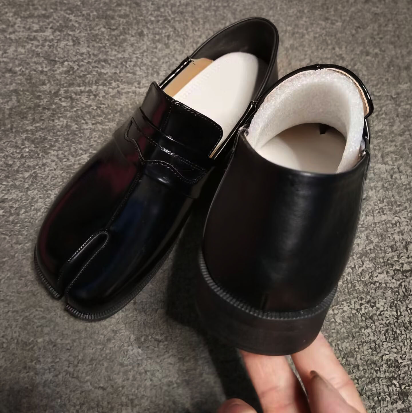 스플릿 발가락 로퍼 여성의 새로운 복고풍 영국 스타일 슬립 온 신발 유행 추악한 귀여운 특허 가죽 신발 단층 신발스토어 가기