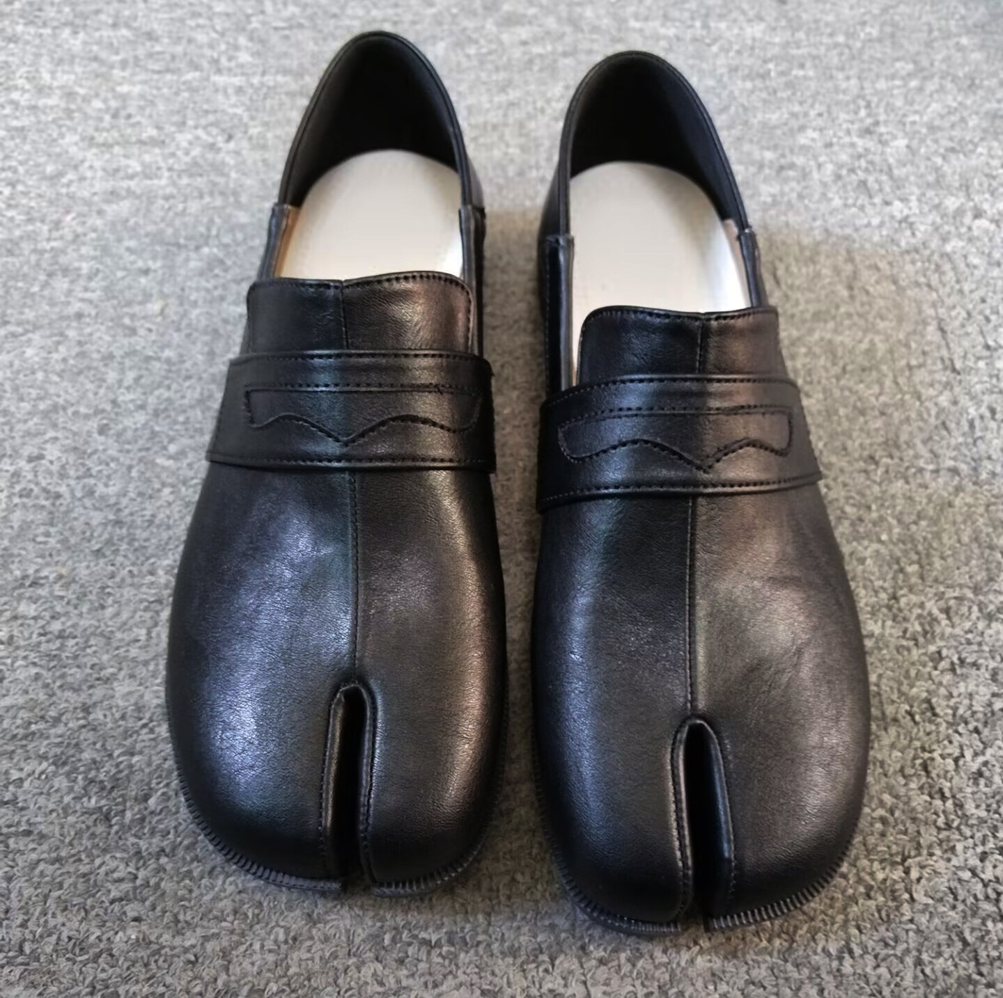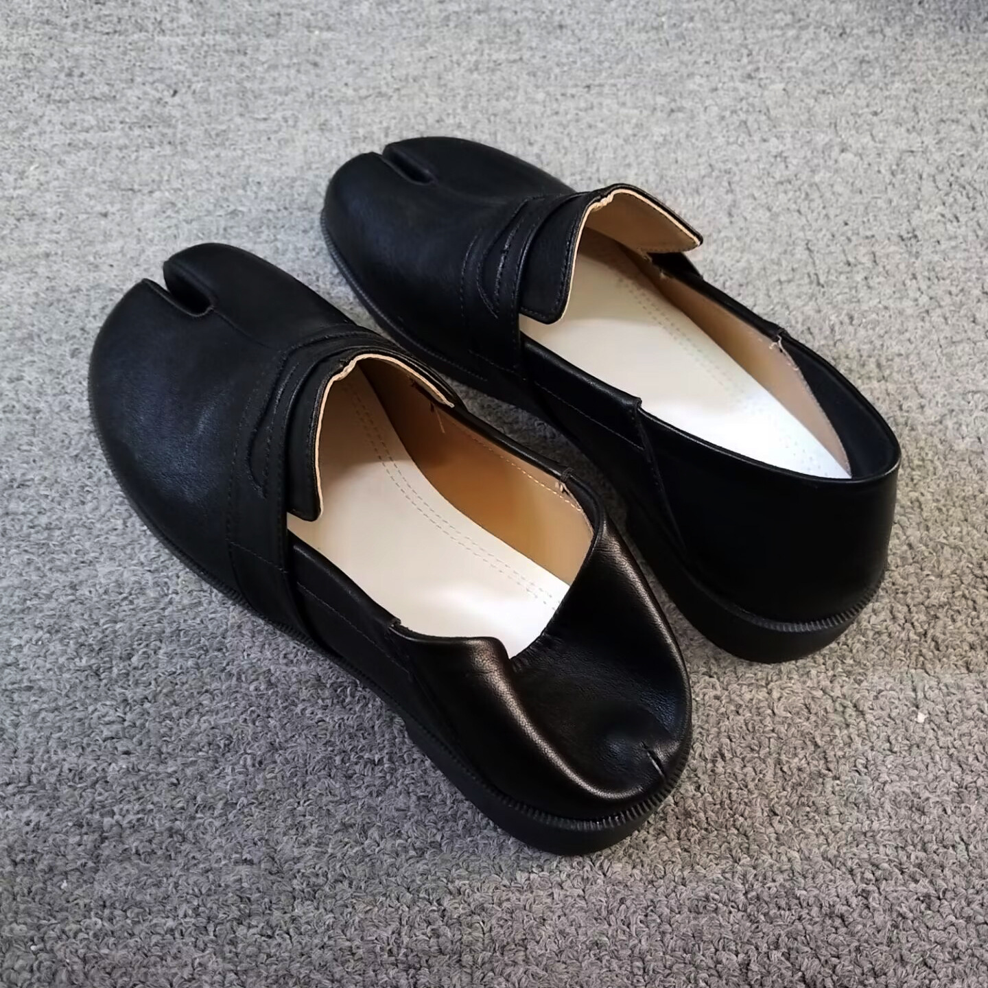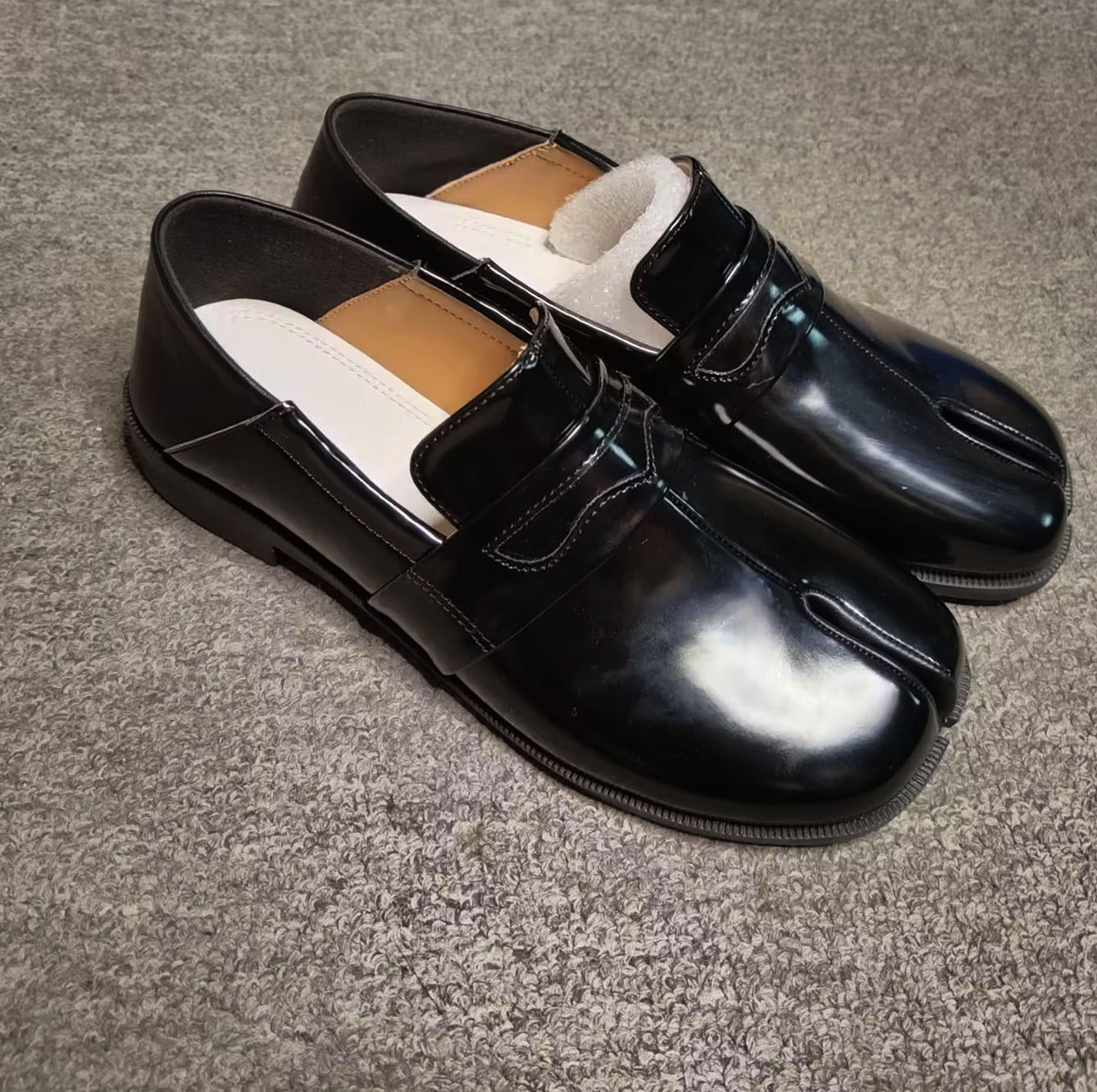 스플릿 발가락 로퍼 여성의 새로운 복고풍 영국 스타일 슬립 온 신발 유행 추악한 귀여운 특허 가죽 신발 단층 신발
