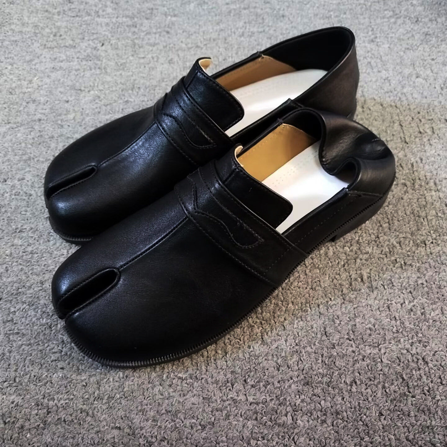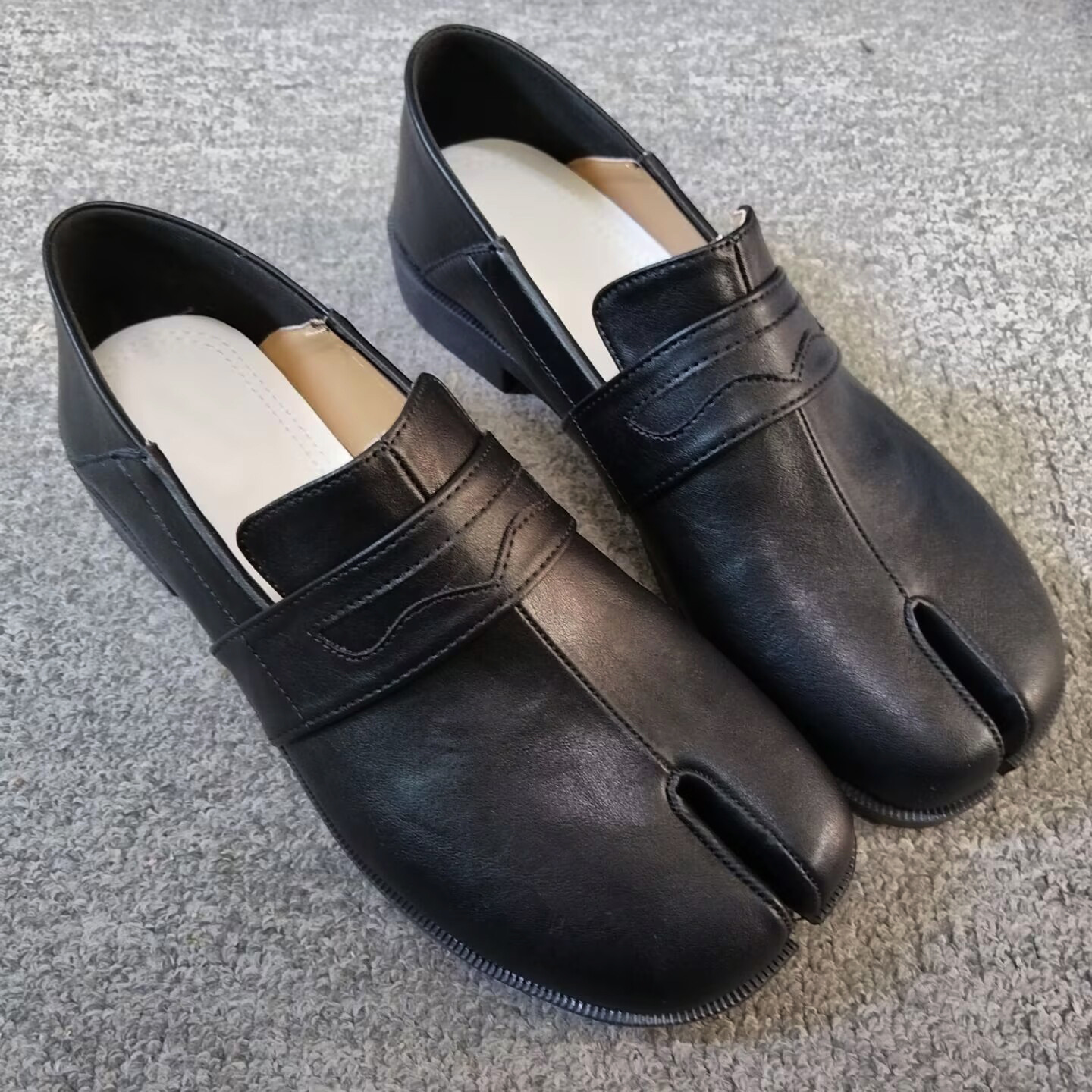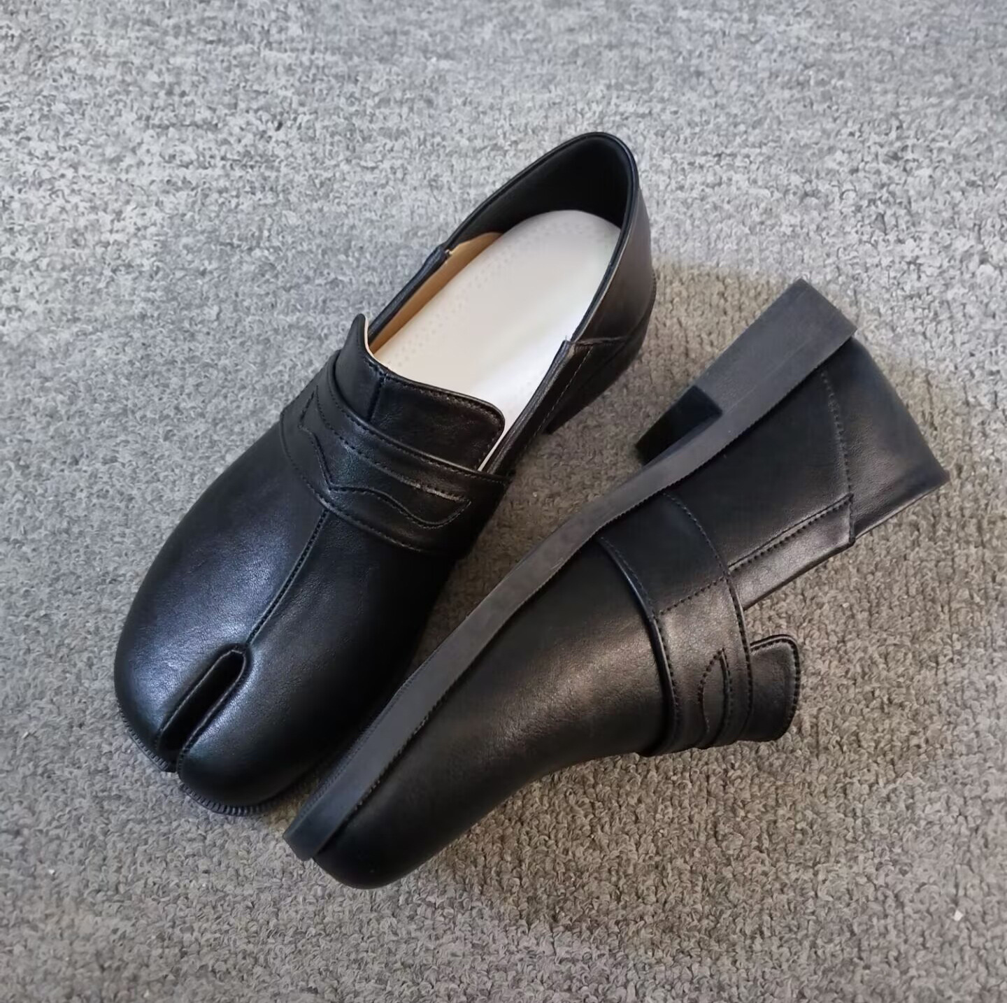 스플릿 발가락 로퍼 여성의 새로운 복고풍 영국 스타일 슬립 온 신발 유행 추악한 귀여운 특허 가죽 신발 단층 신발