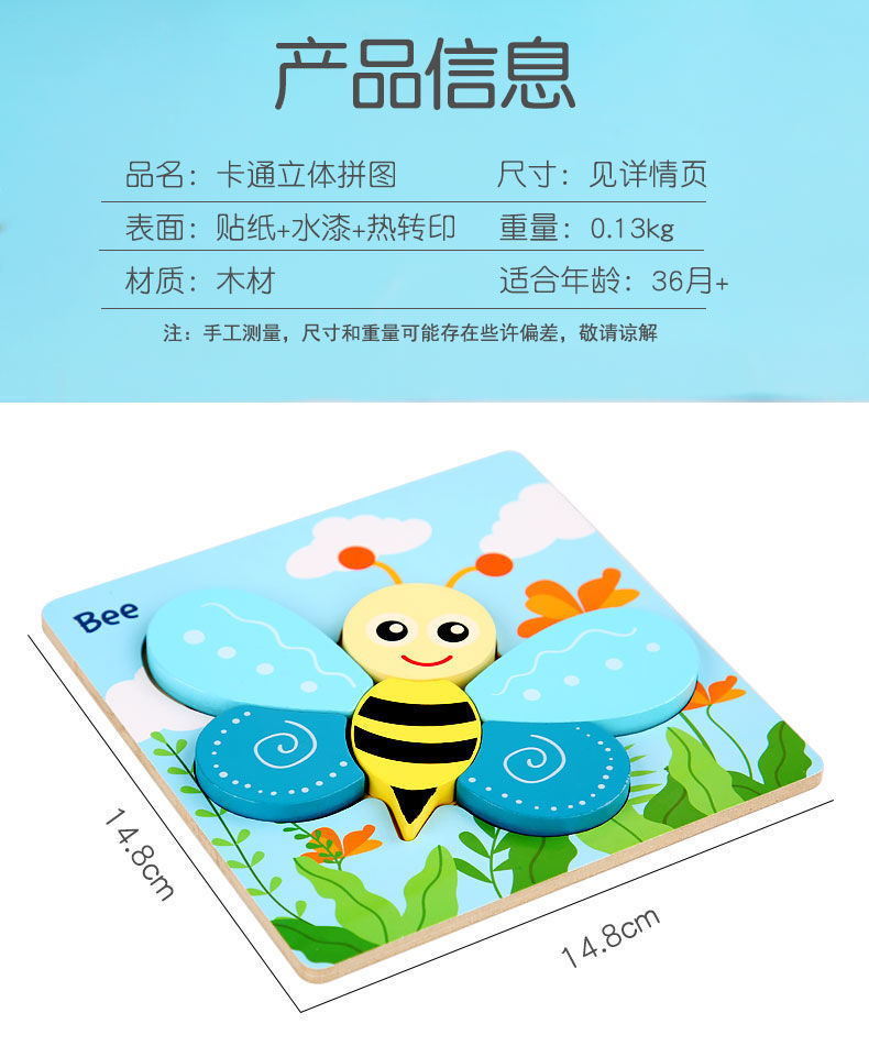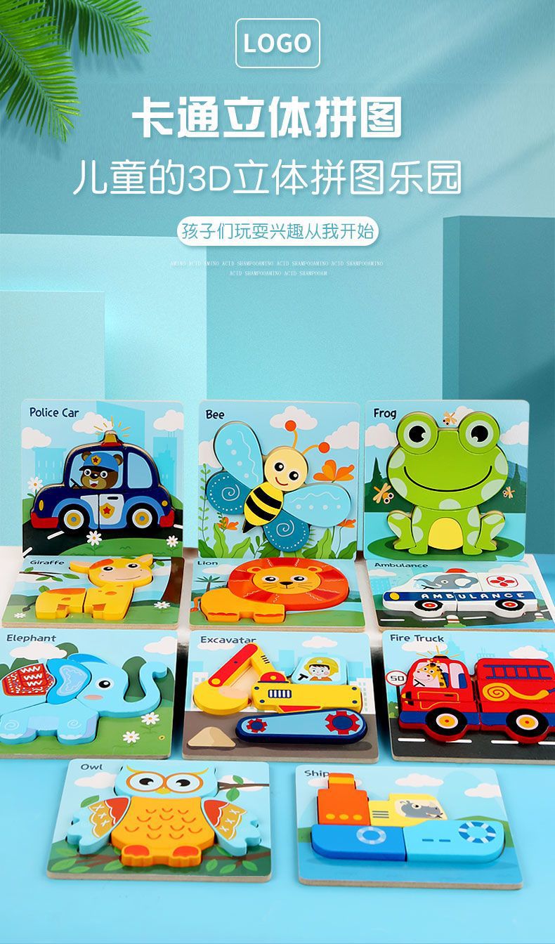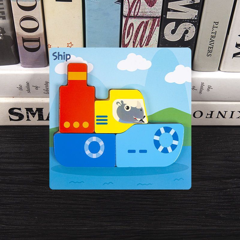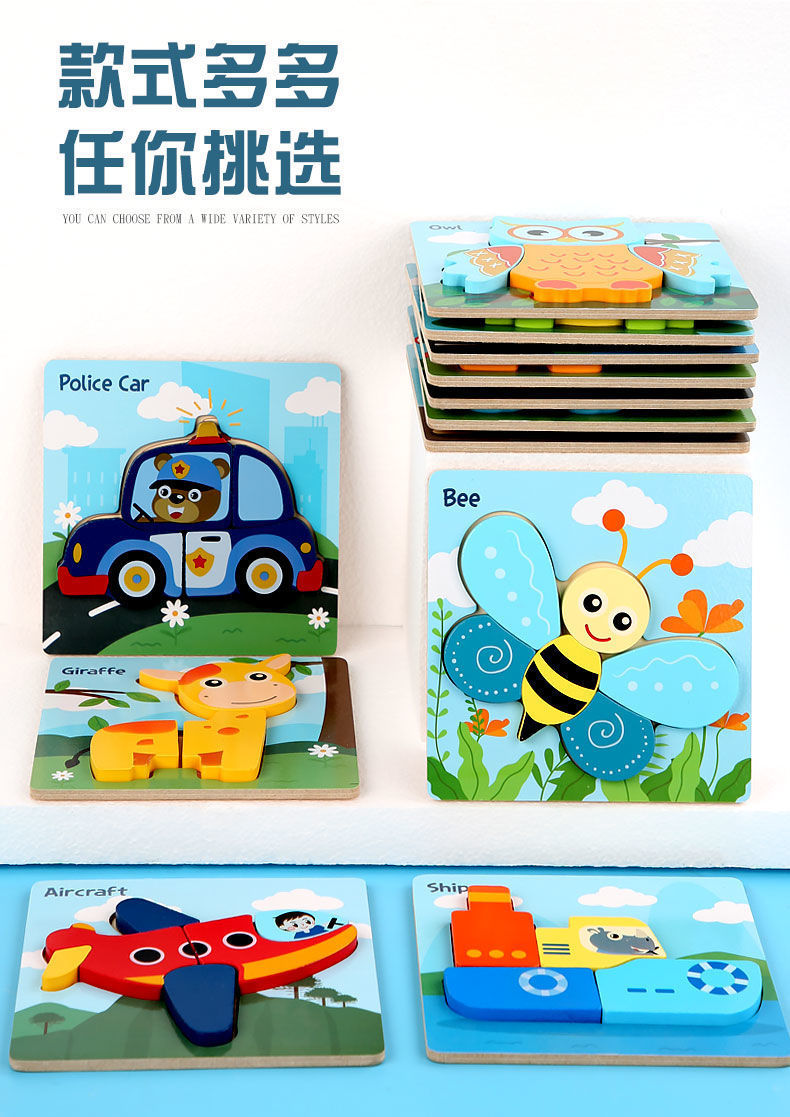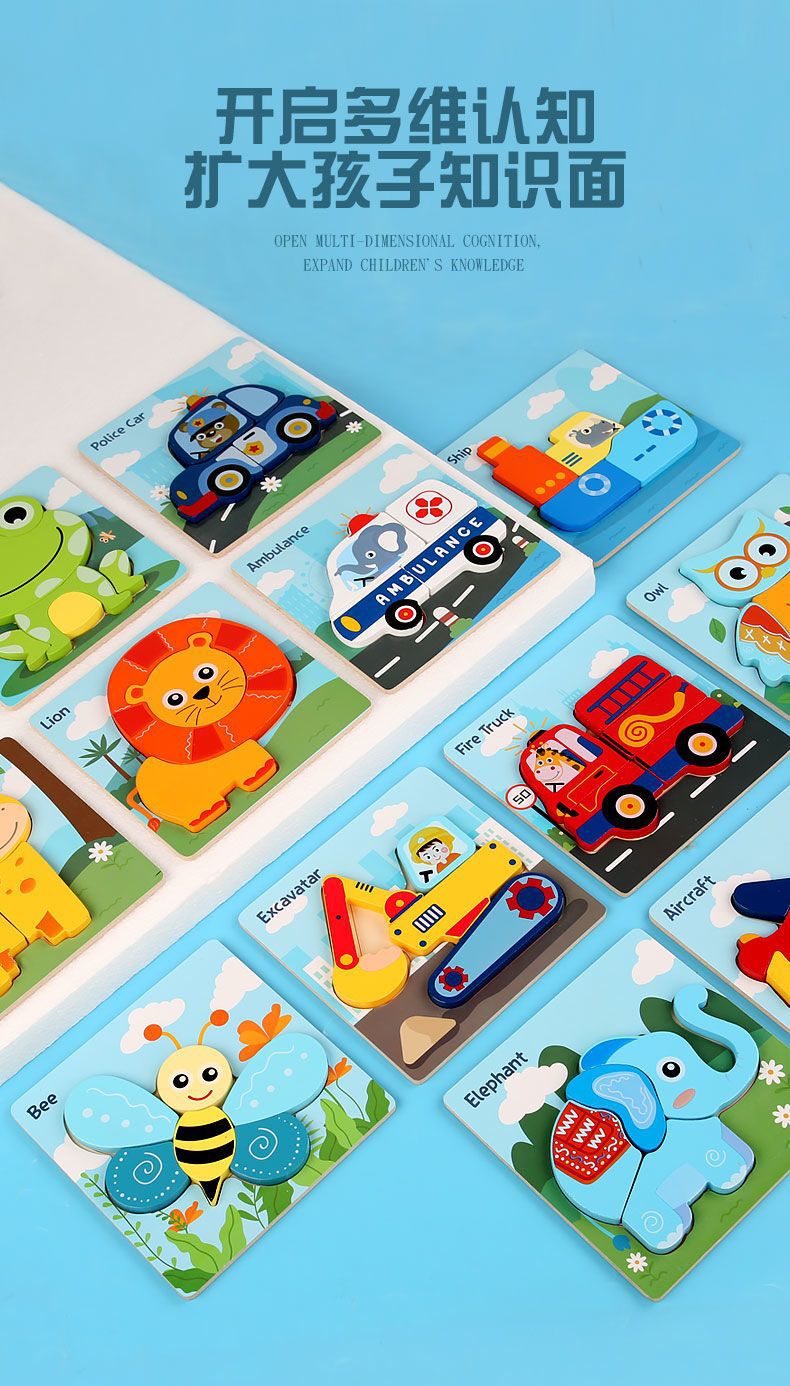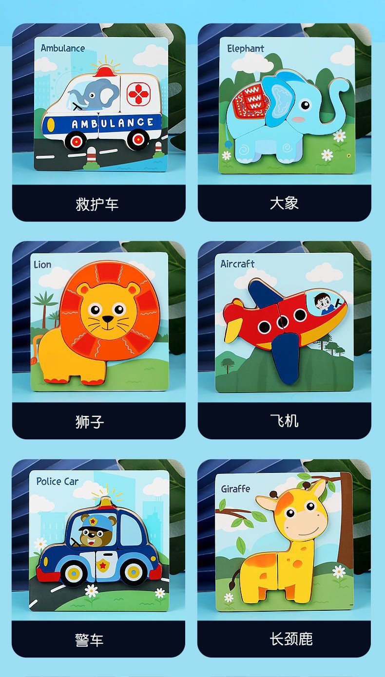 국경 간 어린이 조기 교육 3d 3D 퍼즐 동물 교통 만화 퍼즐 인지 강도 훈련 나무 교육 장난감스토어 가기