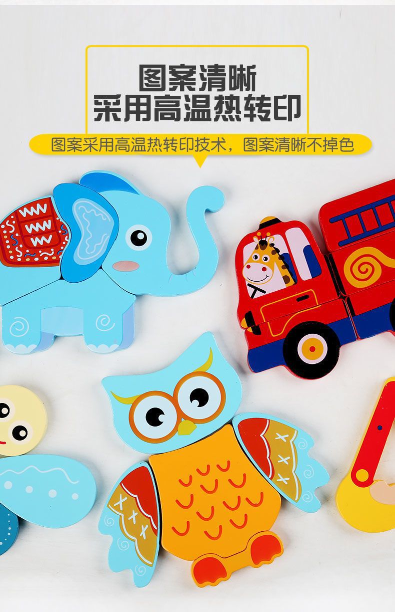 국경 간 어린이 조기 교육 3d 3D 퍼즐 동물 교통 만화 퍼즐 인지 강도 훈련 나무 교육 장난감
