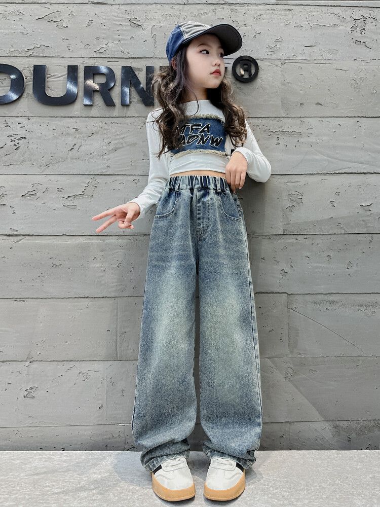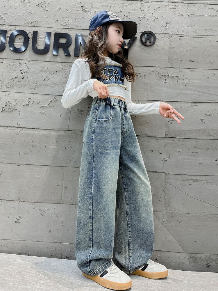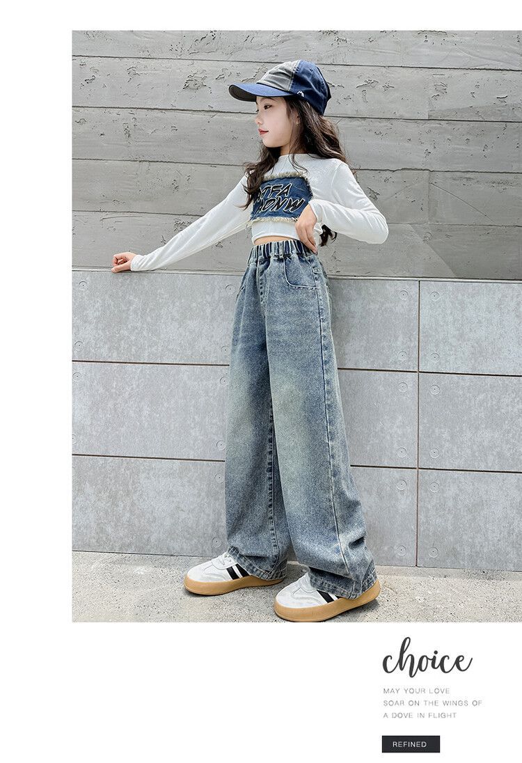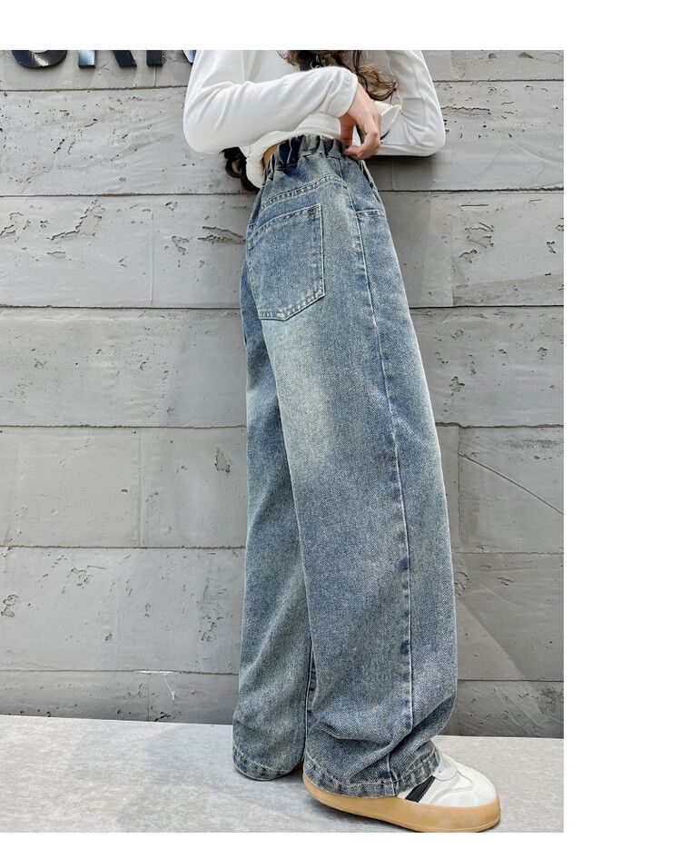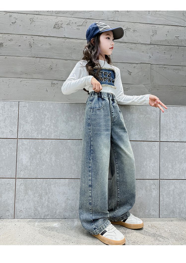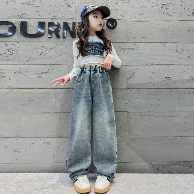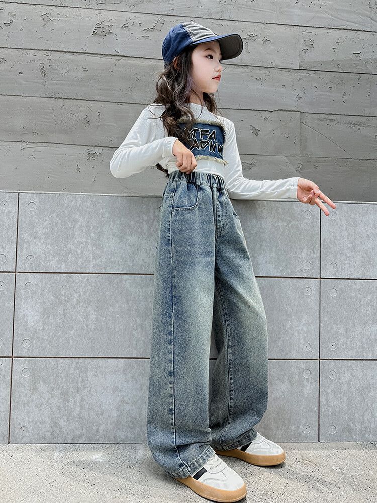 2024 여자 봄 청바지 넓은 다리 바지 투피스 세트 라이트 보드 스트레이트 팬츠스토어 가기