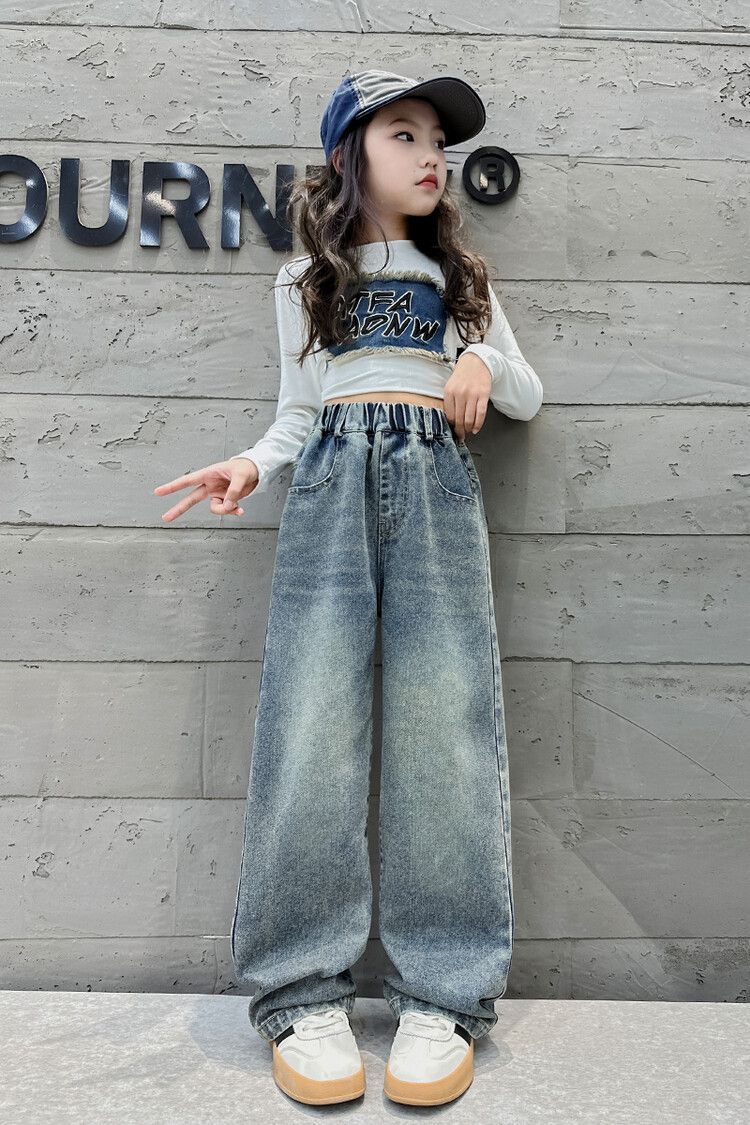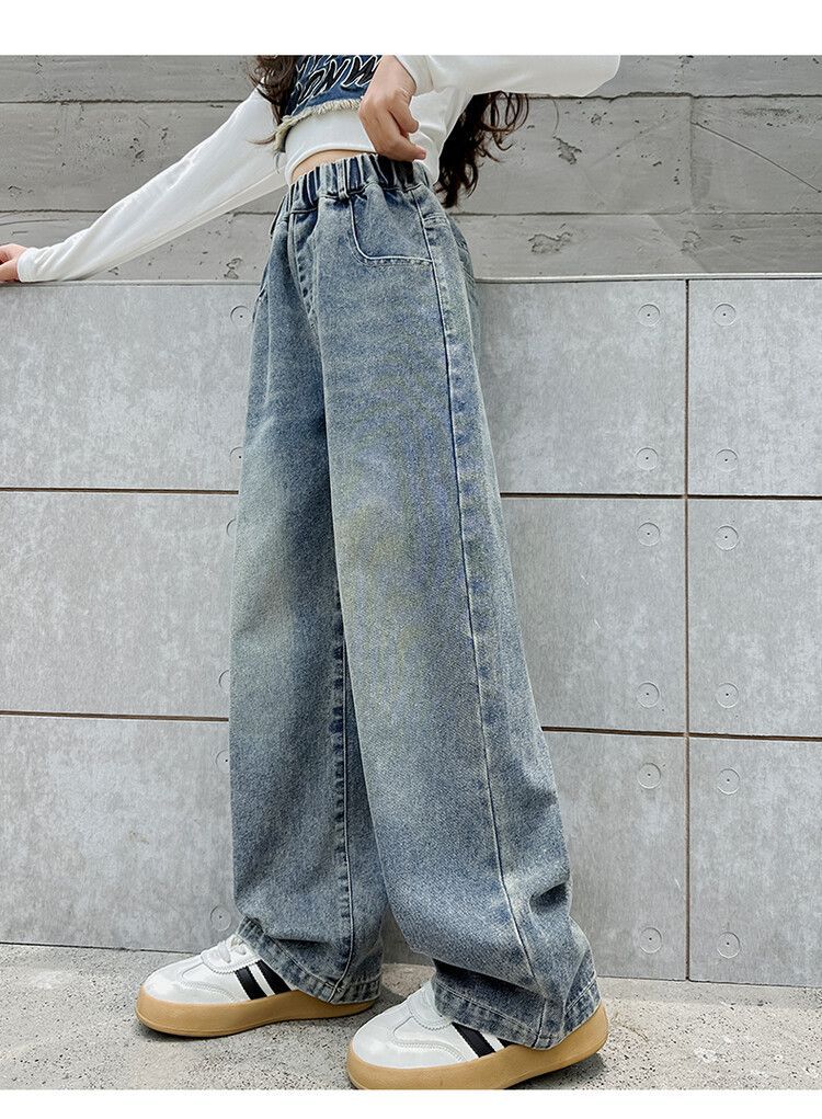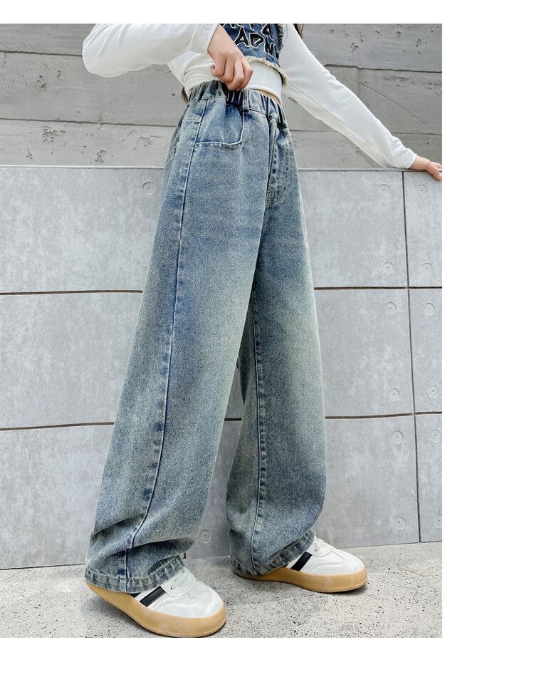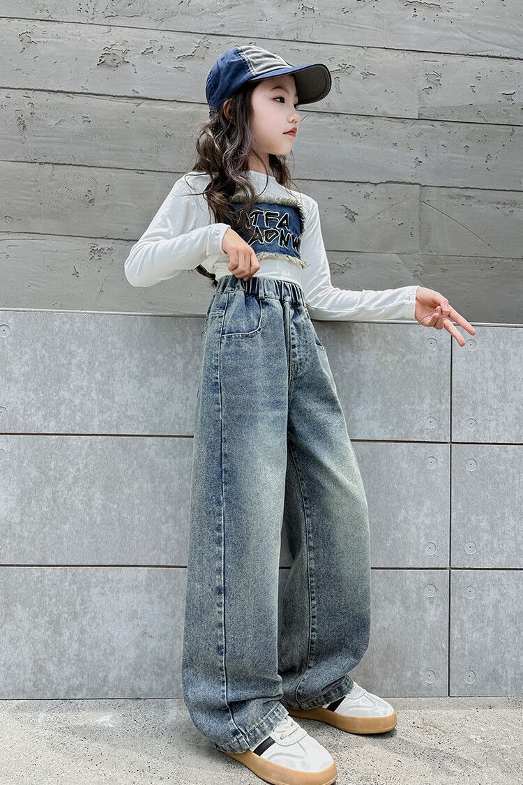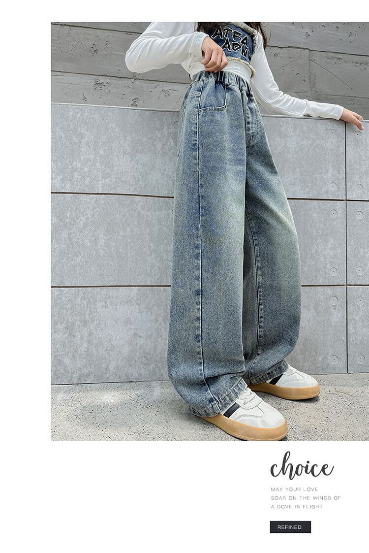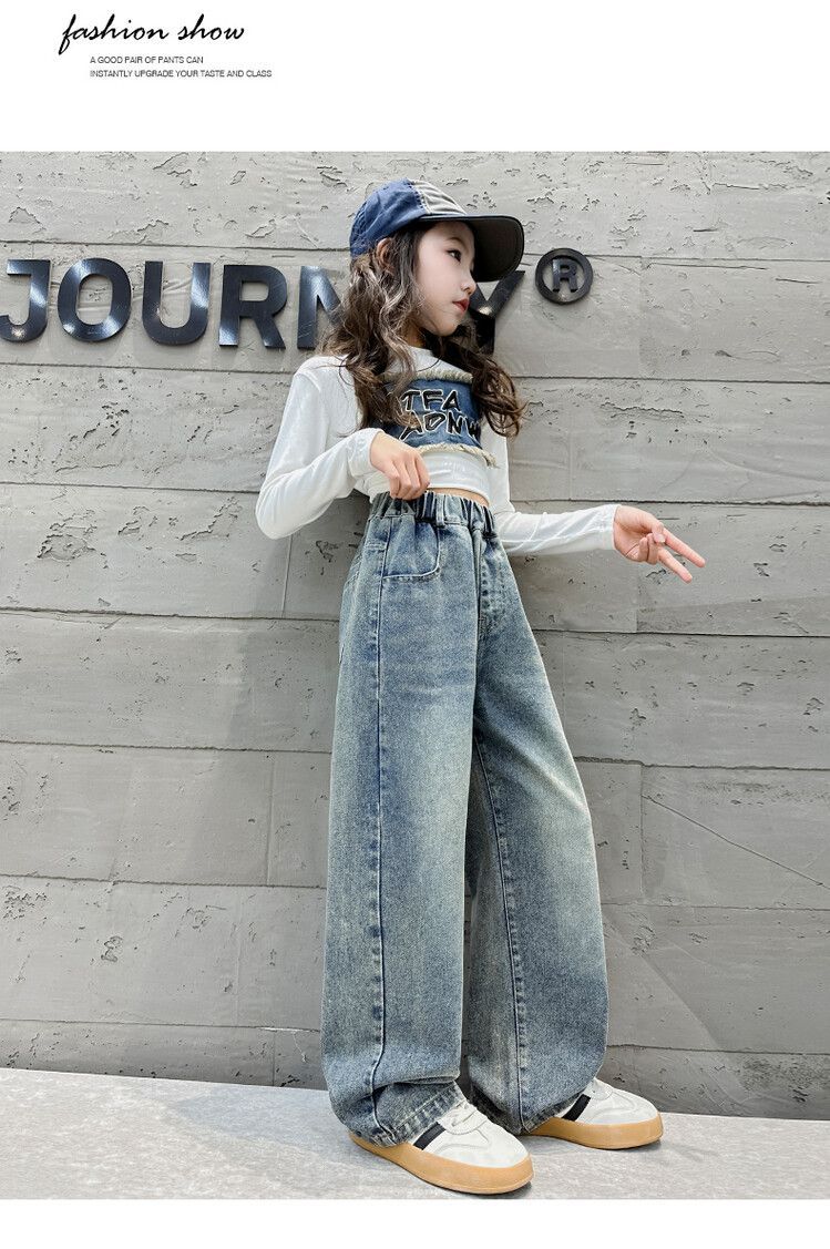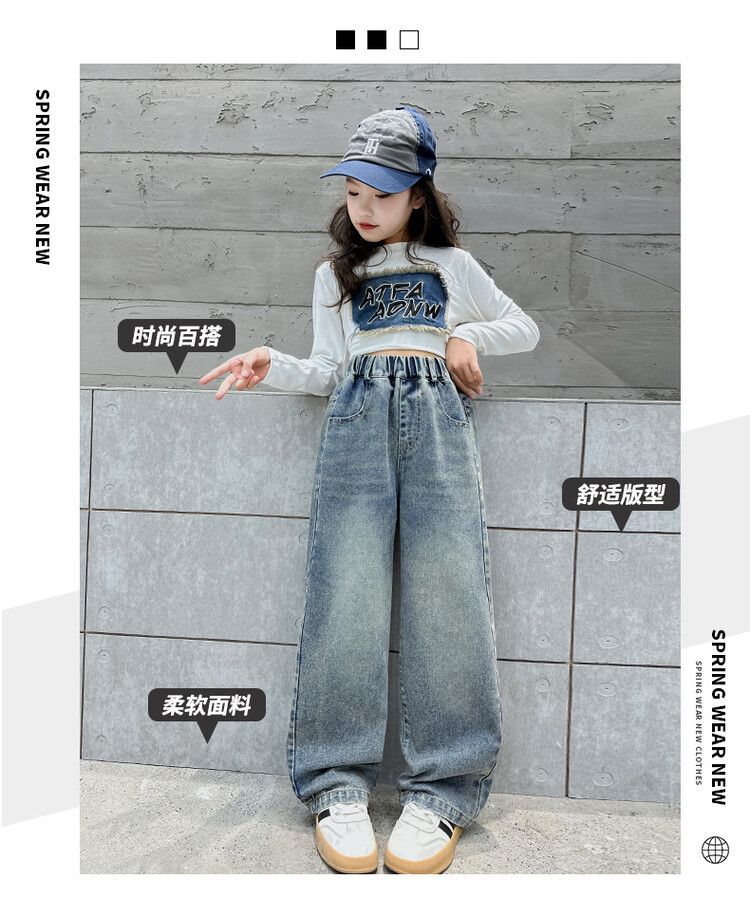2024 여자 봄 청바지 넓은 다리 바지 투피스 세트 라이트 보드 스트레이트 팬츠스토어 가기