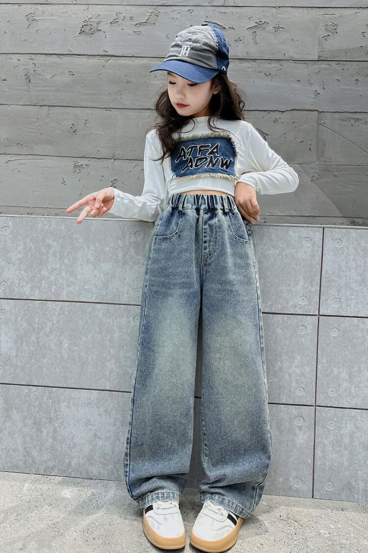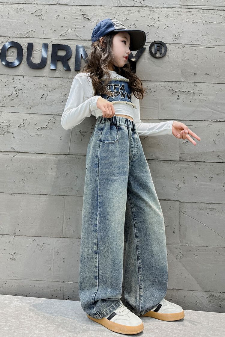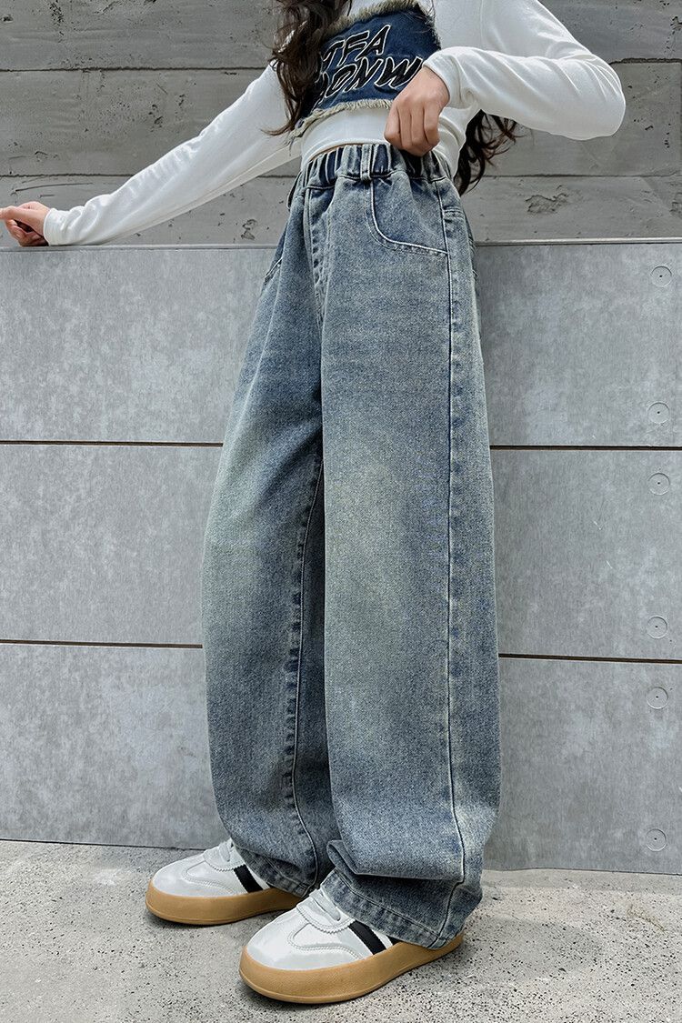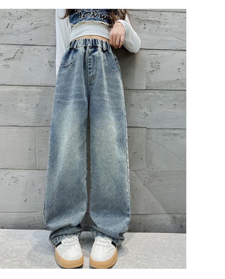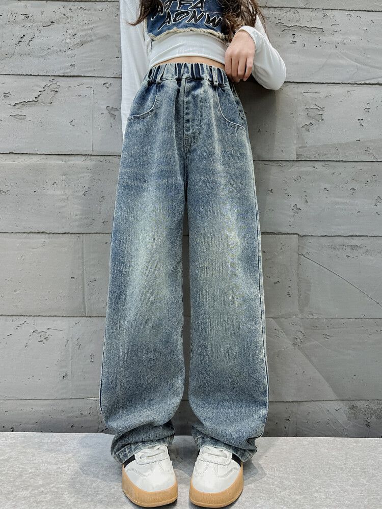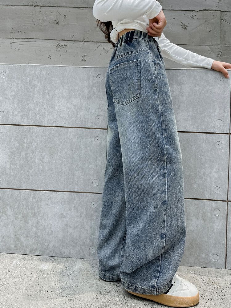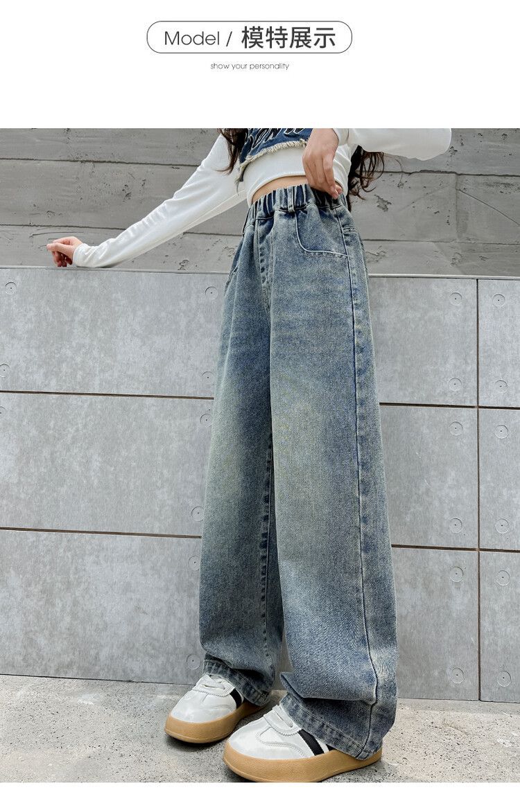 2024 여자 봄 청바지 넓은 다리 바지 투피스 세트 라이트 보드 스트레이트 팬츠스토어 가기