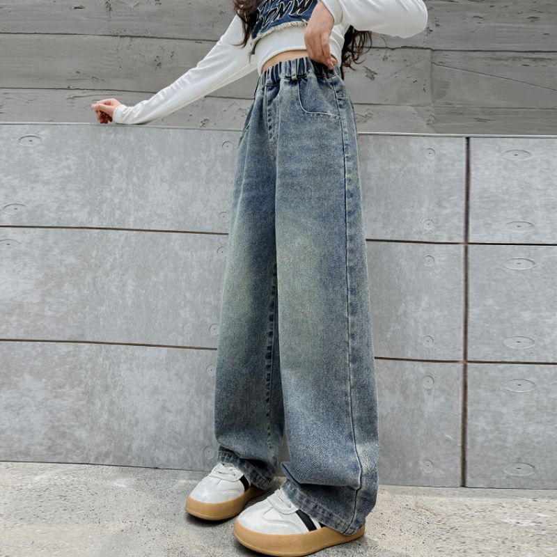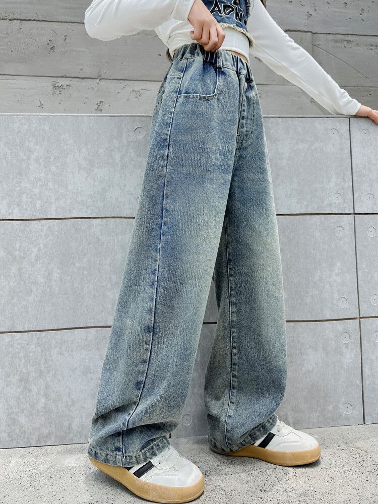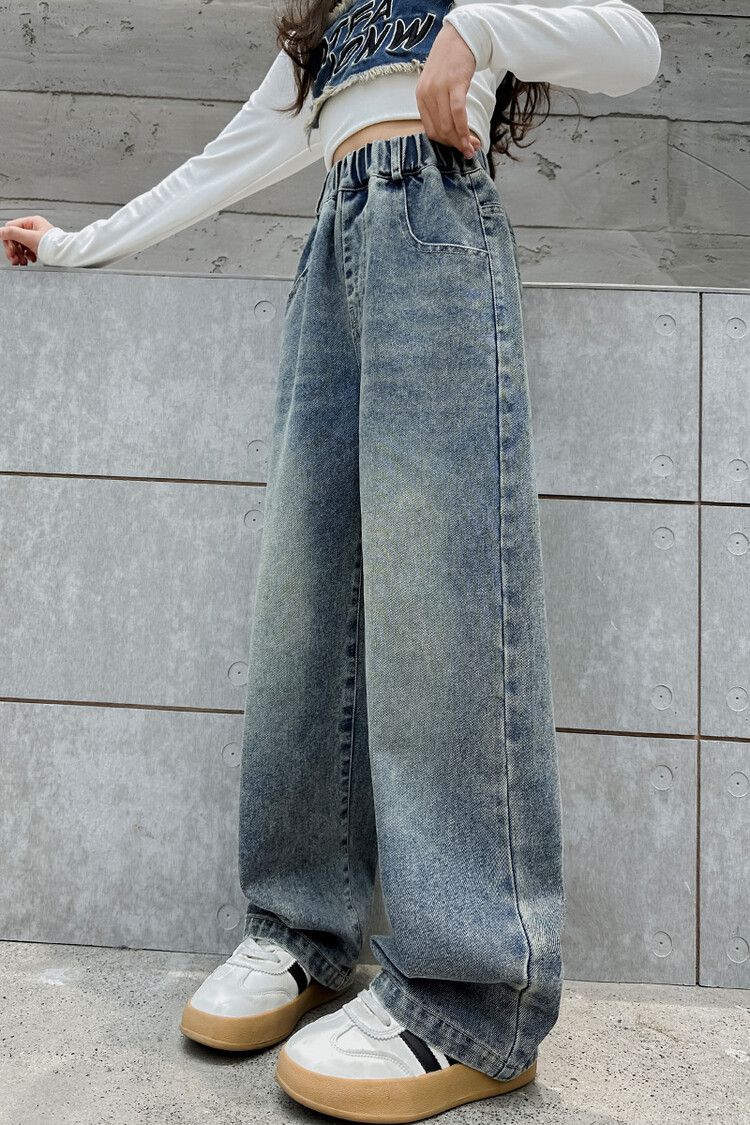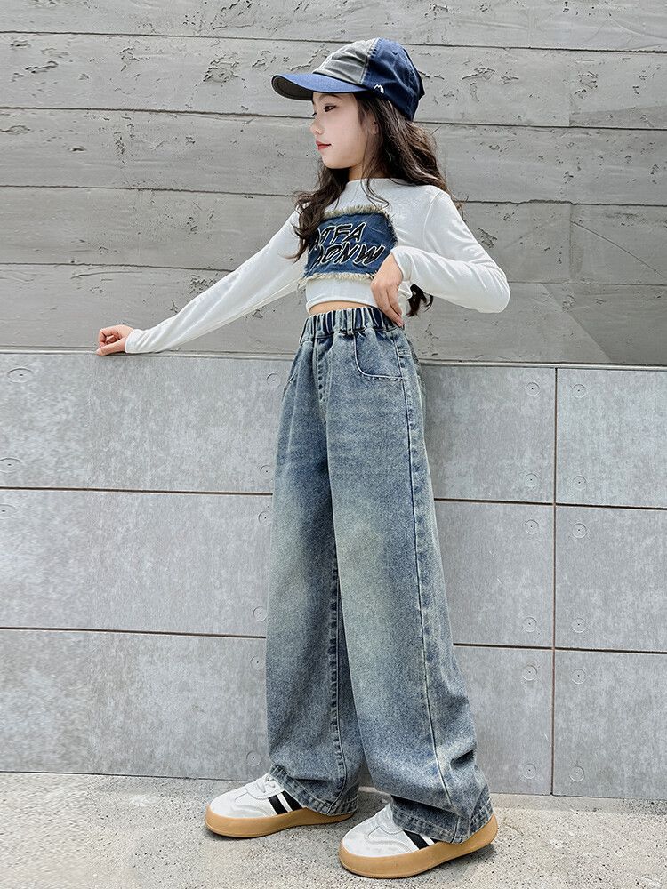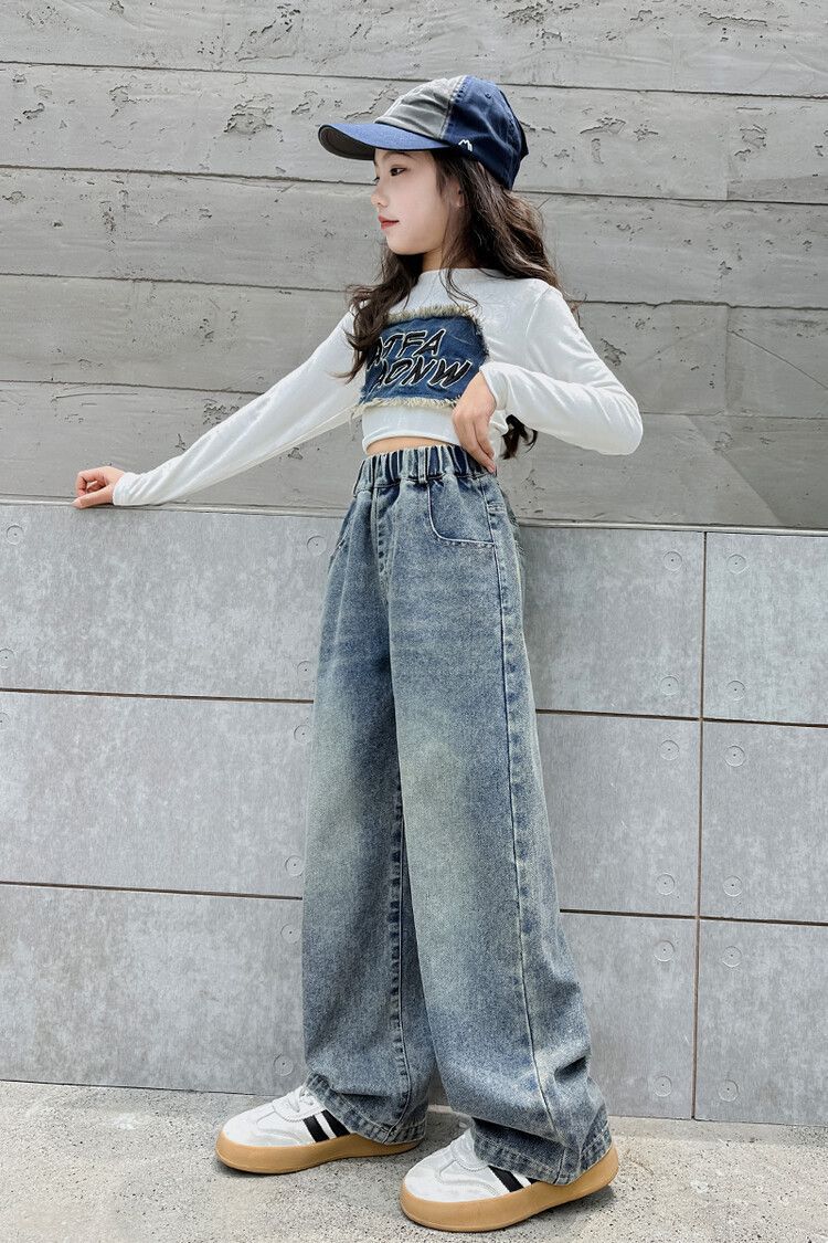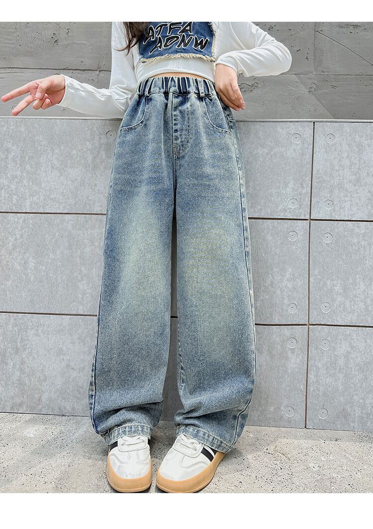 2024 여자 봄 청바지 넓은 다리 바지 투피스 세트 라이트 보드 스트레이트 팬츠스토어 가기