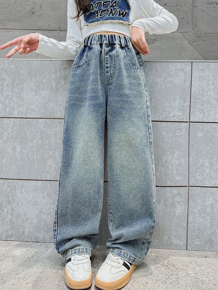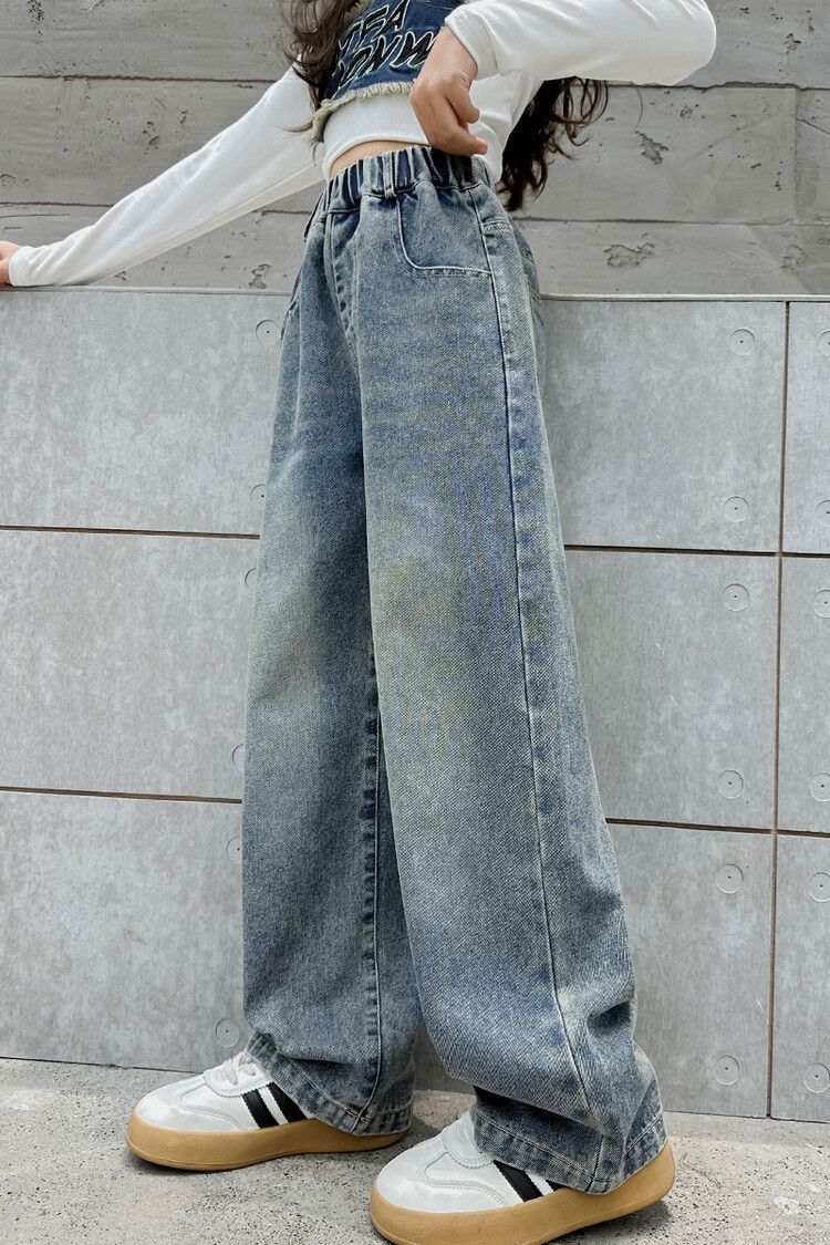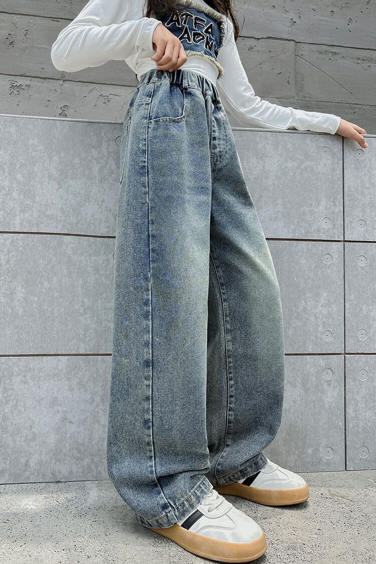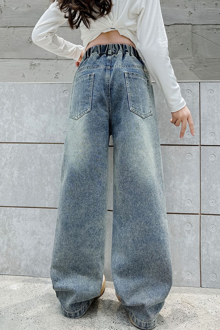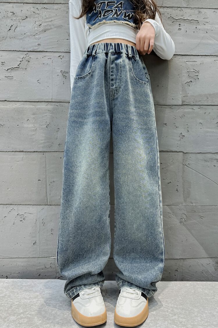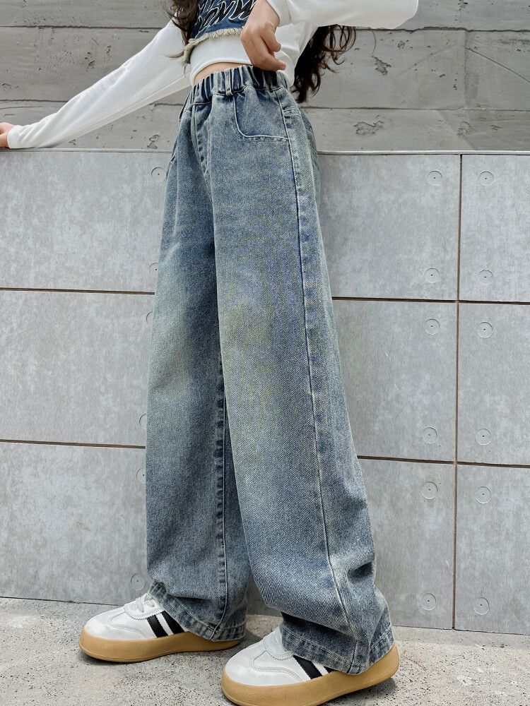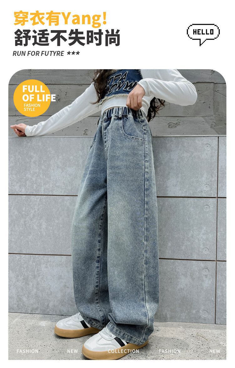 2024 여자 봄 청바지 넓은 다리 바지 투피스 세트 라이트 보드 스트레이트 팬츠스토어 가기