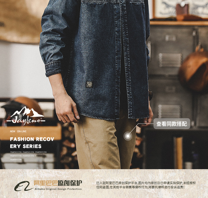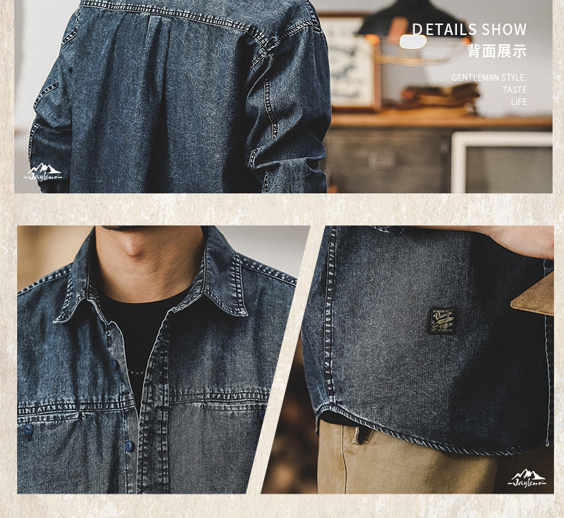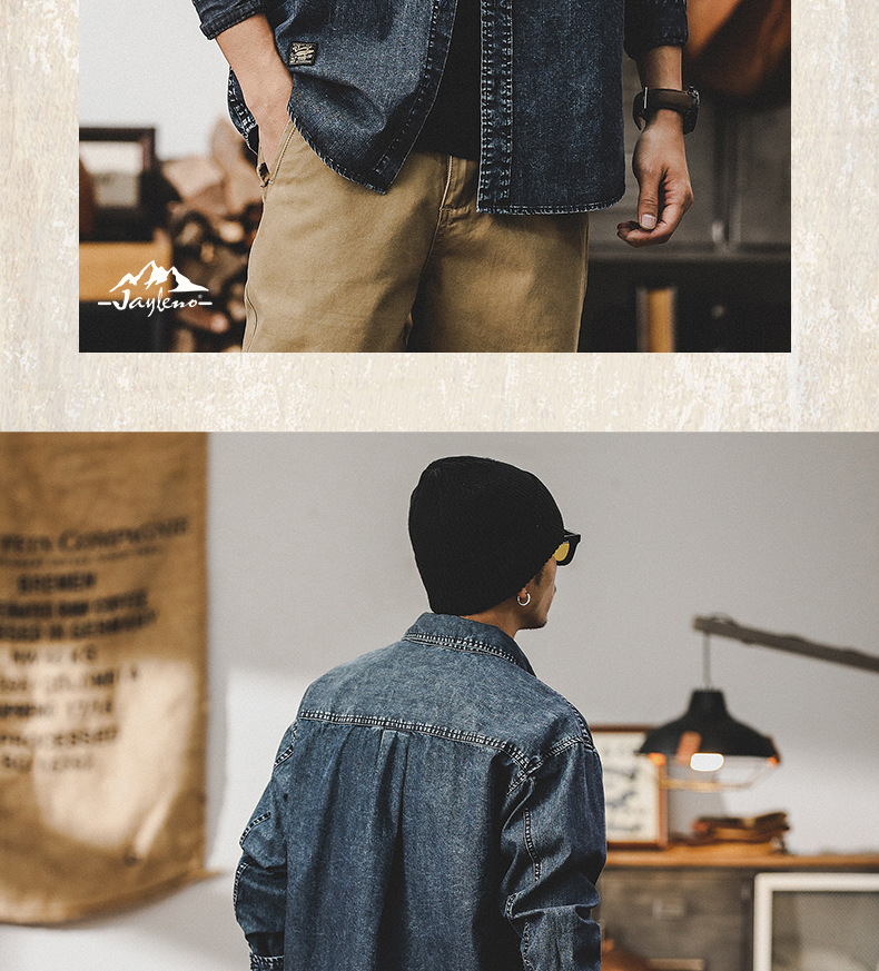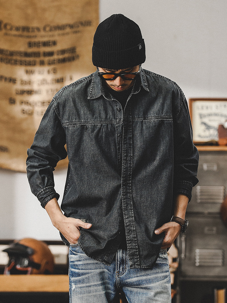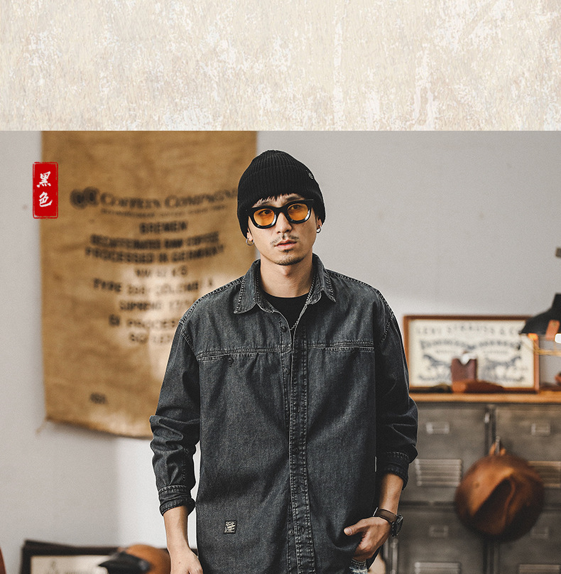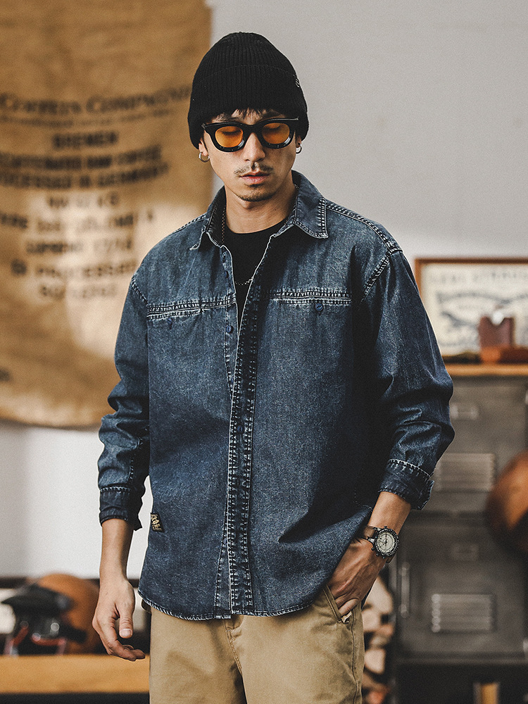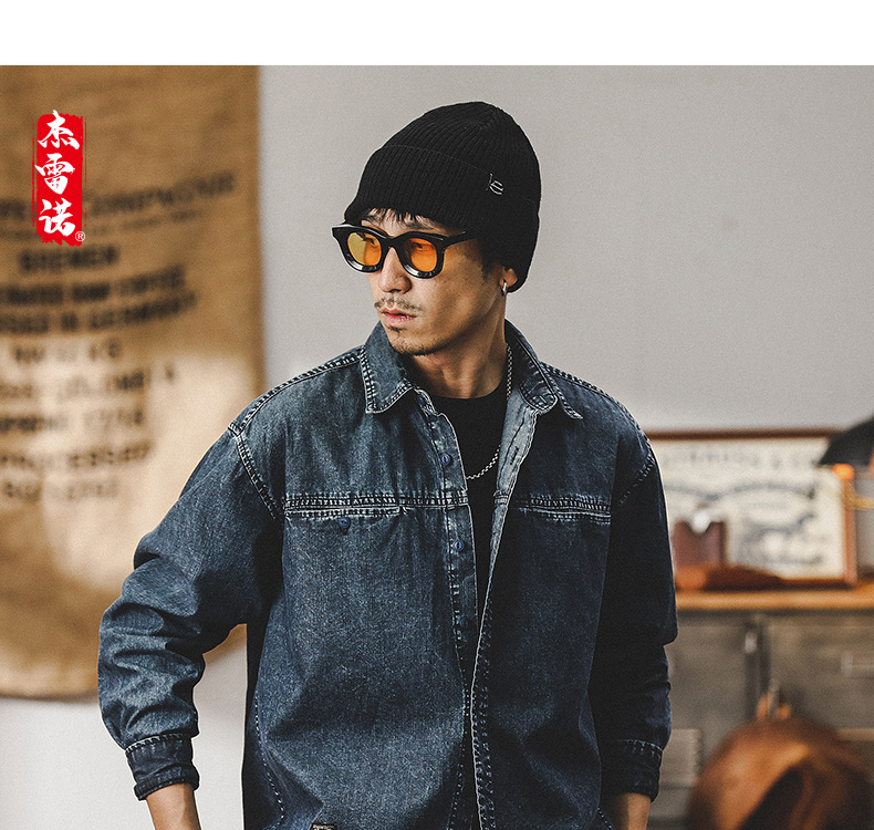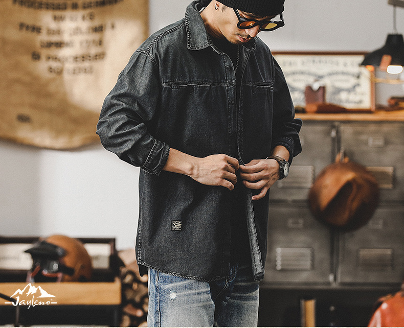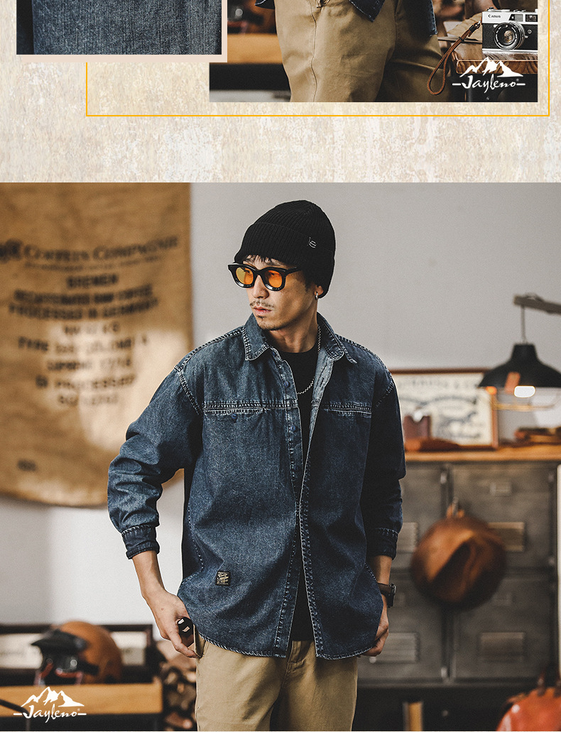 아메리칸 스타일 작업복 데님 셔츠 남성 긴팔 2025 새로운 발효 가공 복고풍 셔츠 남성 봄, 가을 남성 탑 재킷스토어 가기