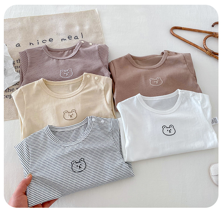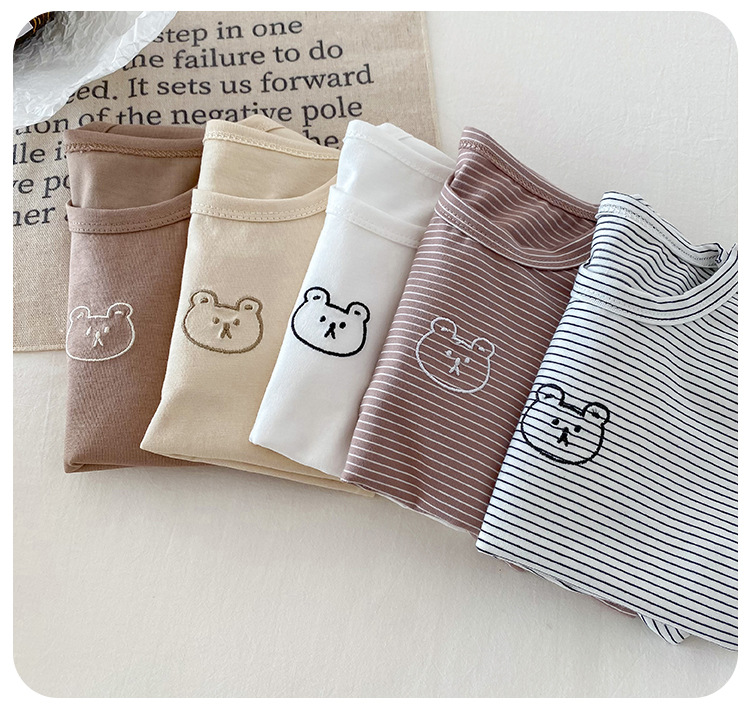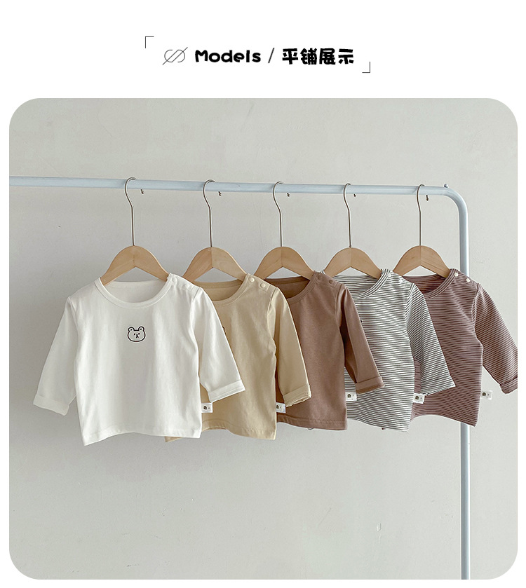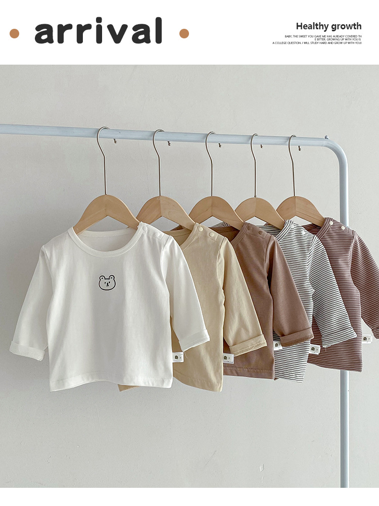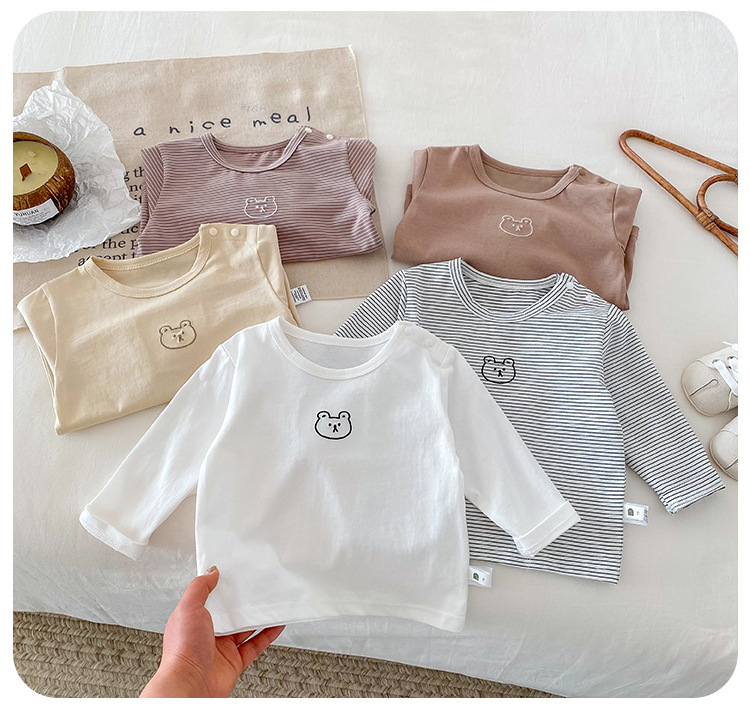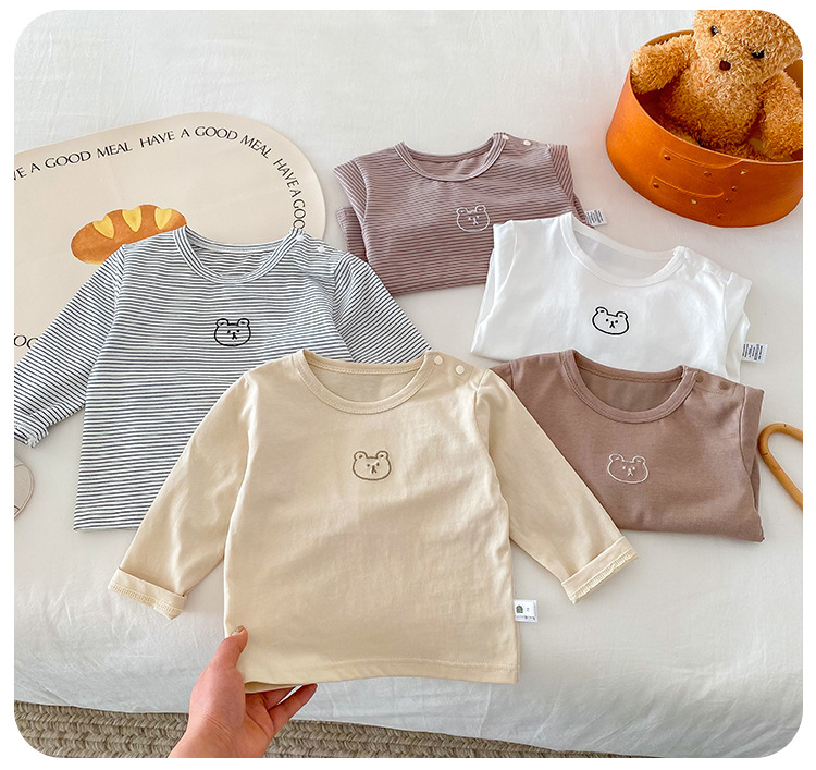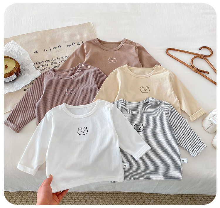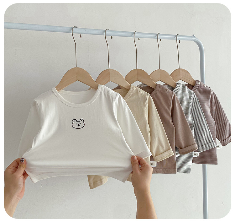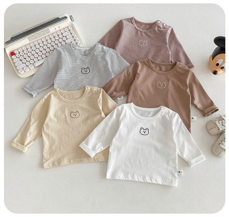 봄과 가을 간단한 아기의 자수 만화 탑 코튼 긴팔 티셔츠 2024 Dioxi 소년 바닥 셔츠스토어 가기