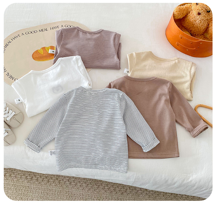 봄과 가을 간단한 아기의 자수 만화 탑 코튼 긴팔 티셔츠 2024 Dioxi 소년 바닥 셔츠