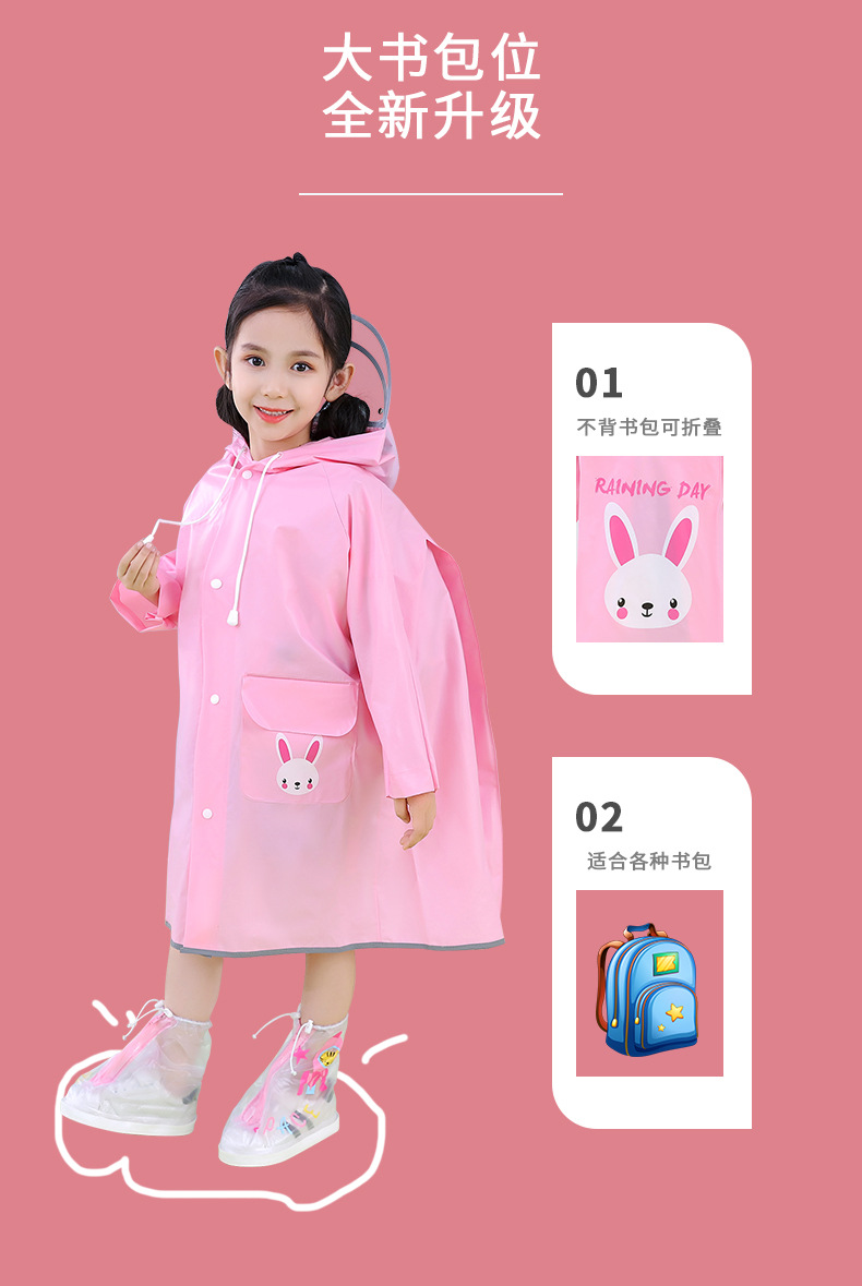 여학생을위한 남학생과 학생을위한 어린이 비옷 긴 판초 여학생을위한 책가방 좌석 방비 의류를 가진 중 큰 아이들스토어 가기