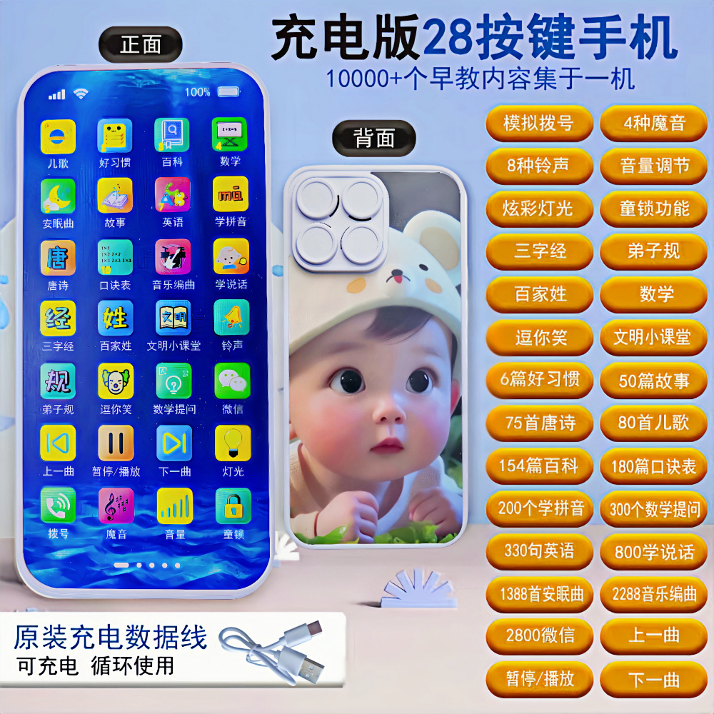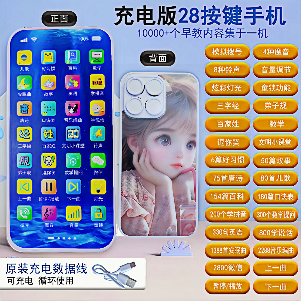남자와 여자를위한 충전식 터치 스크린 휴대 전화 장난감 아기 교육 조기 교육 이야기 음악 전화스토어 가기