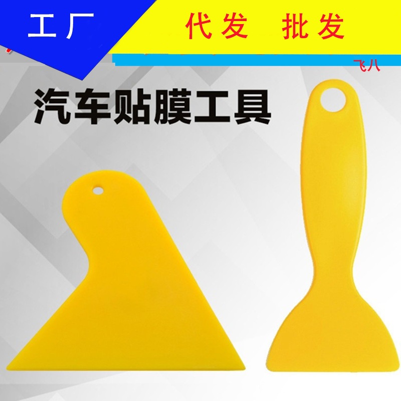 작은 노란색 삽 하드 스크레이퍼 도구 자동차 필름 삼각형 스크레이퍼 플라스틱 작은 스크레이퍼 저널 스티커 안티 컬링 에지 스페셜스토어 가기