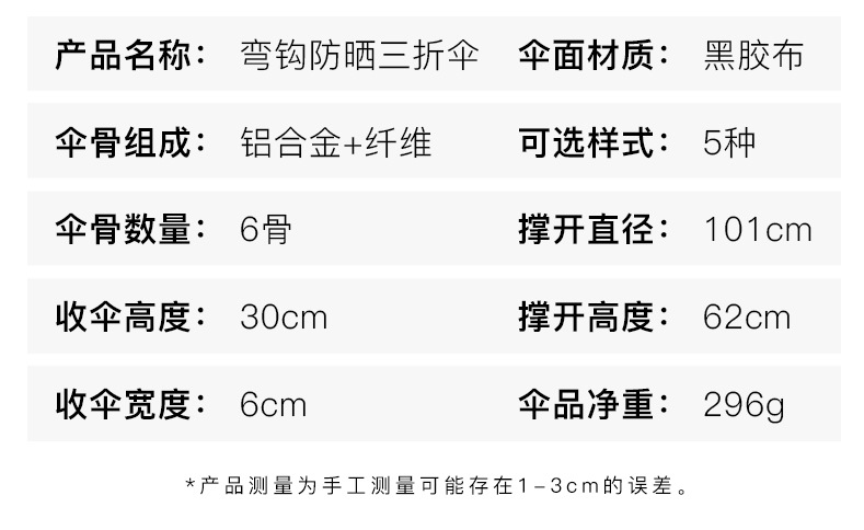 금도금 후크 3 배 우산 고부가가치 후크 블랙 고무 맑고 비오는 우산 후크 태양 커버 우산 접히는 선 스크린 우산스토어 가기