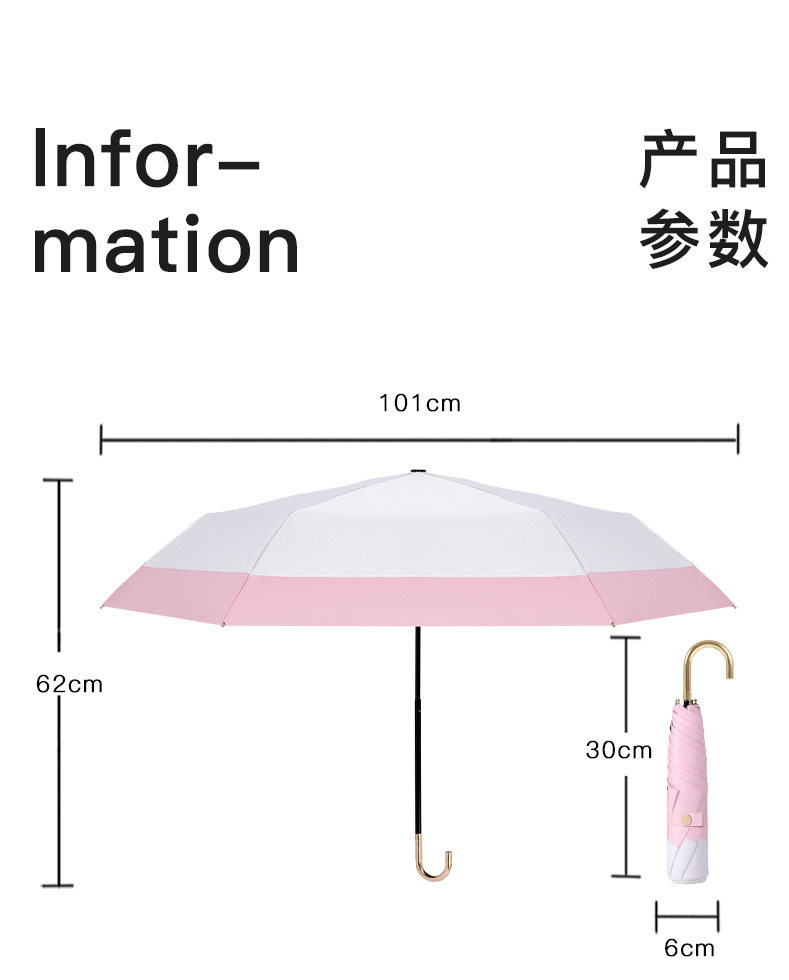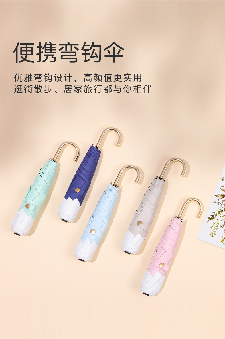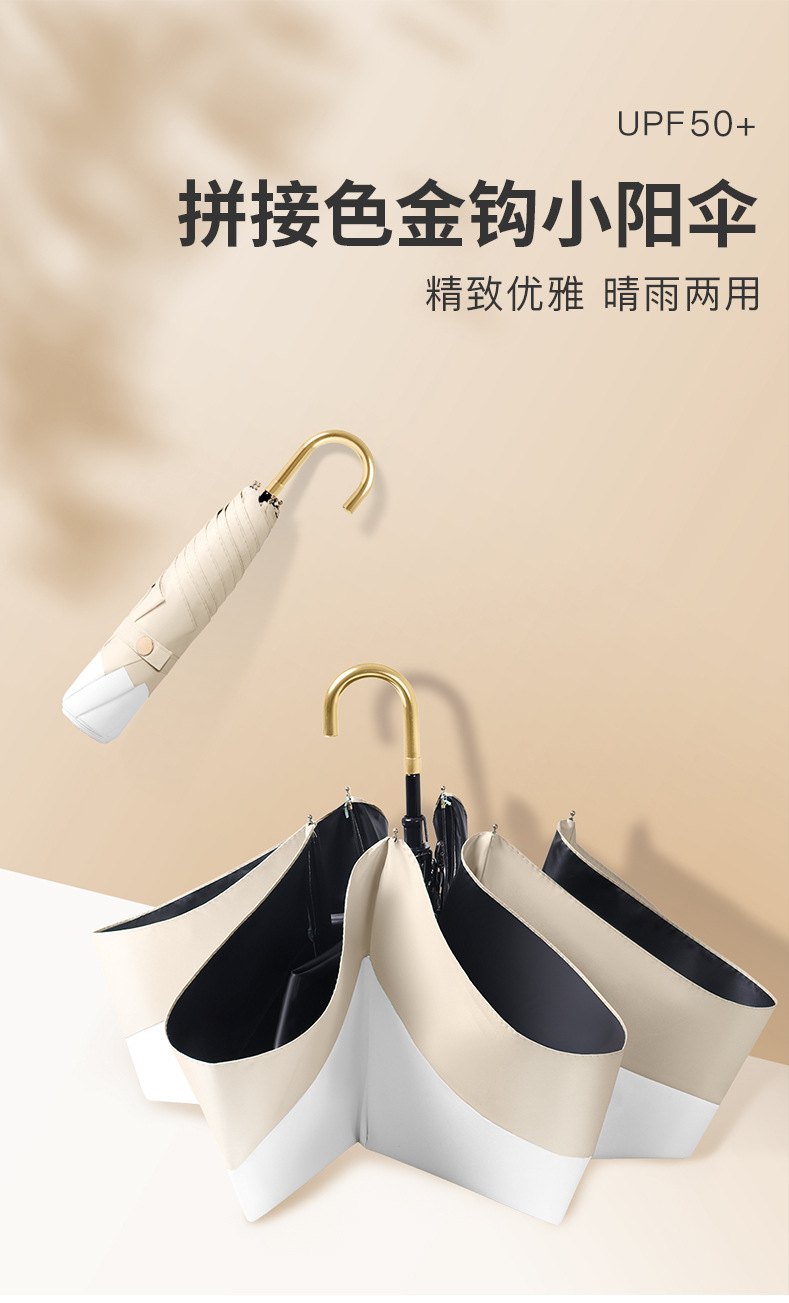 금도금 후크 3 배 우산 고부가가치 후크 블랙 고무 맑고 비오는 우산 후크 태양 커버 우산 접히는 선 스크린 우산