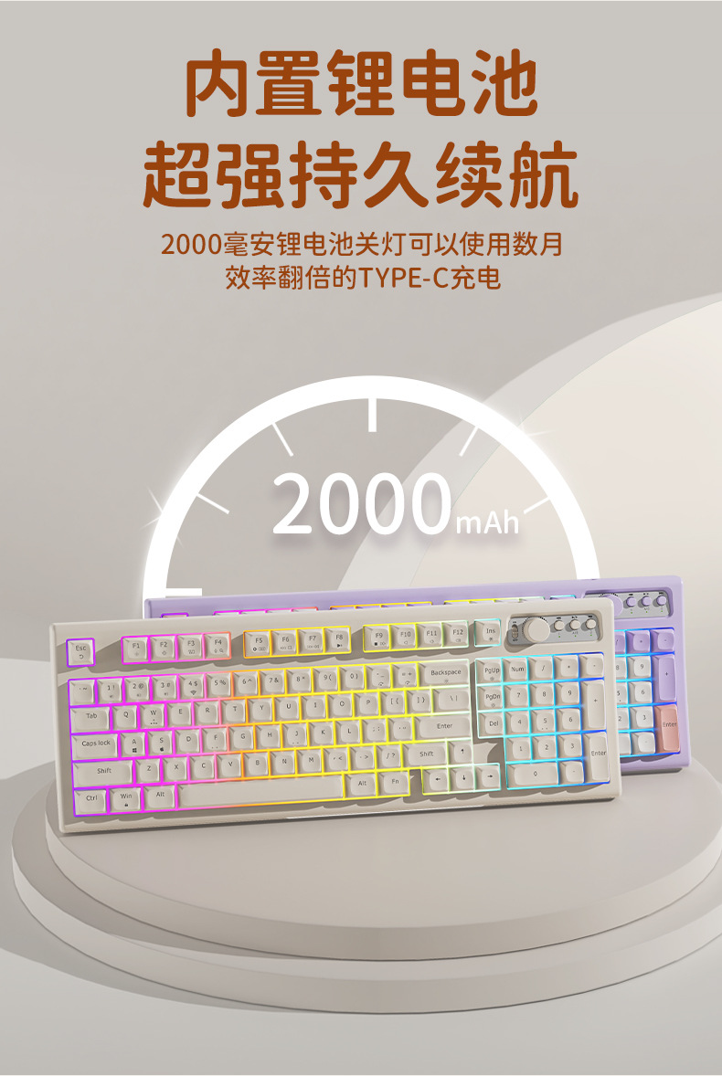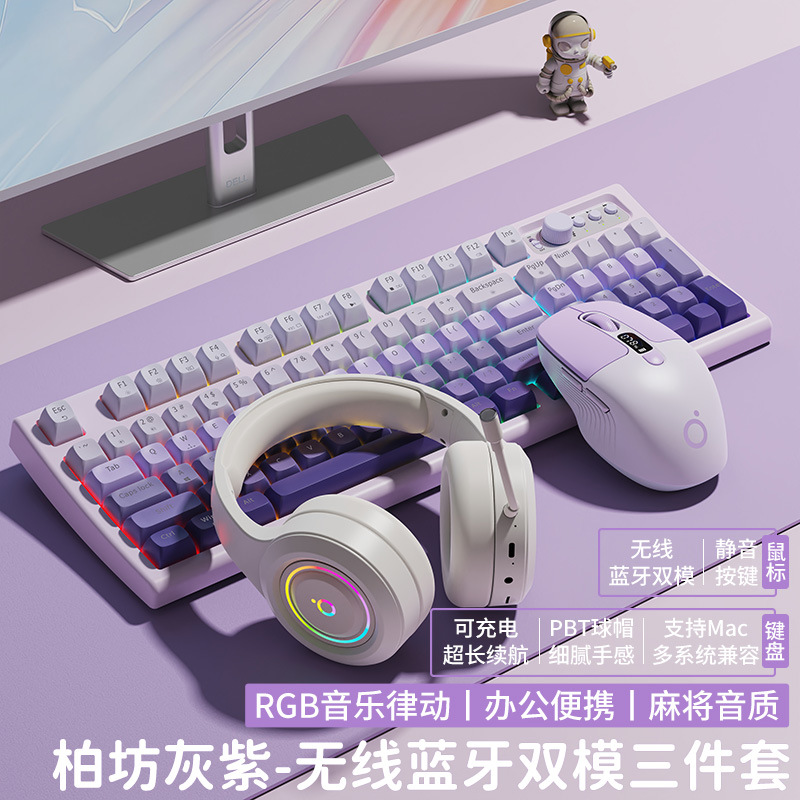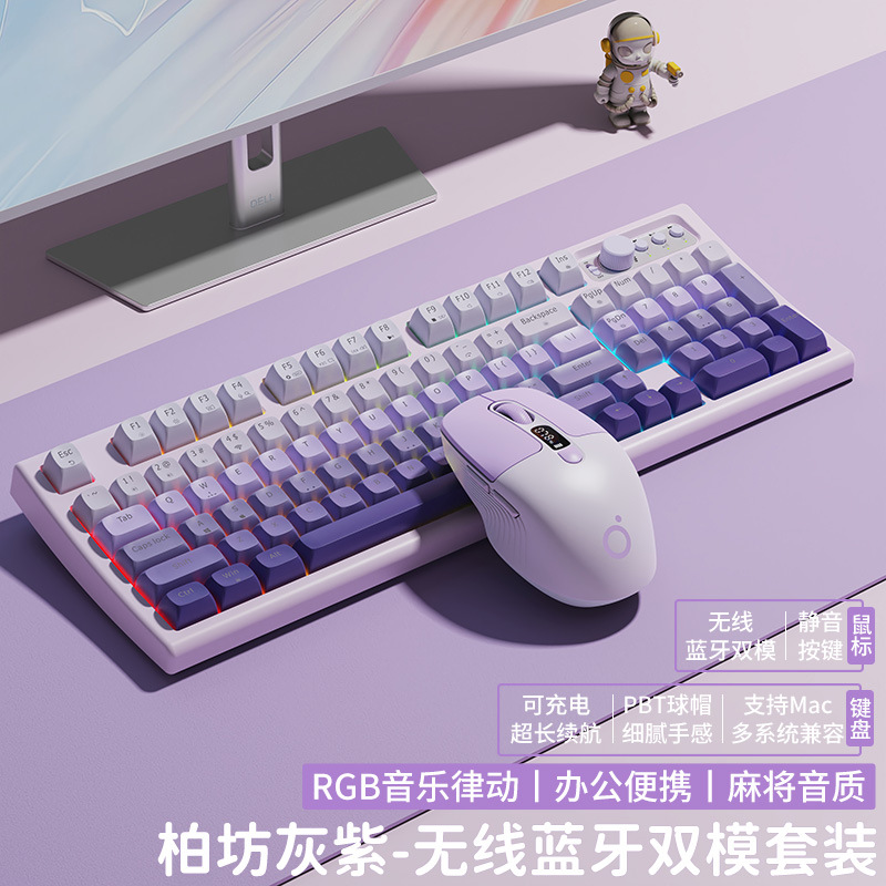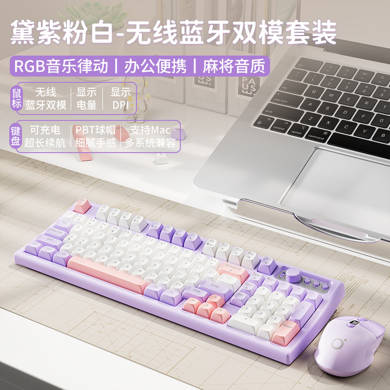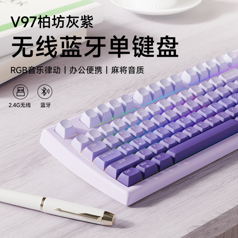 • V97Pro Baifang 회색 보라색 3모드 키보드 및 마우스 세트