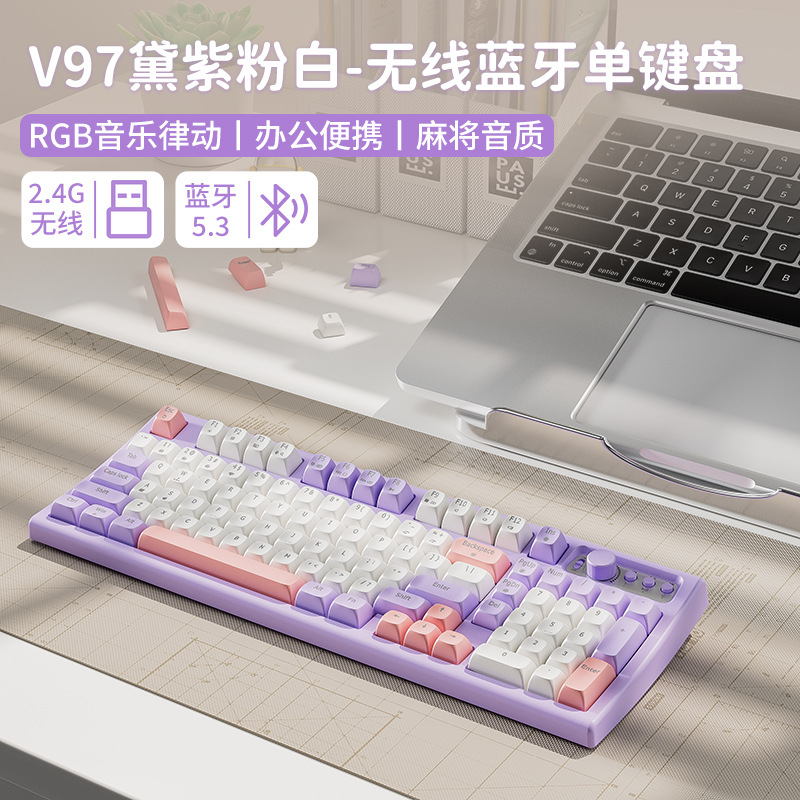 • V97Pro Baifang 회색 보라색 3모드 키보드 및 마우스 3종 세트