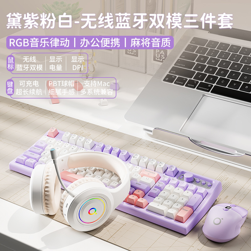 • V97Pro 보라색, 분홍색, 흰색 3가지 모드 키보드 및 마우스 3종 세트