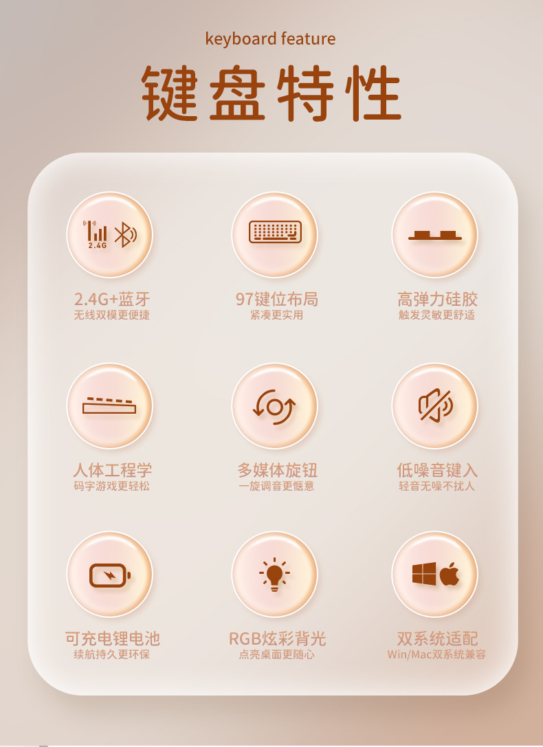 • V97Pro 차팡 샤오바이 3모드 키보드 및 마우스 세트