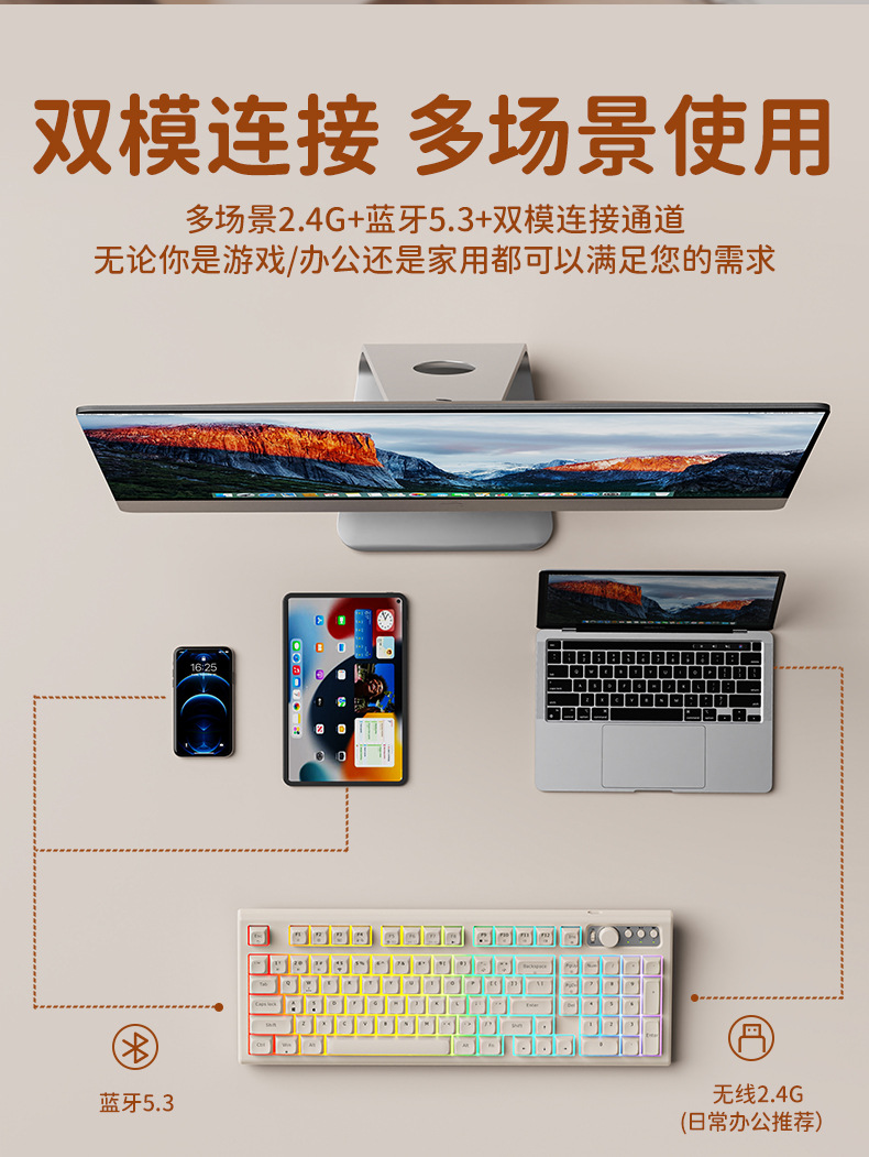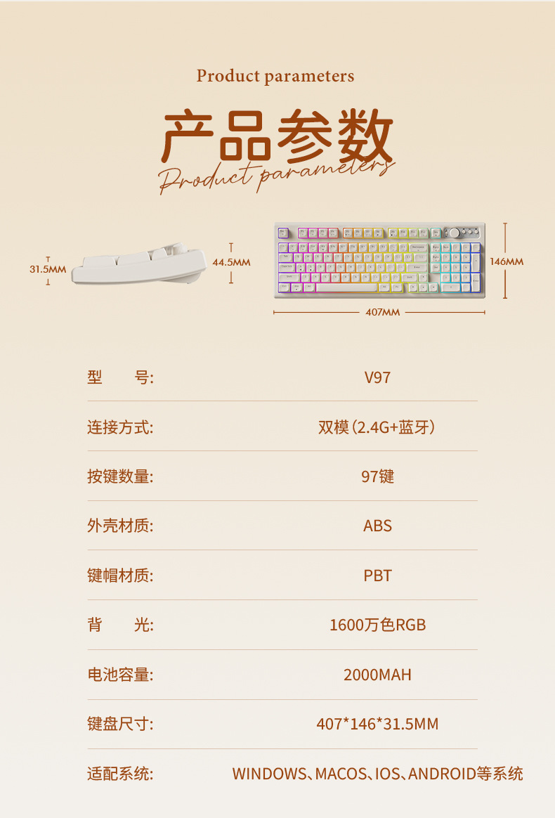 • V97Pro Chafang Xiaobai-무선 3모드 키보드 및 마우스 3피스 세트
