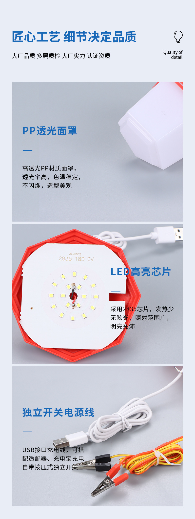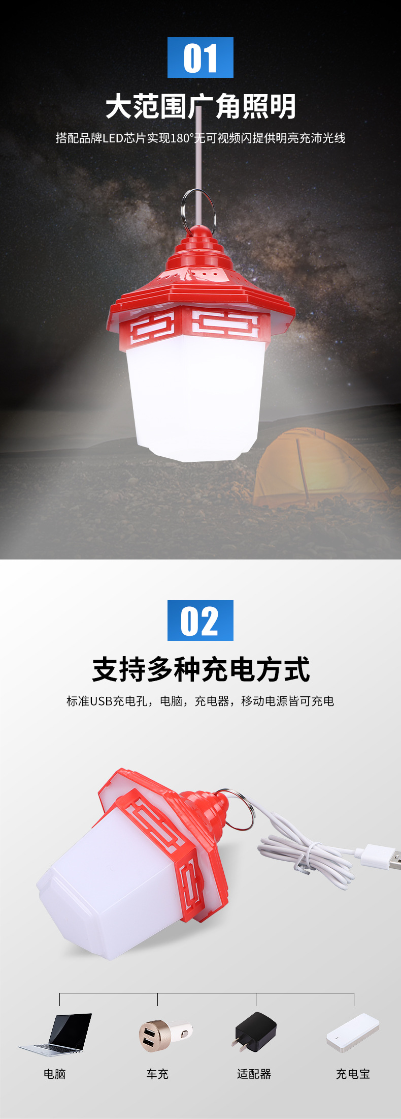 LED 실속 조명 야간 시장 실속 야외 캠핑 조명 USB 소켓 전원 공급 장치 휴대용 정전 비상 조명 5V