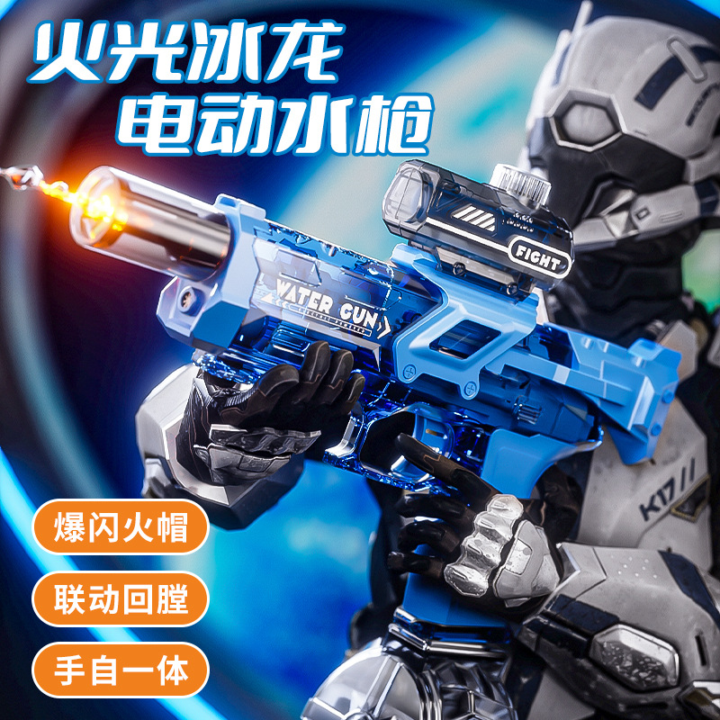 新款喷火冰龙水枪电动高速连发带灯光爆闪火光呲水枪儿童户外玩具
