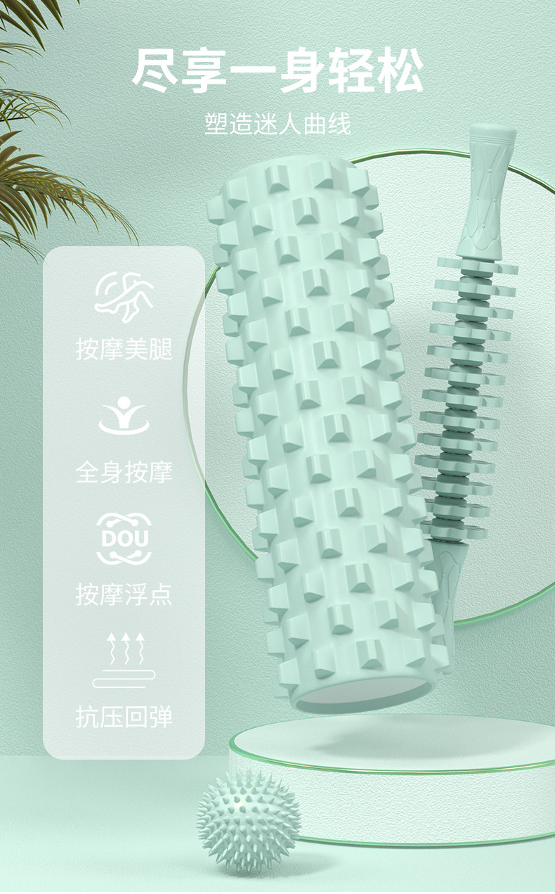 거품 샤프트 근육 이완 초보자 피트니스 스파이크 마사지 스틱 롤러 요가 장비 스키니 다리 Langya 요가 칼럼스토어 가기