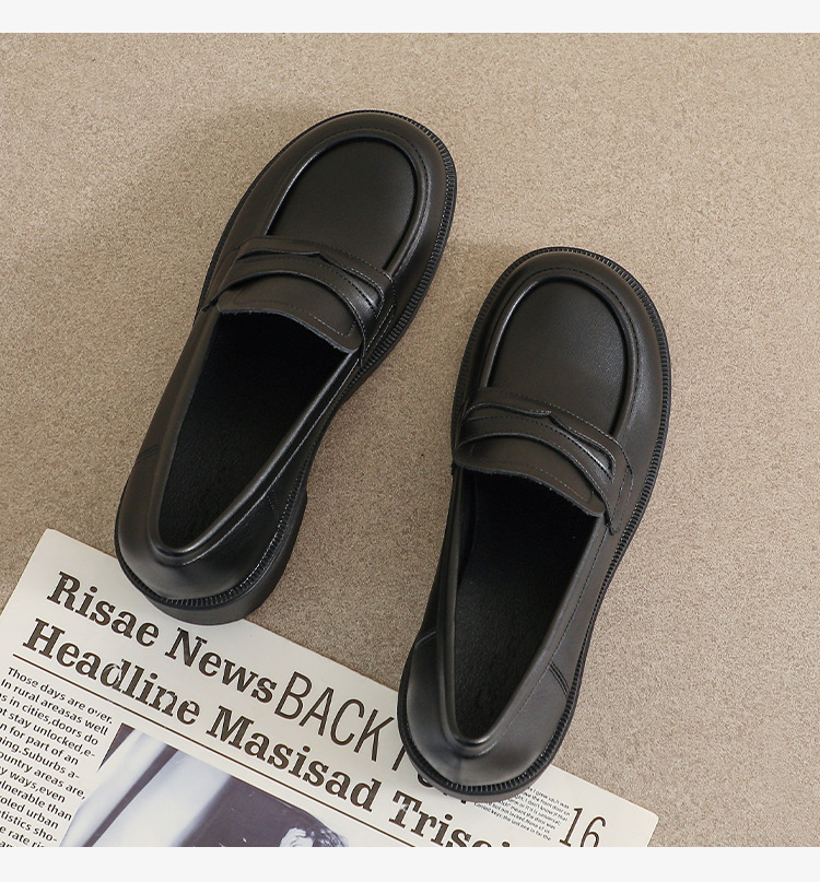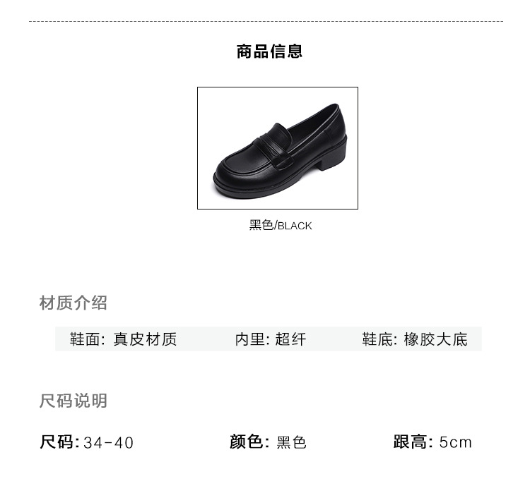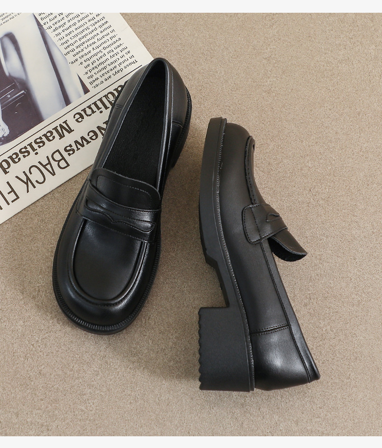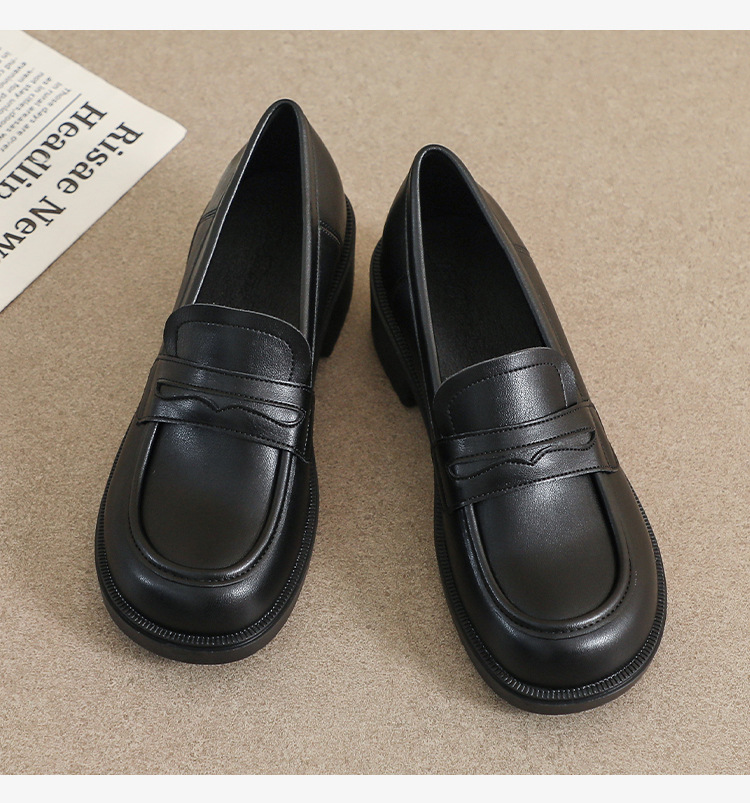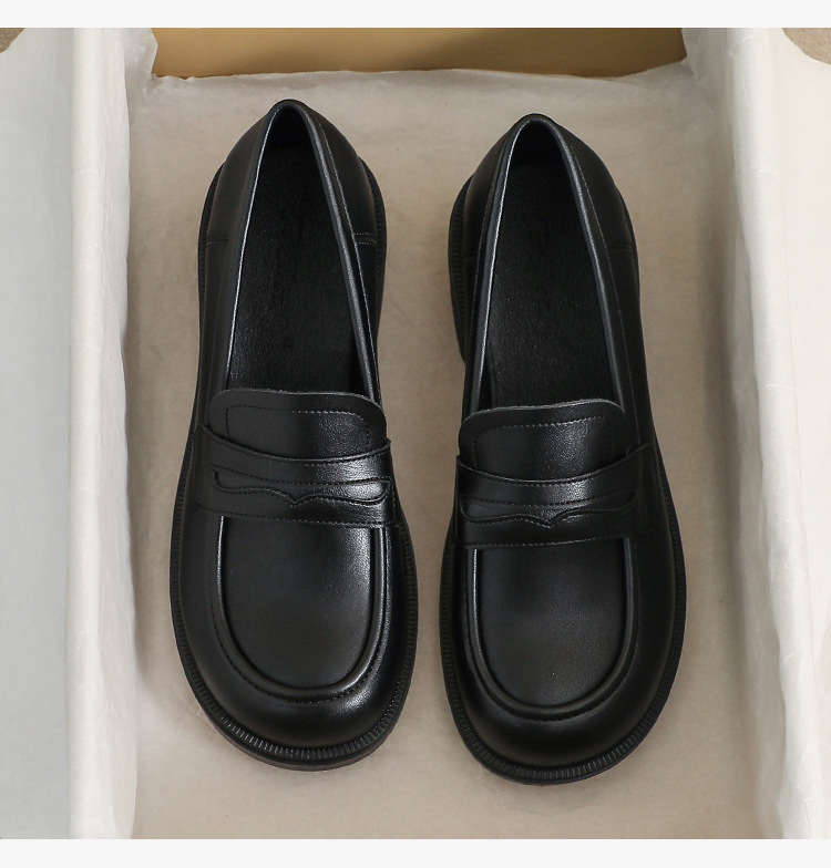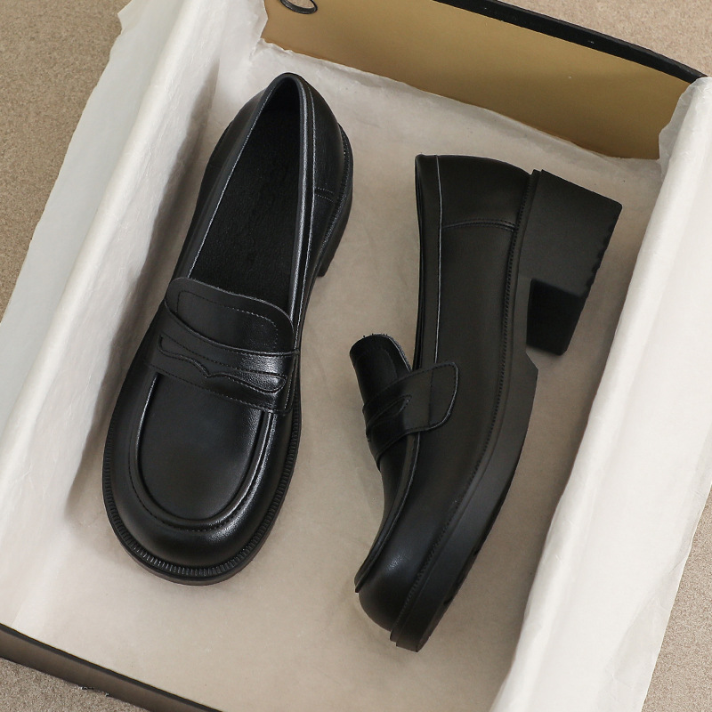 여성용 천연 가죽 하이힐 2026년 신상 봄/가을 영국 스타일 블랙 소프트솔 34사이즈 로퍼스토어 가기