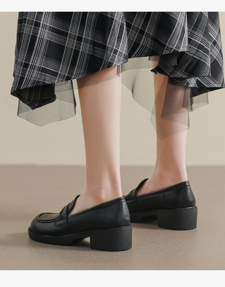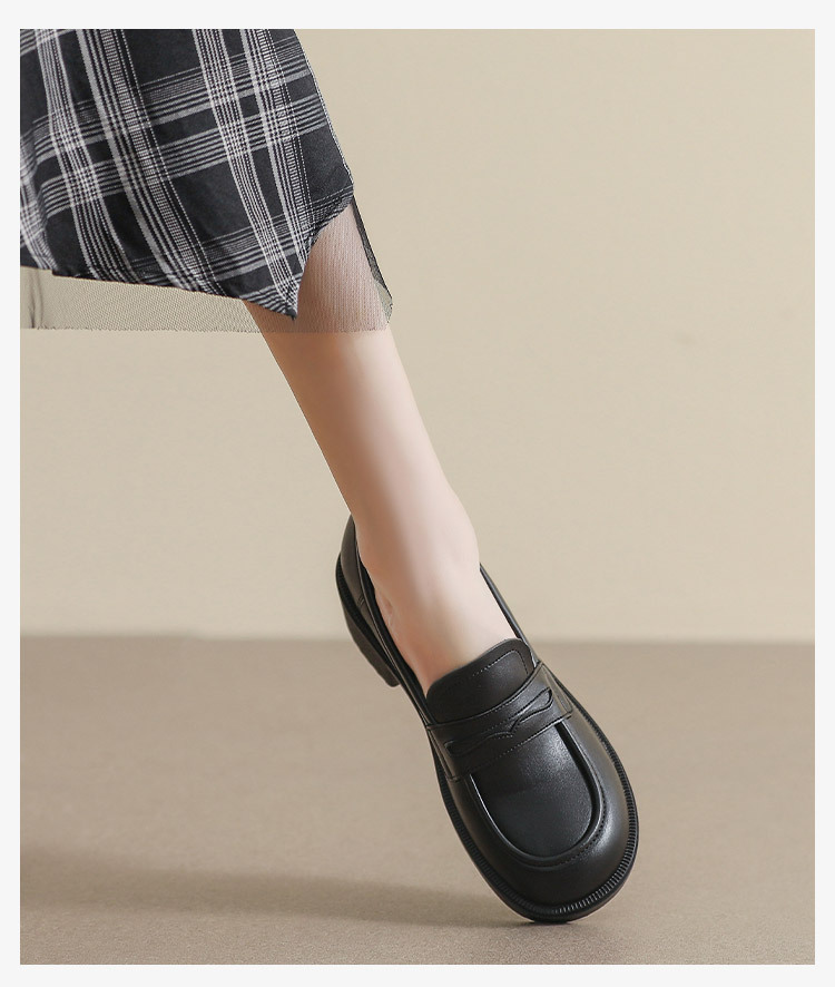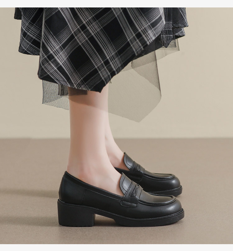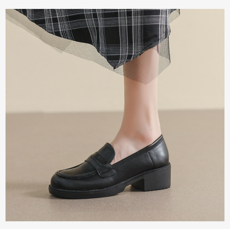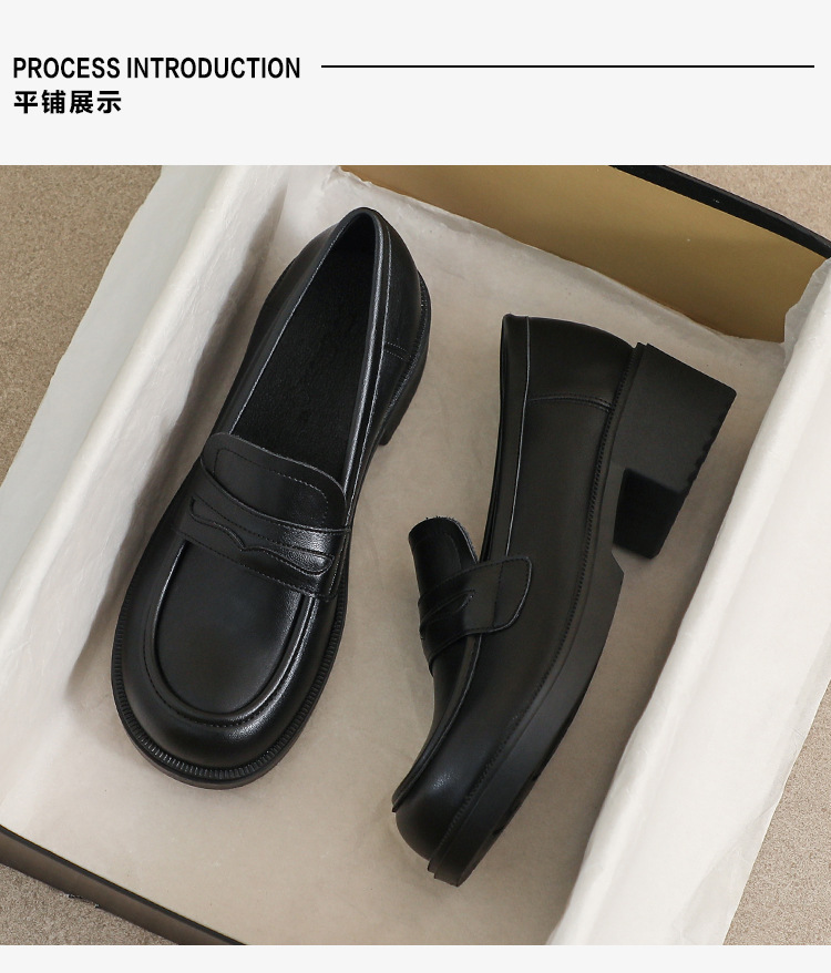 여성용 천연 가죽 하이힐 2026년 신상 봄/가을 영국 스타일 블랙 소프트솔 34사이즈 로퍼스토어 가기