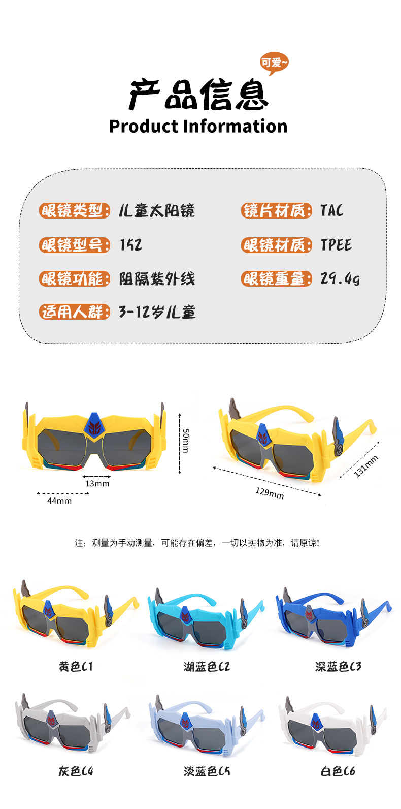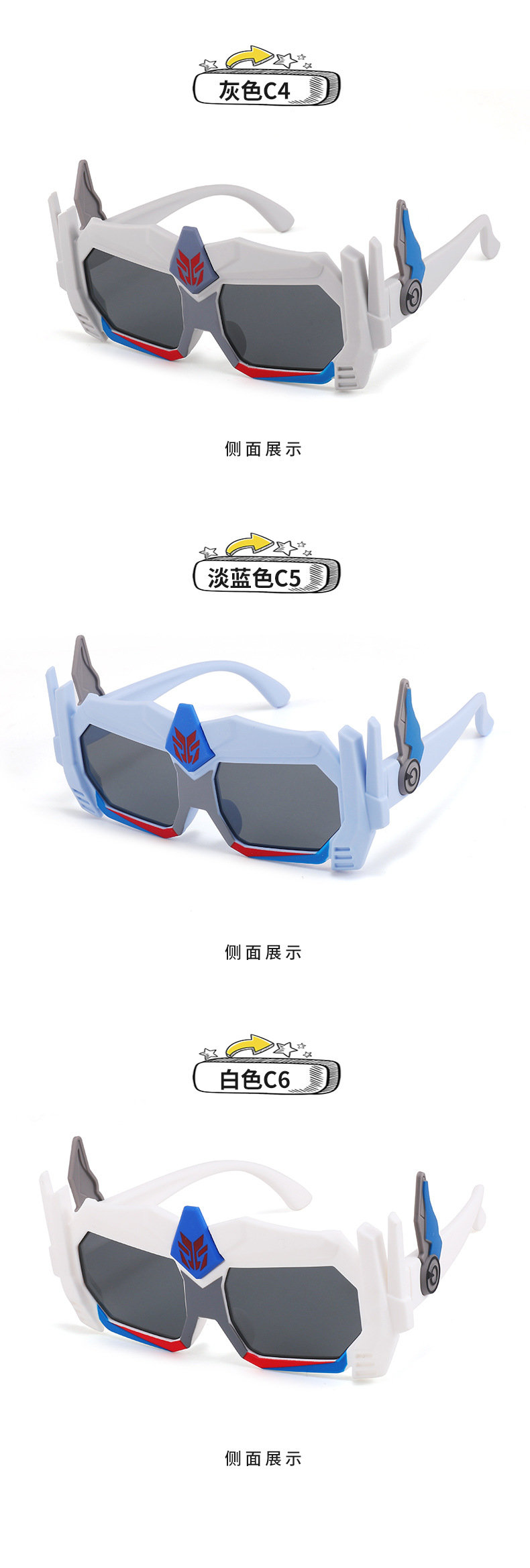 새로운 어린이 만화 선글라스 로봇 모양 아기 태양 보호 선글라스 어린이 유행 안경 JC152