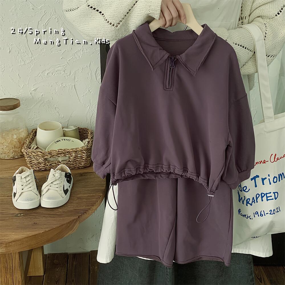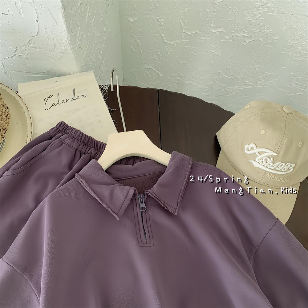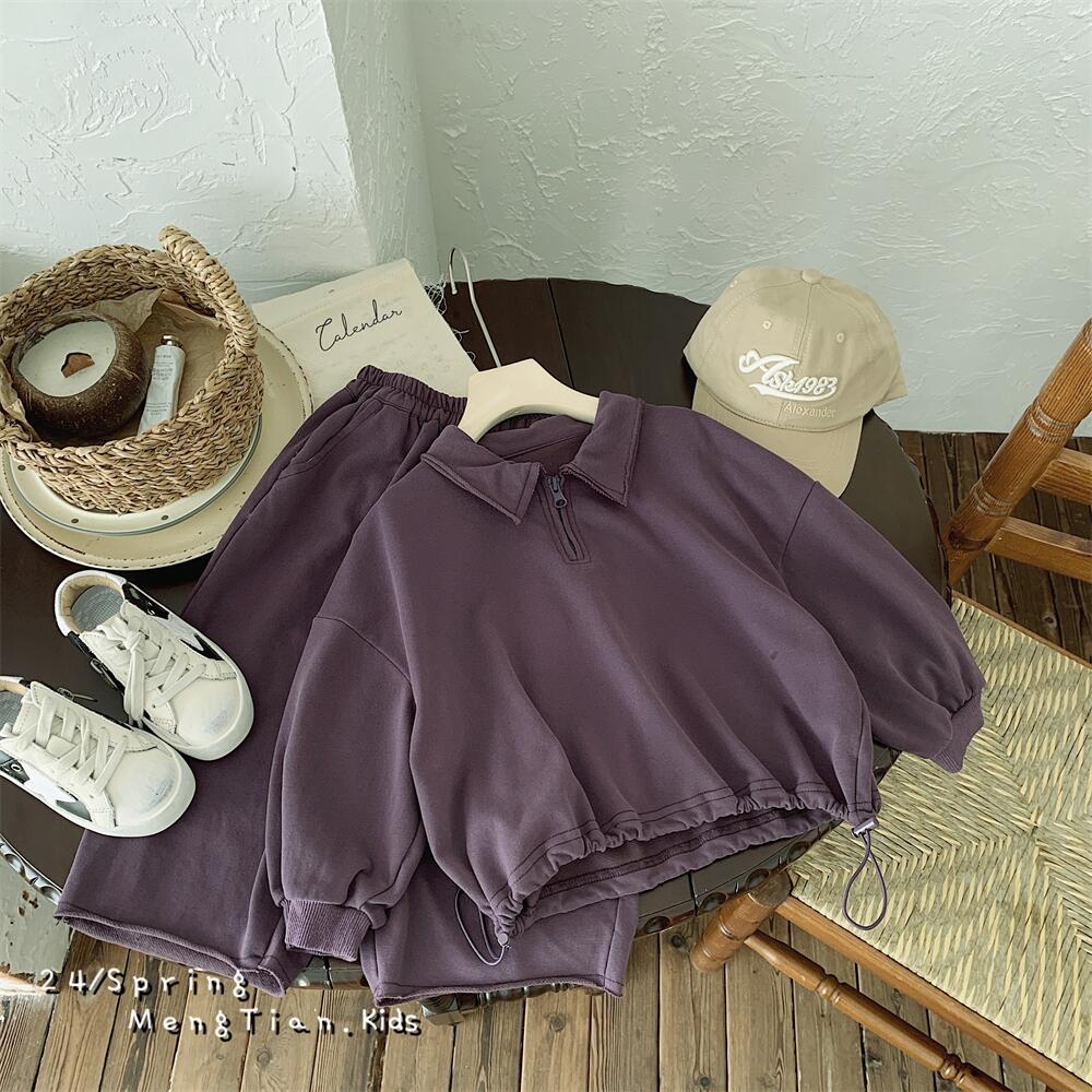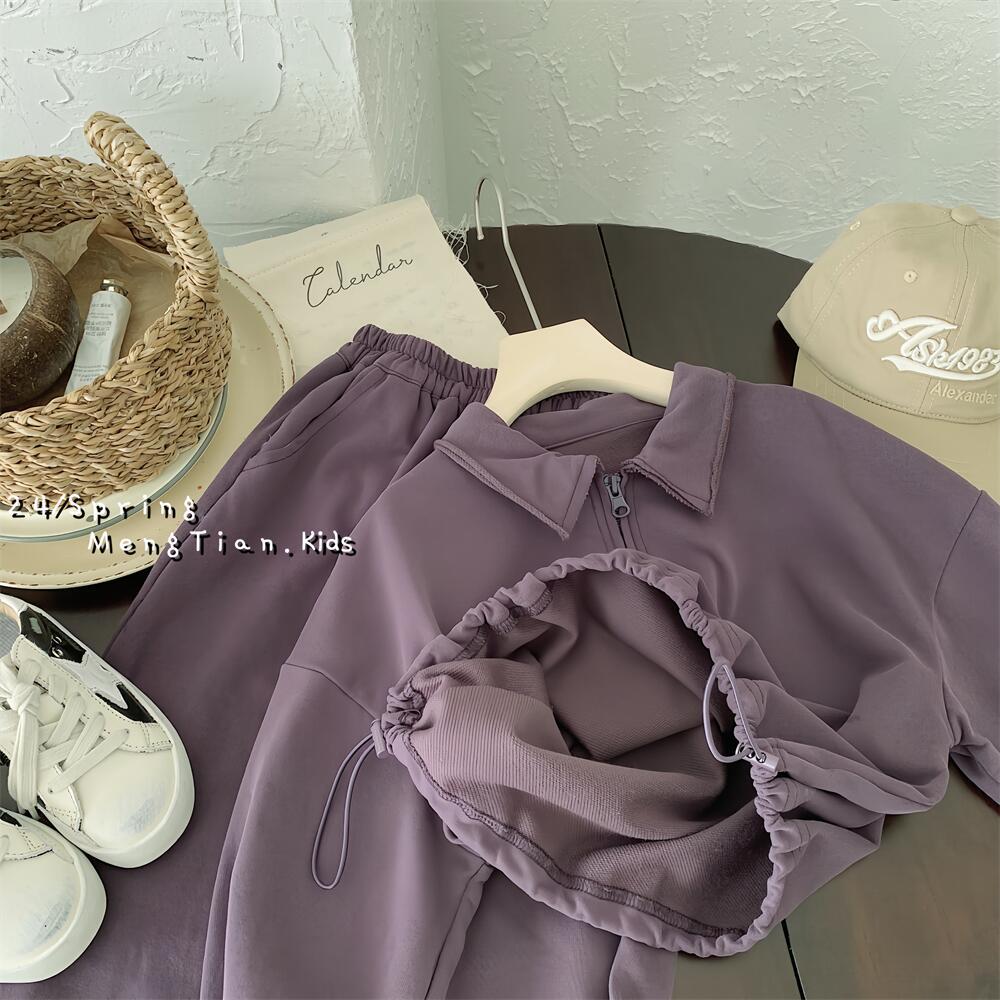 남녀 아동 스포츠복 봄 신상 25종 한국 스타일 아동 폴로셔츠 와이드 팬츠 투피스 세트 안감 있는 아동복스토어 가기