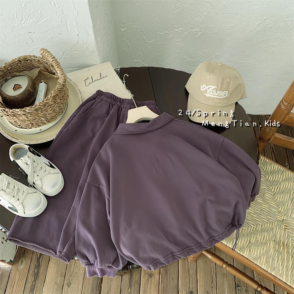 남녀 아동 스포츠복 봄 신상 25종 한국 스타일 아동 폴로셔츠 와이드 팬츠 투피스 세트 안감 있는 아동복