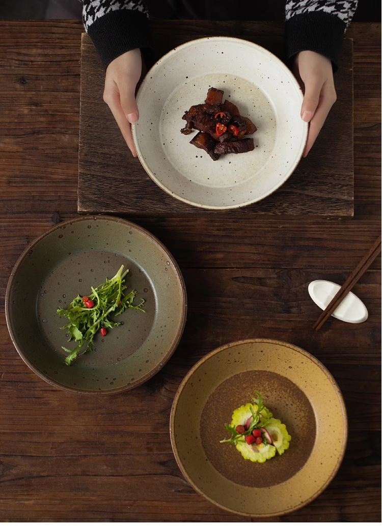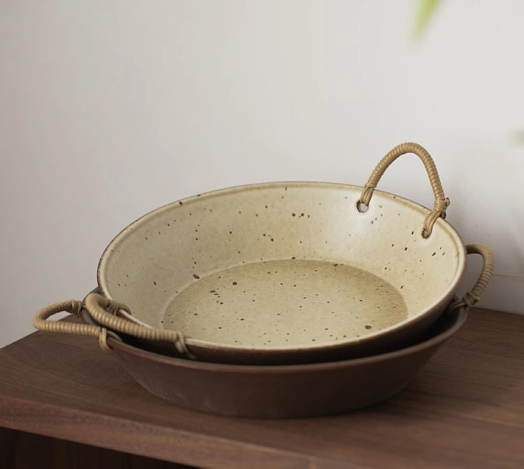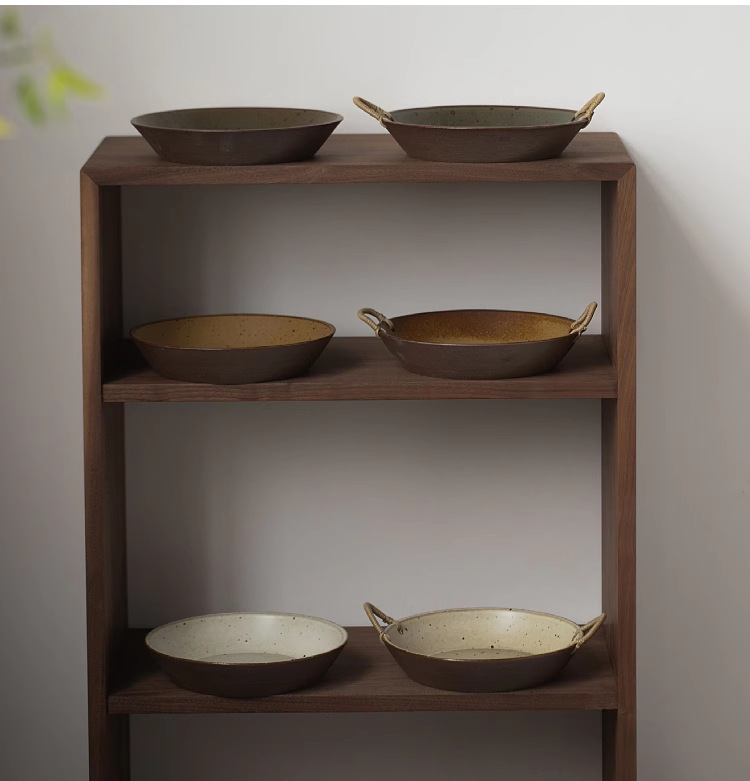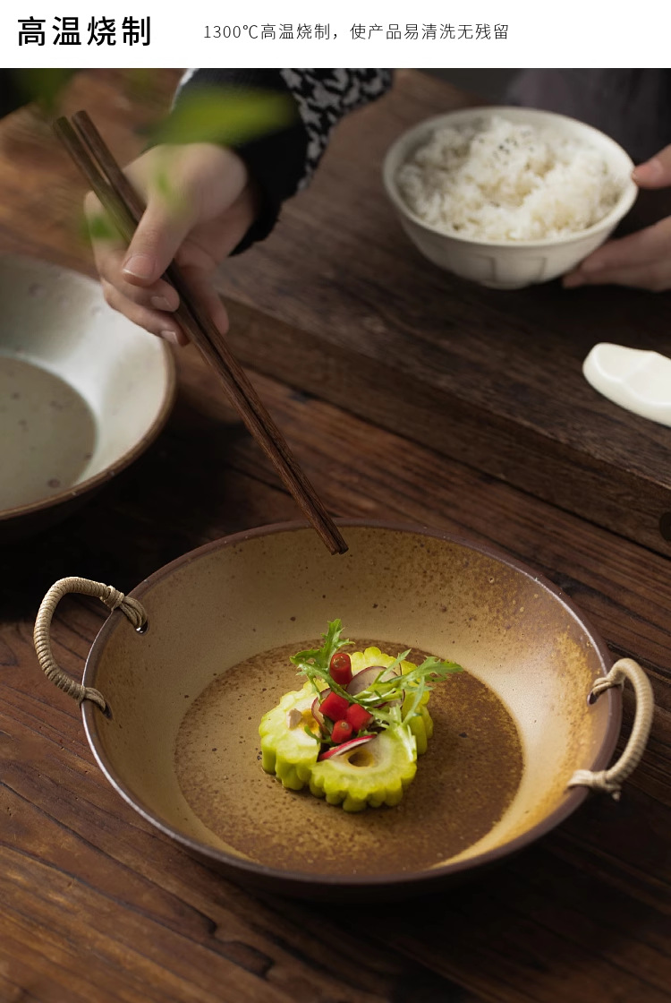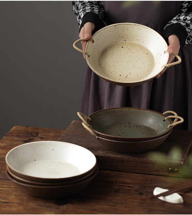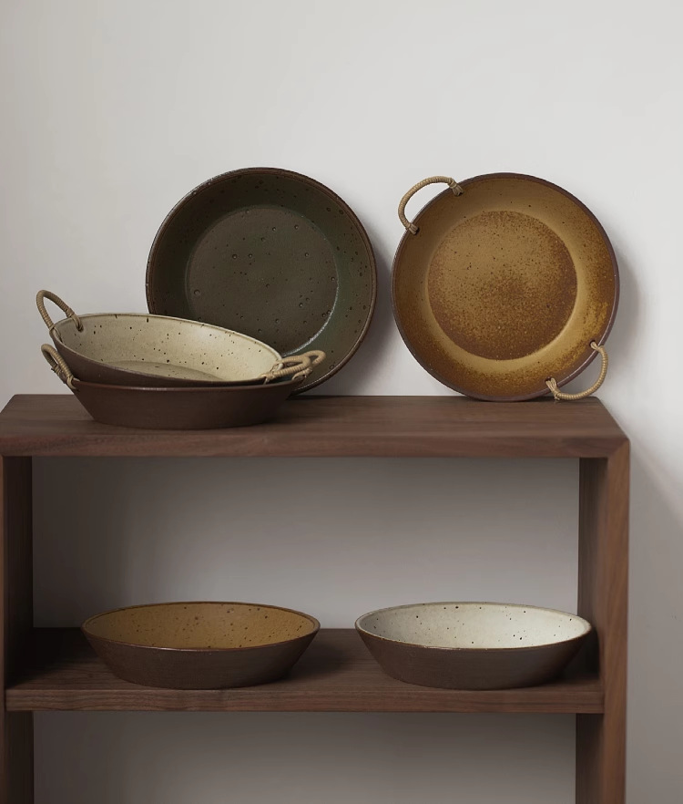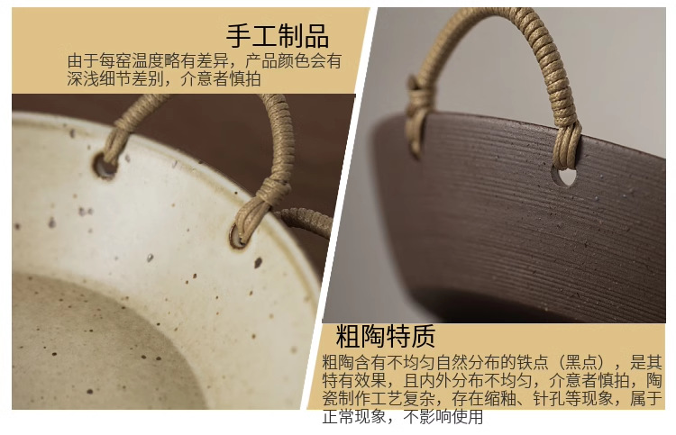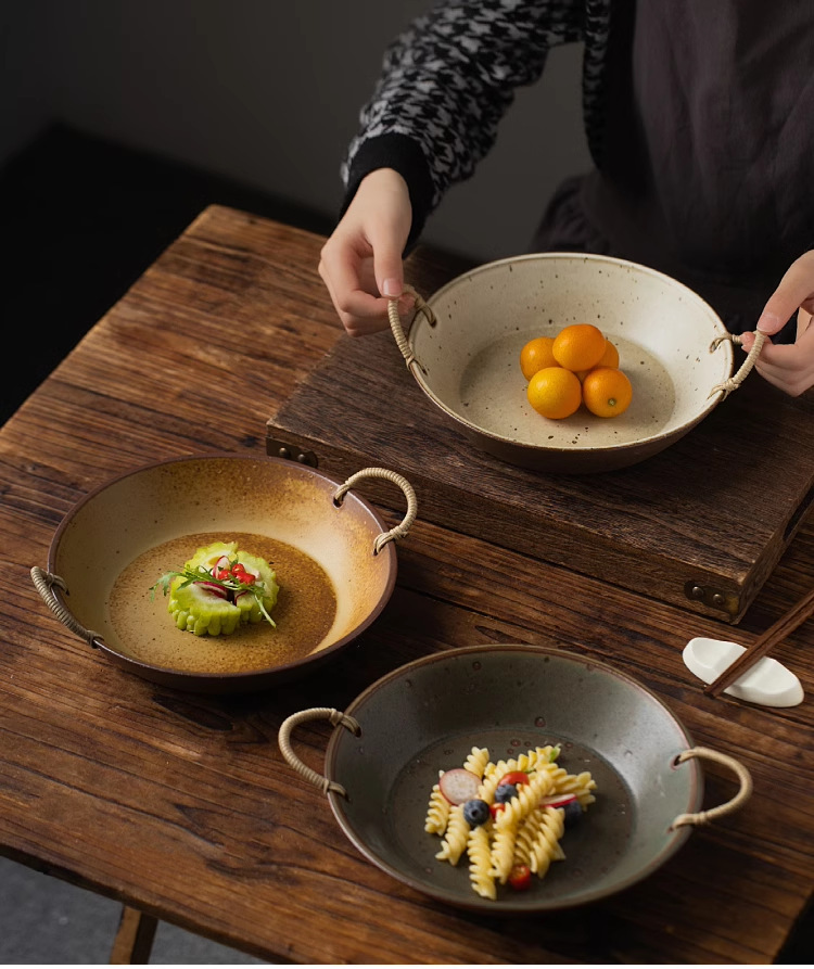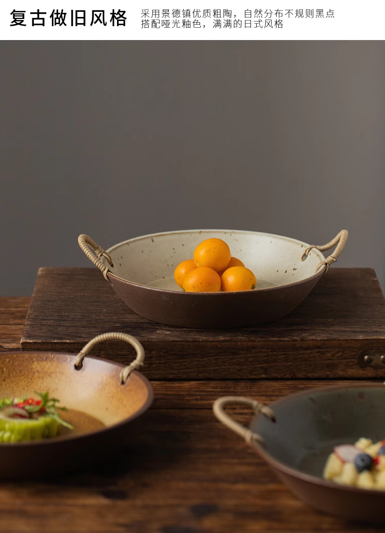 일본식 석기 수제 요리 가정용 과일 플레이트 호텔 레스토랑 세라믹 딥 플레이트 바이노럴 패스트리 요리 대마 로프 스프 분지