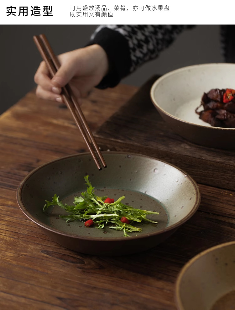 일본식 석기 수제 요리 가정용 과일 플레이트 호텔 레스토랑 세라믹 딥 플레이트 바이노럴 패스트리 요리 대마 로프 스프 분지스토어 가기