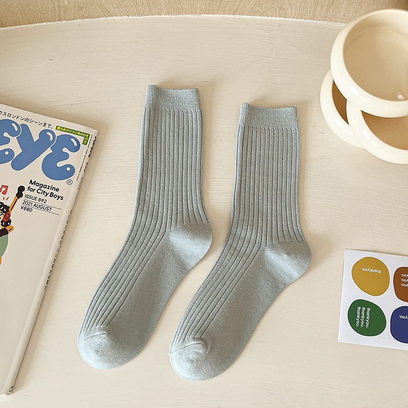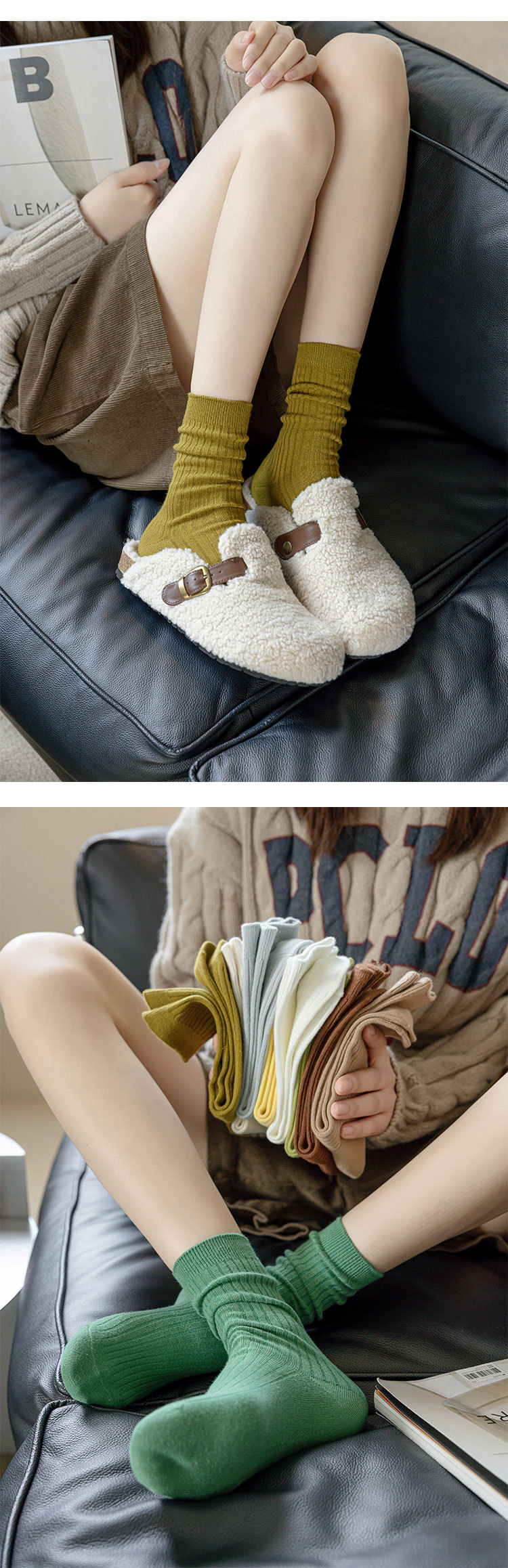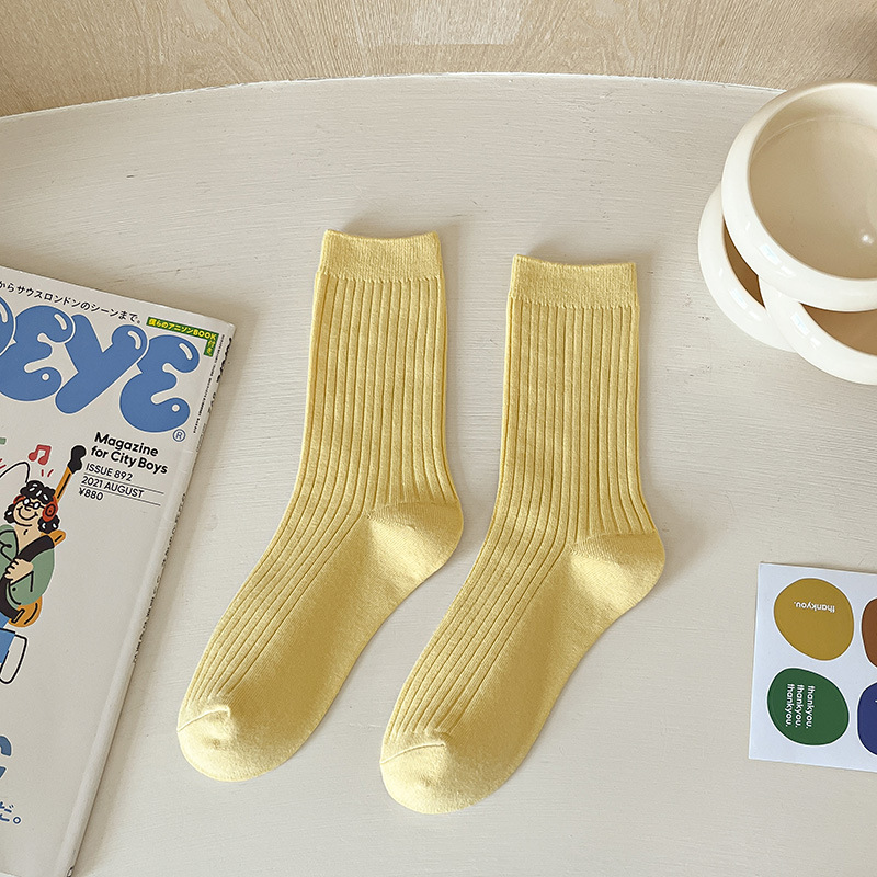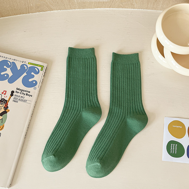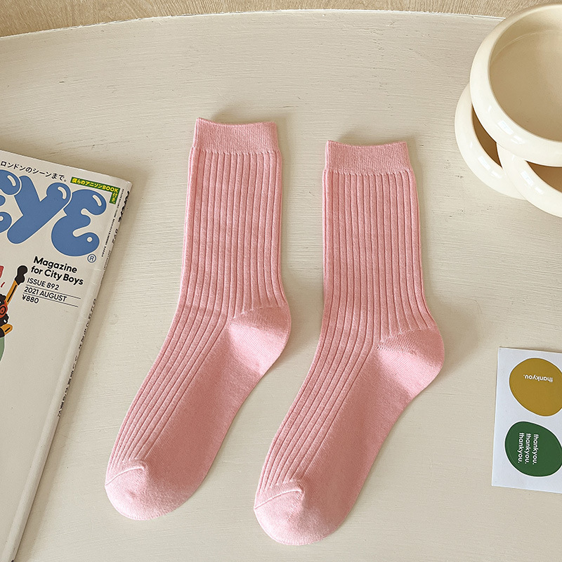 여성을위한 새로운 도파민 더블 니트 양말 봄과 가을 일본인은 세련된 중간 종아리 길이 양말 마카롱 컬러 빗질면 더미 양말스토어 가기