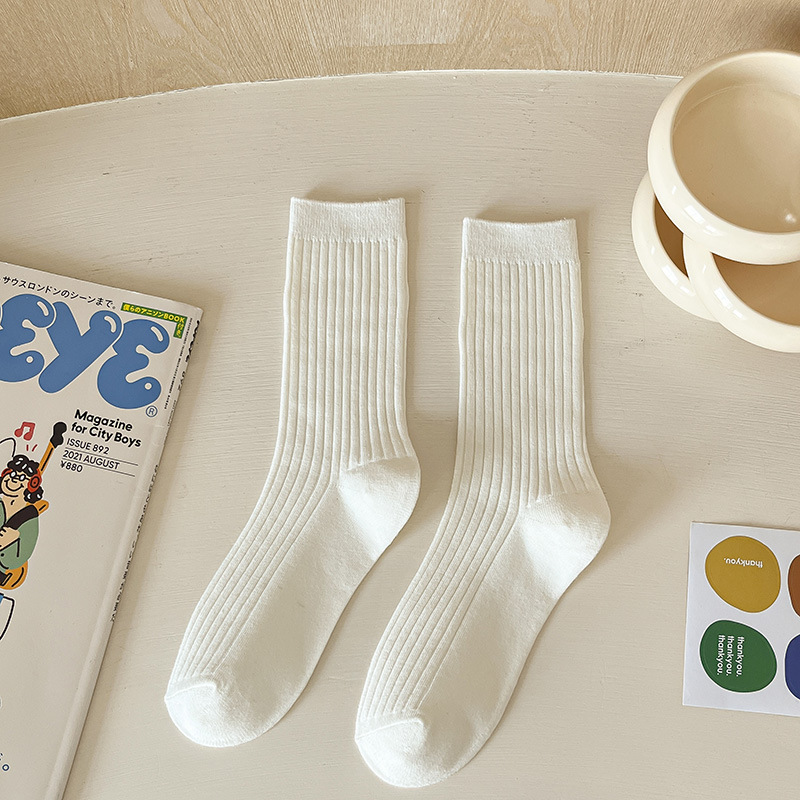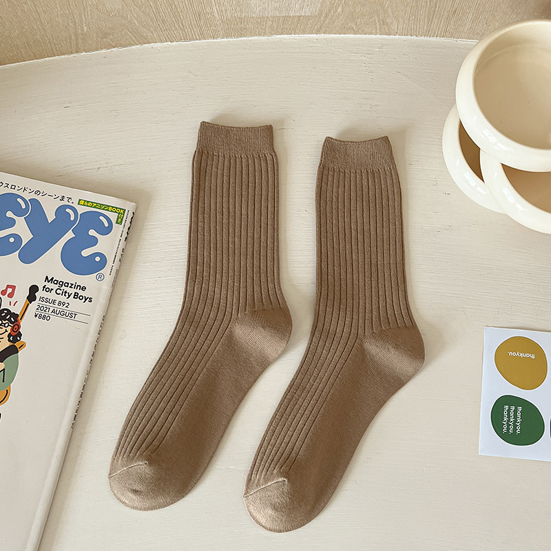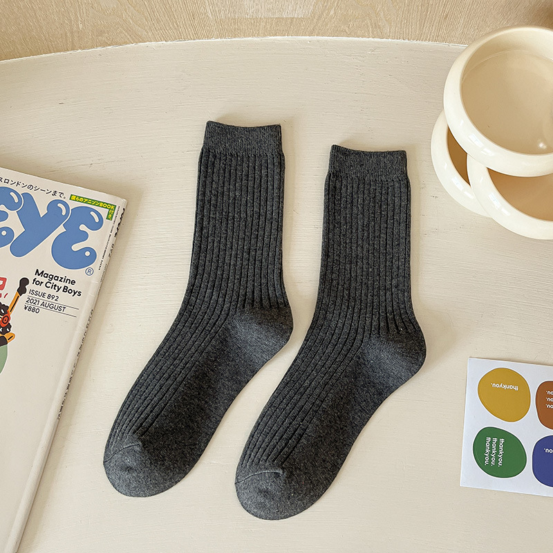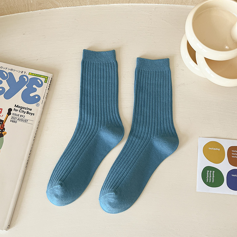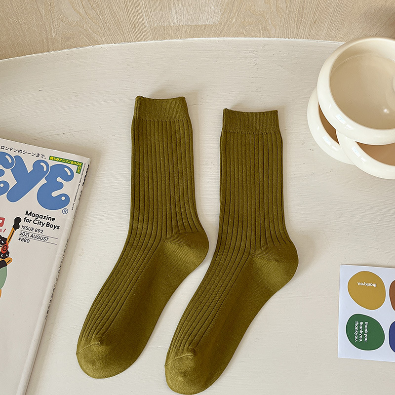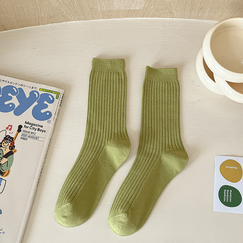 여성을위한 새로운 도파민 더블 니트 양말 봄과 가을 일본인은 세련된 중간 종아리 길이 양말 마카롱 컬러 빗질면 더미 양말스토어 가기