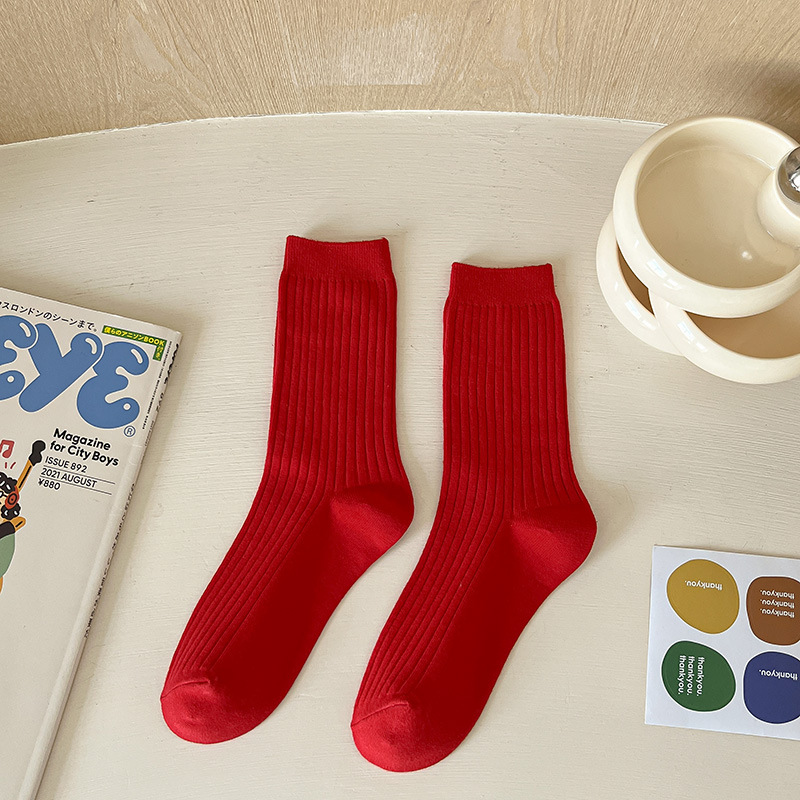 여성을위한 새로운 도파민 더블 니트 양말 봄과 가을 일본인은 세련된 중간 종아리 길이 양말 마카롱 컬러 빗질면 더미 양말