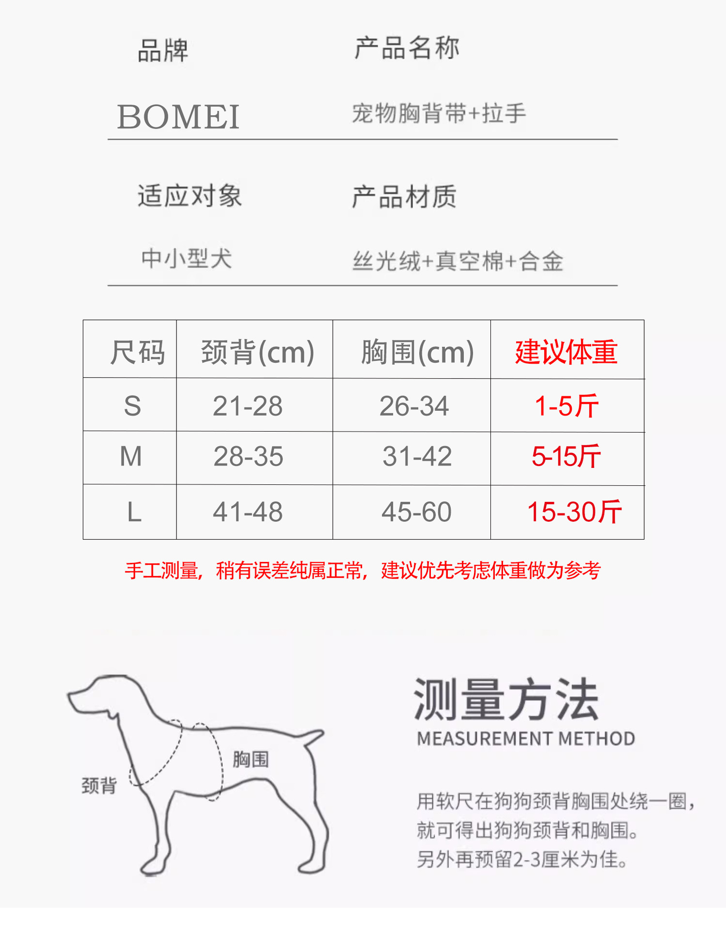 BOMEI Dog Leash Chest Strap Small Dog Leash Dog Leash Teddy Corky의 무게는 개보다 킬로 더 큽니다.스토어 가기
