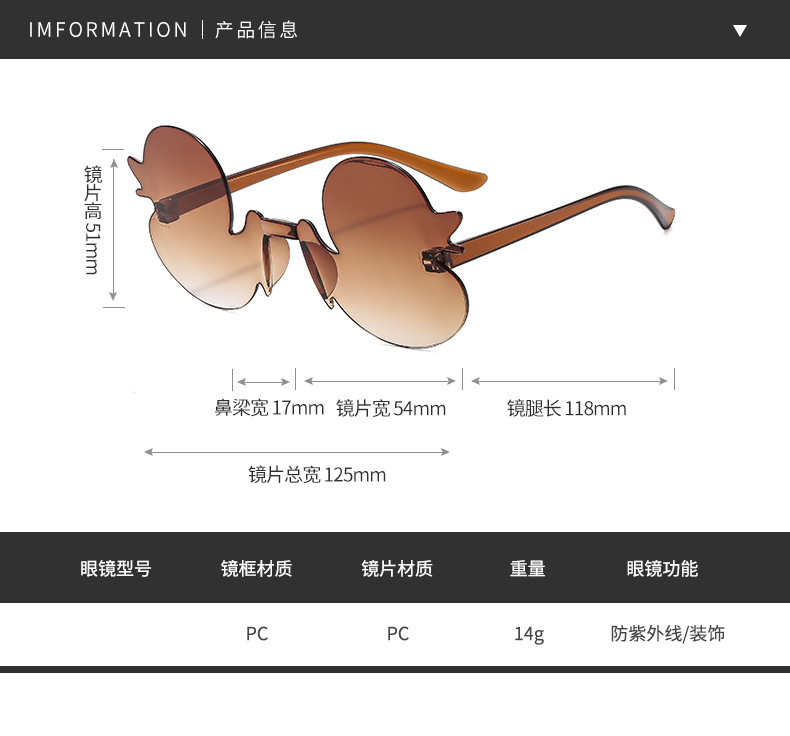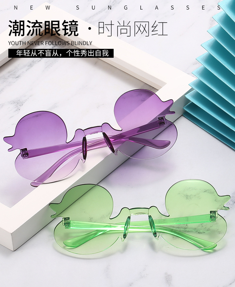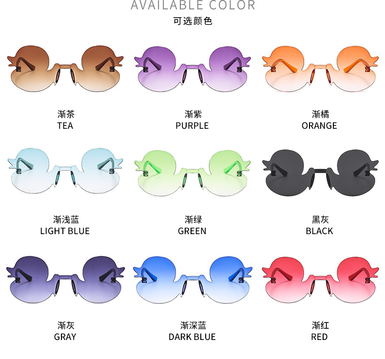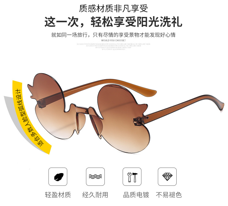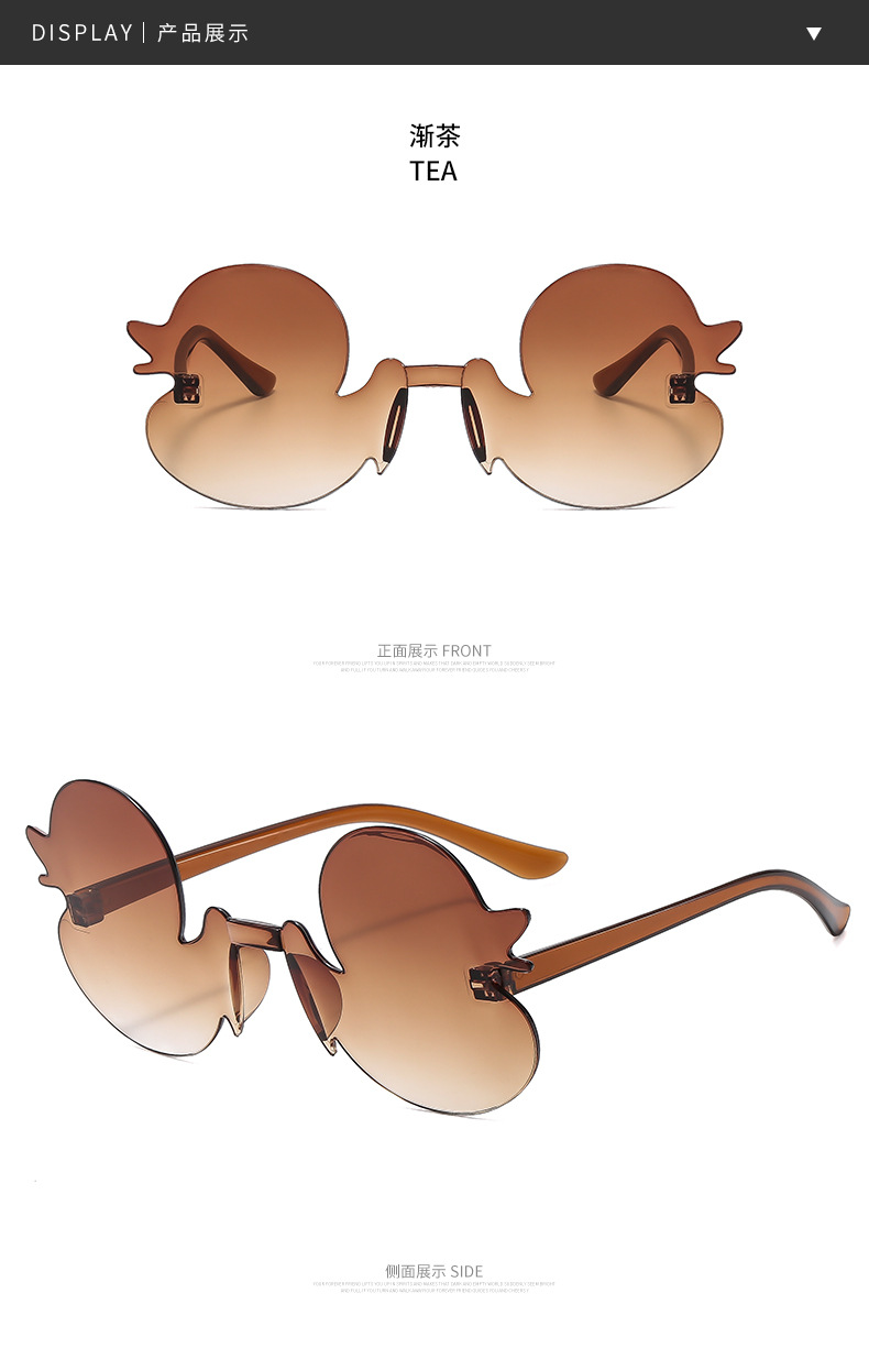 만화 작은 오리 개인화 된 프레임없는 어린이 선글라스 소년 소녀를위한 재미있는 선글라스 새로운 패션 유행 선탠 안경