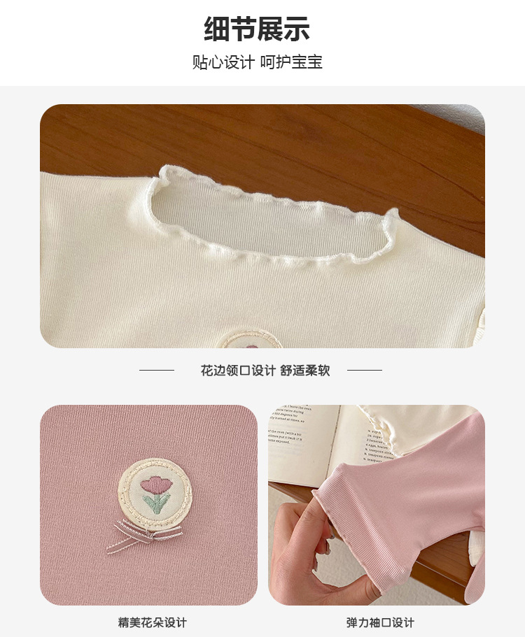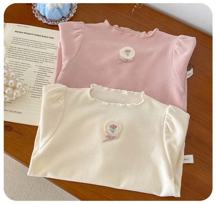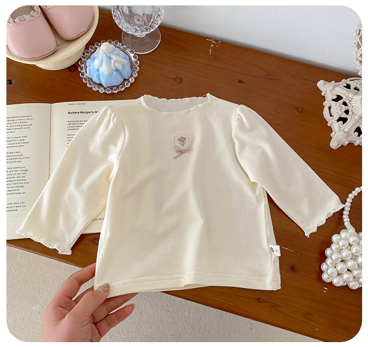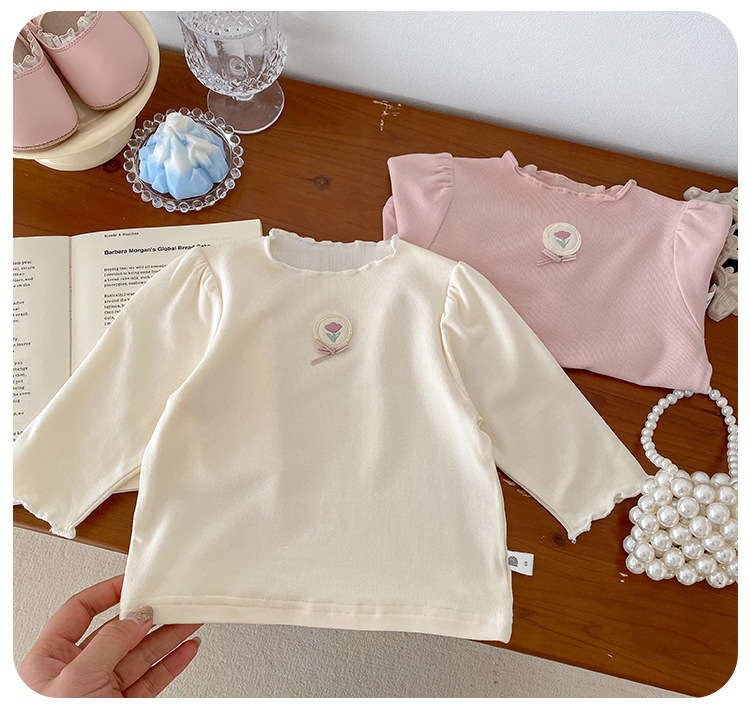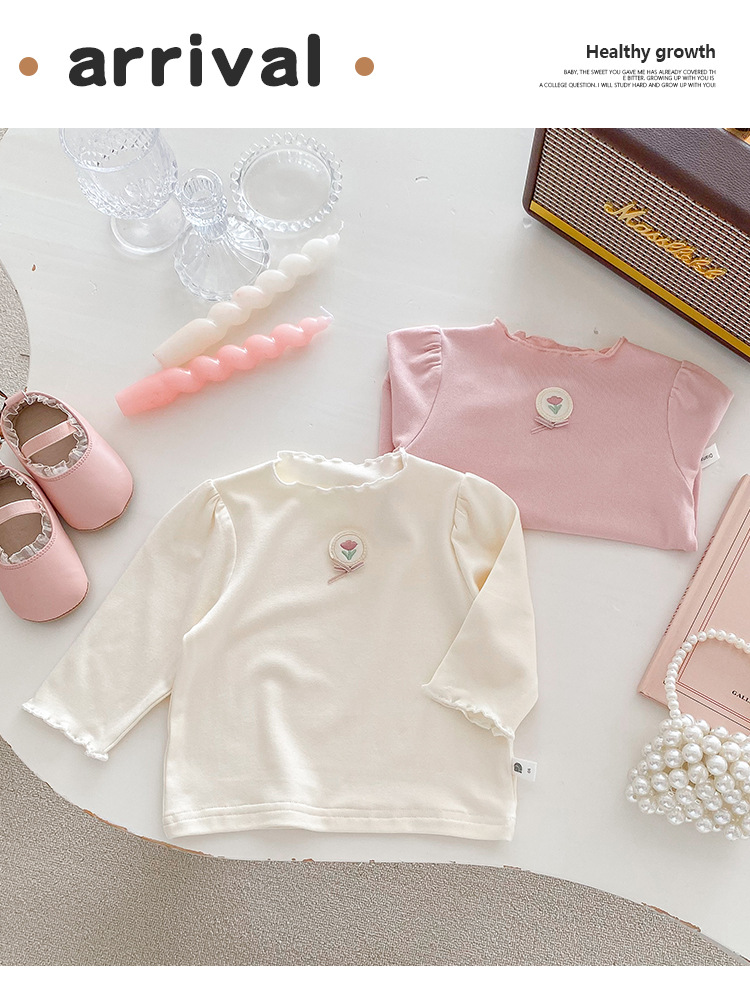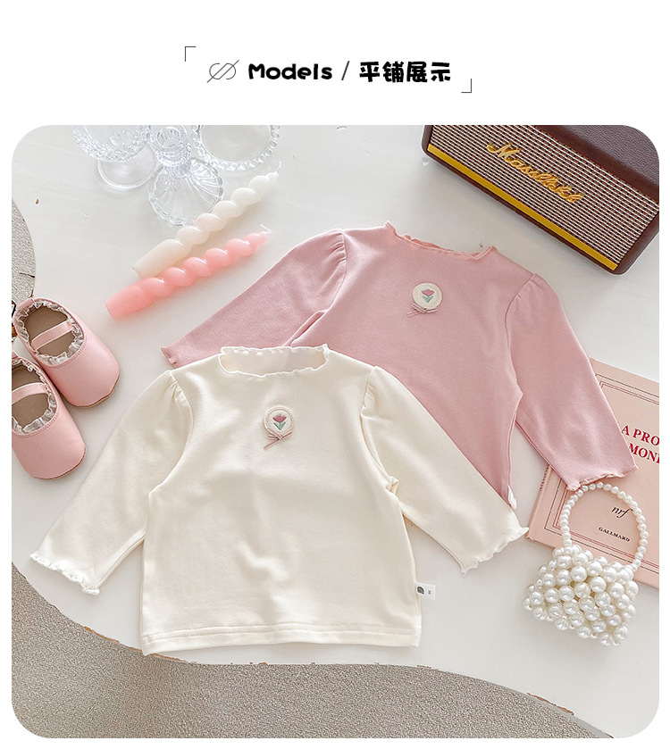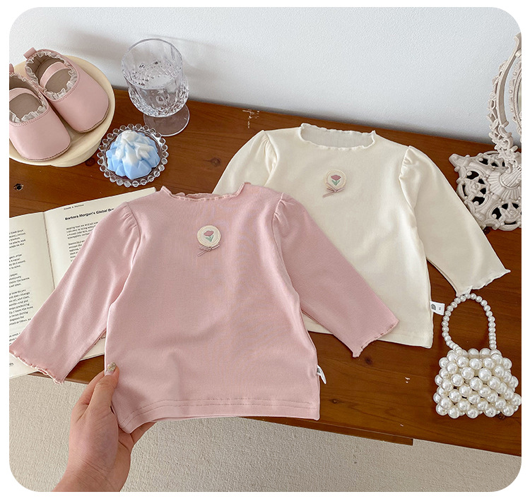 Dianxi 아기 소녀 바닥 셔츠 2024 봄, 가을 유아 다목적 달콤한 꽃 로고 탑 코튼 긴팔 T스토어 가기