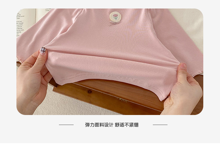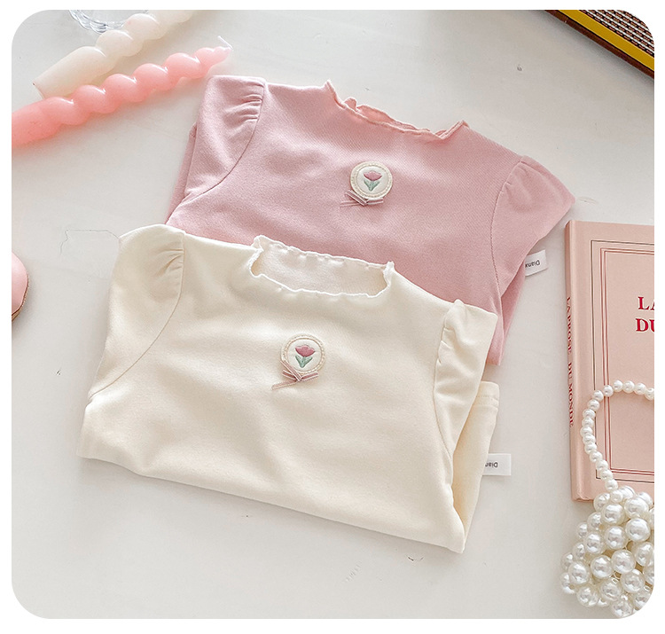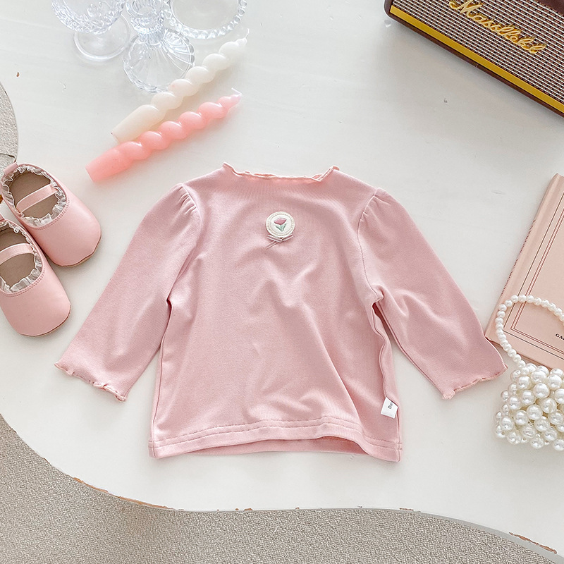 Dianxi 아기 소녀 바닥 셔츠 2024 봄, 가을 유아 다목적 달콤한 꽃 로고 탑 코튼 긴팔 T