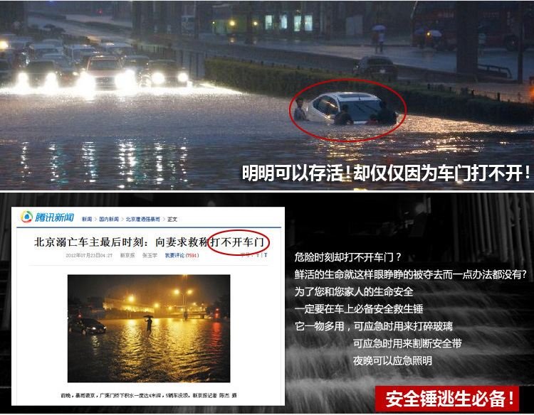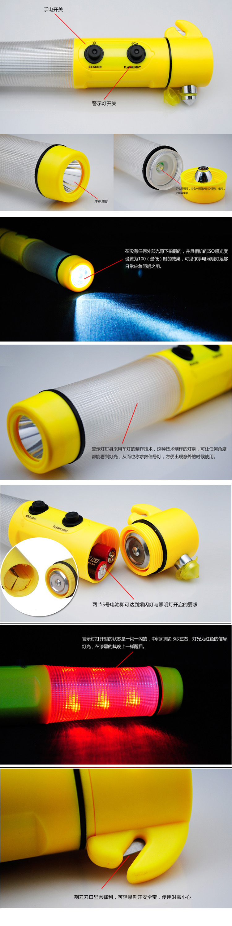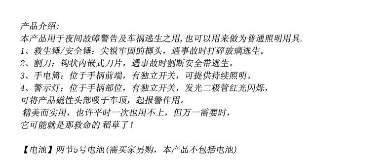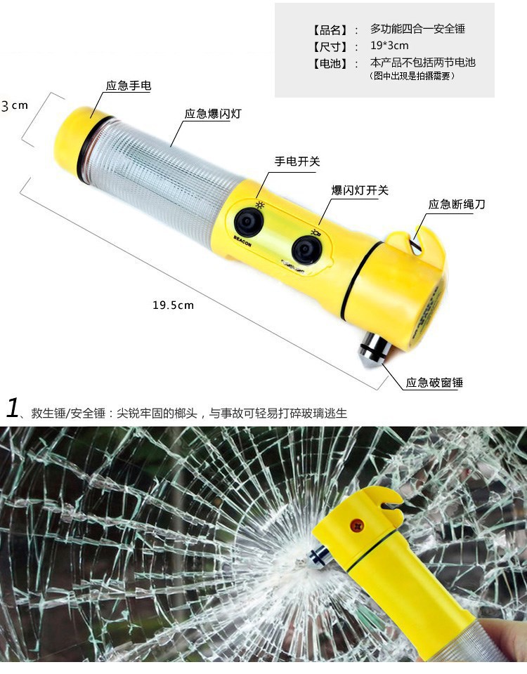 产品名称: 汽车锤 四合一救生锤 逃生锤多功能手电筒应急灯多功能