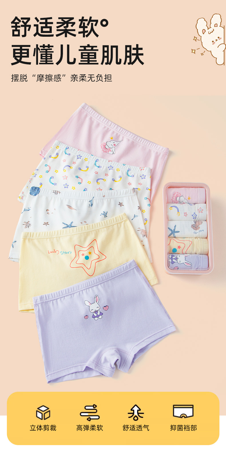 새로운 여아용 순면 A급 사각팬티, 아동용 중대형 사각팬티, 여아용 베이비 사각팬티 도매스토어 가기