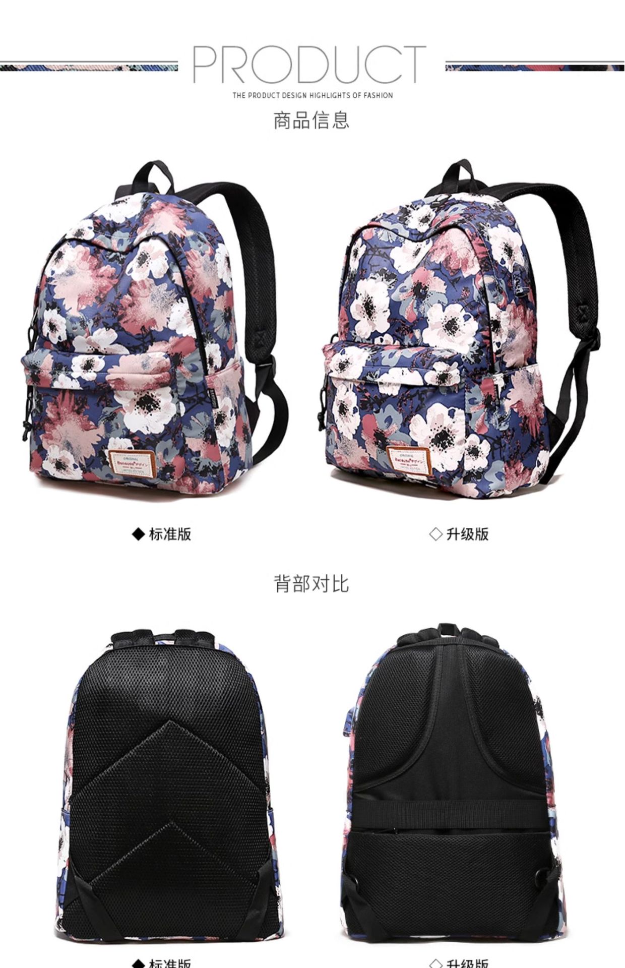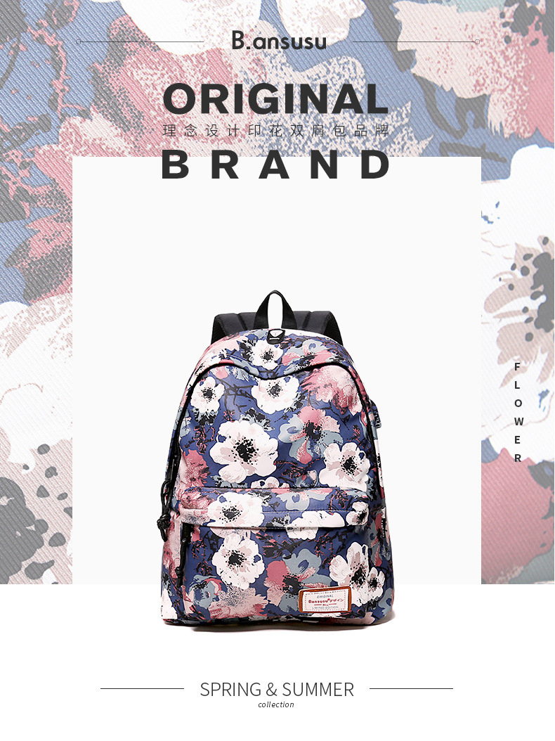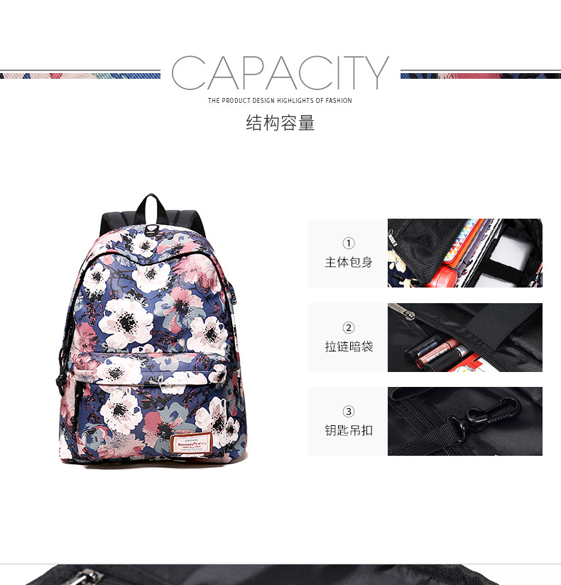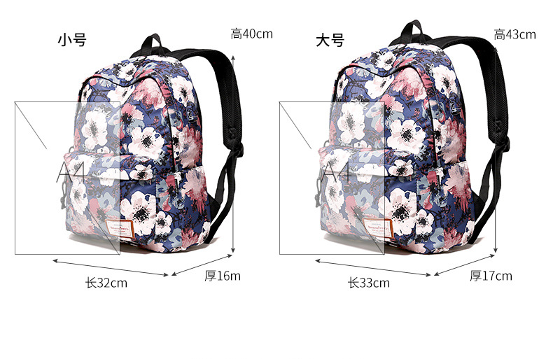 [머리카락의 세대] 대용량 인쇄 배낭 여성의 한국 패션 레저 배낭 학교 가방 여행