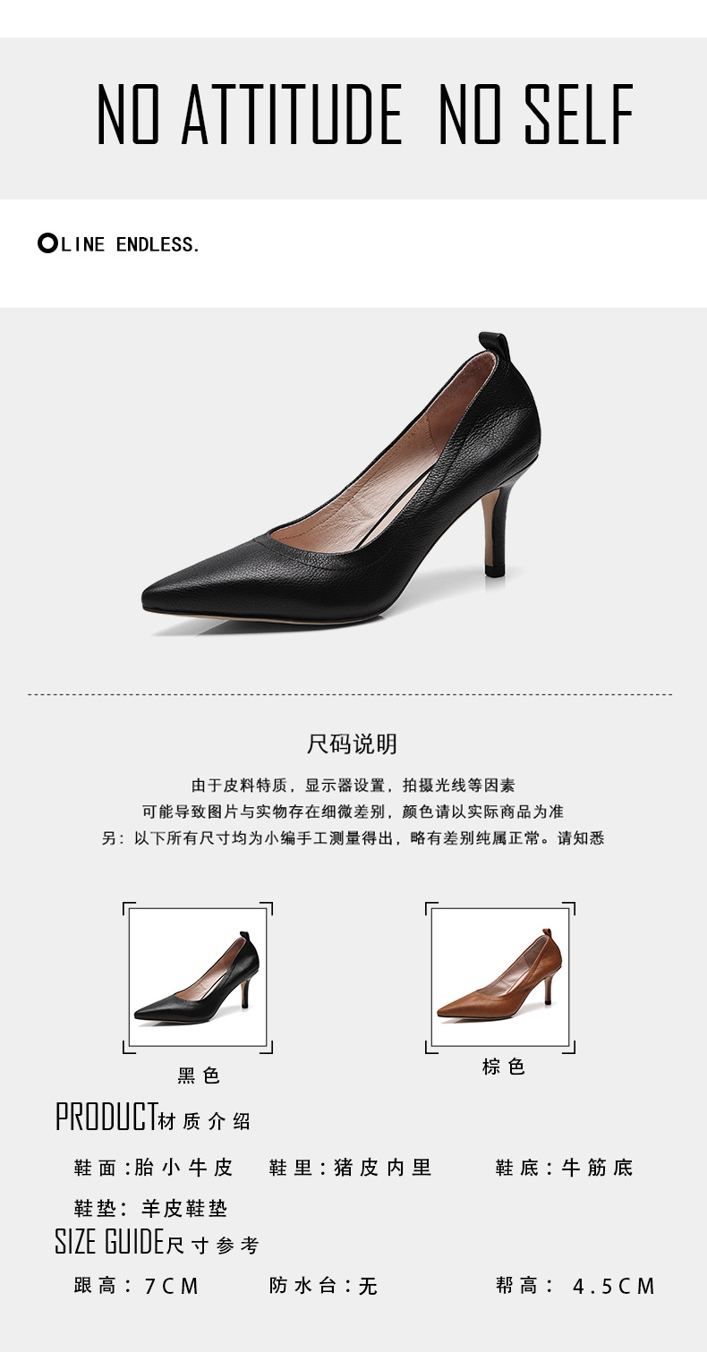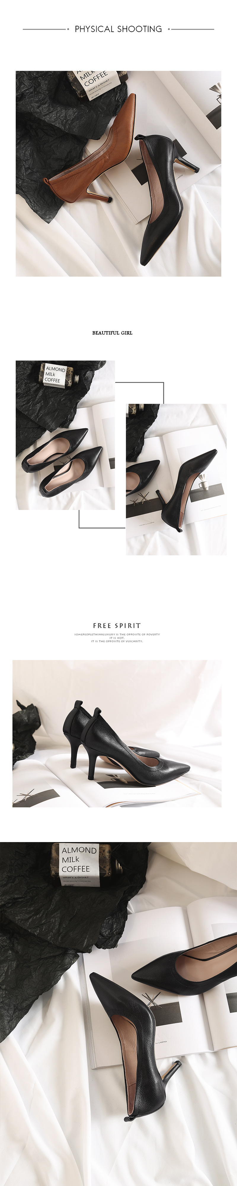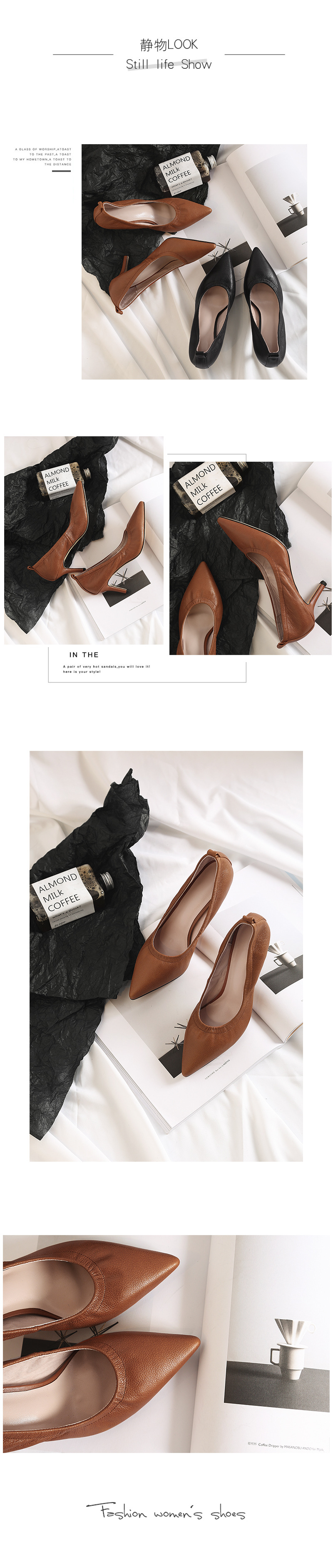 Cowhide 백 탄성 뾰족한 하이힐 신발 풀 가죽 스틸레토 힐 OL 싱글 레이어 신발 부드러운 힘줄 바닥 우유 신발 여성 신발 가을스토어 가기
