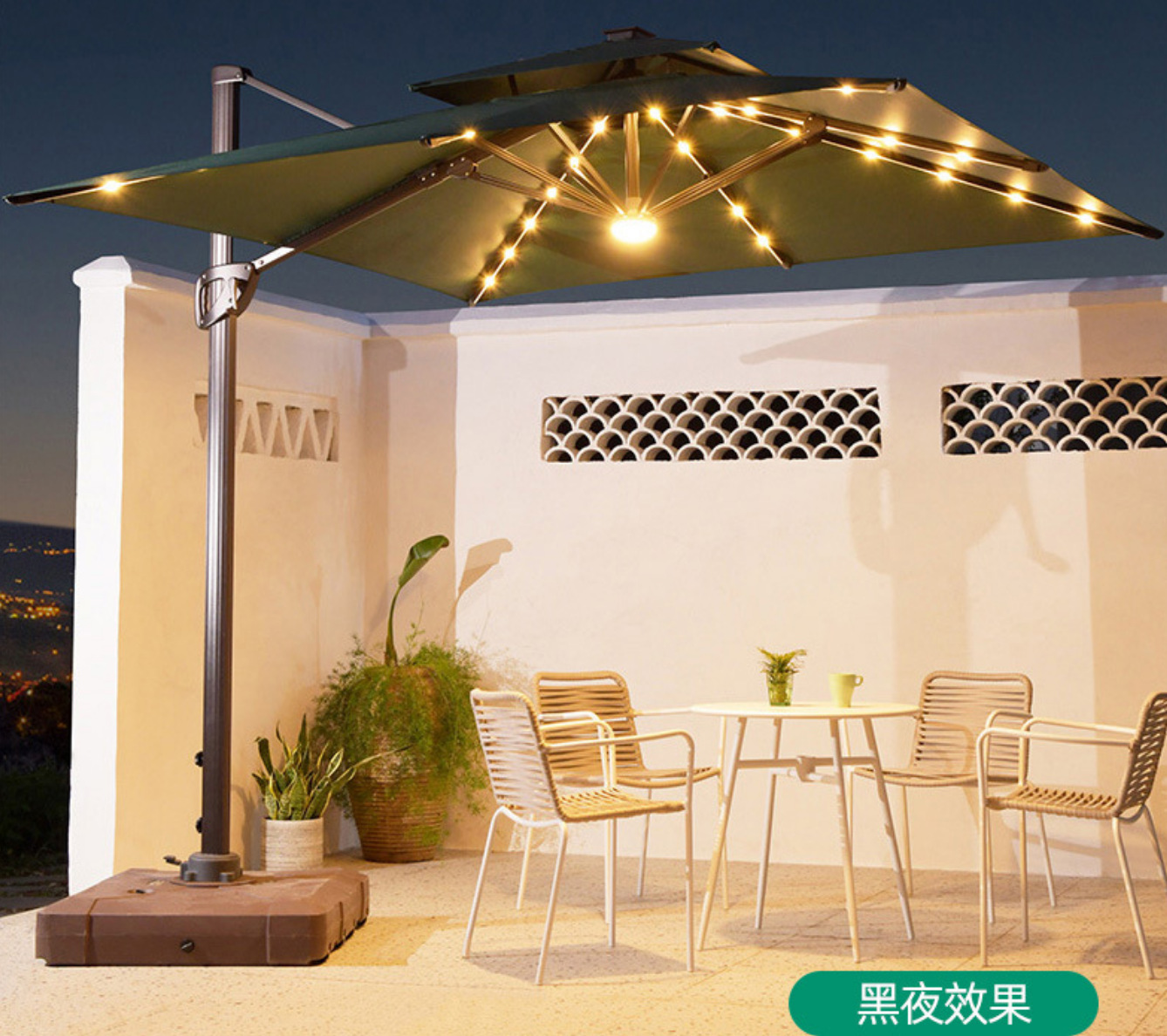 • [충전식] 태양광 LED 램프 비즈 사각 2.5M, 130KG 물탱크(버건디, 다크그린, 카키, 커피, 오프화이트)