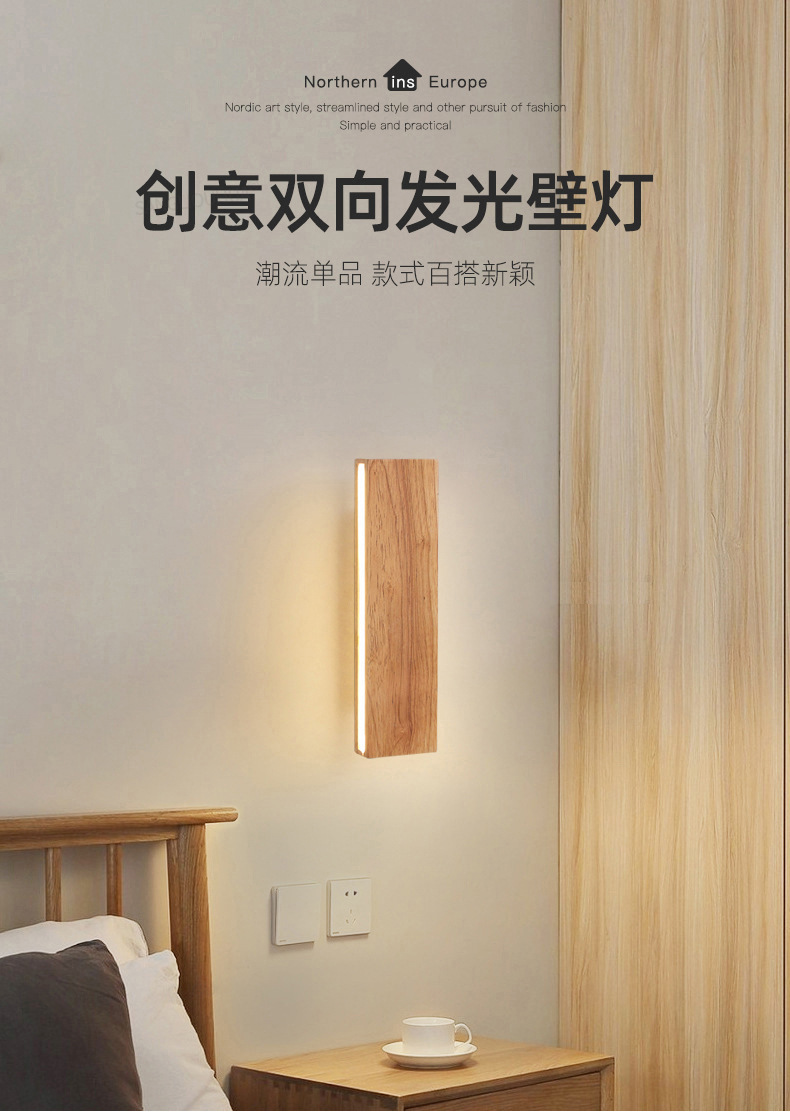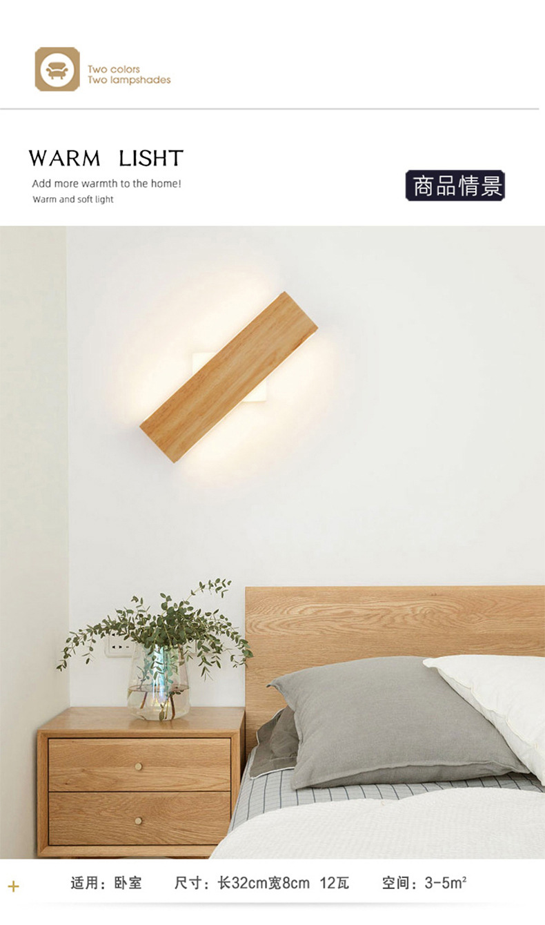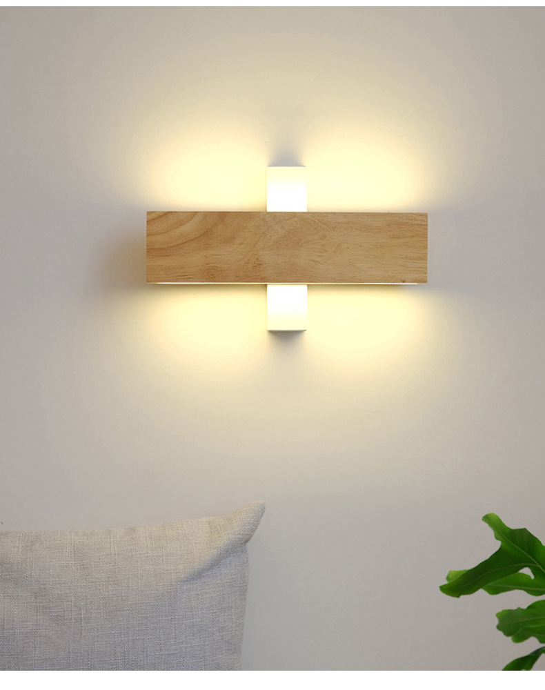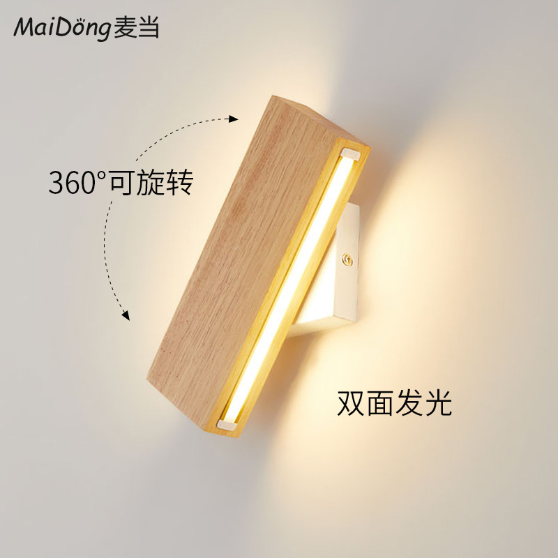 북유럽 침실 침대 옆 벽 램프 일본식 단단한 나무 B & B 복도 램프 양면 발광 회전 가능한 스트립 벽 램프스토어 가기