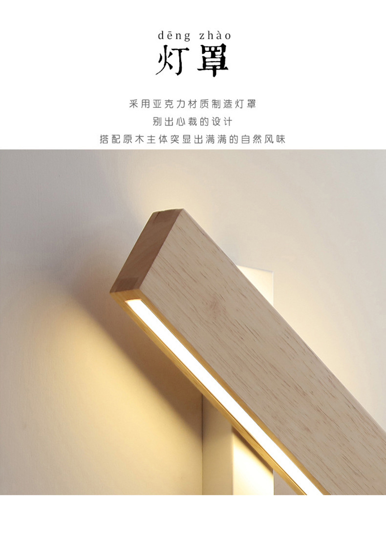 북유럽 침실 침대 옆 벽 램프 일본식 단단한 나무 B & B 복도 램프 양면 발광 회전 가능한 스트립 벽 램프