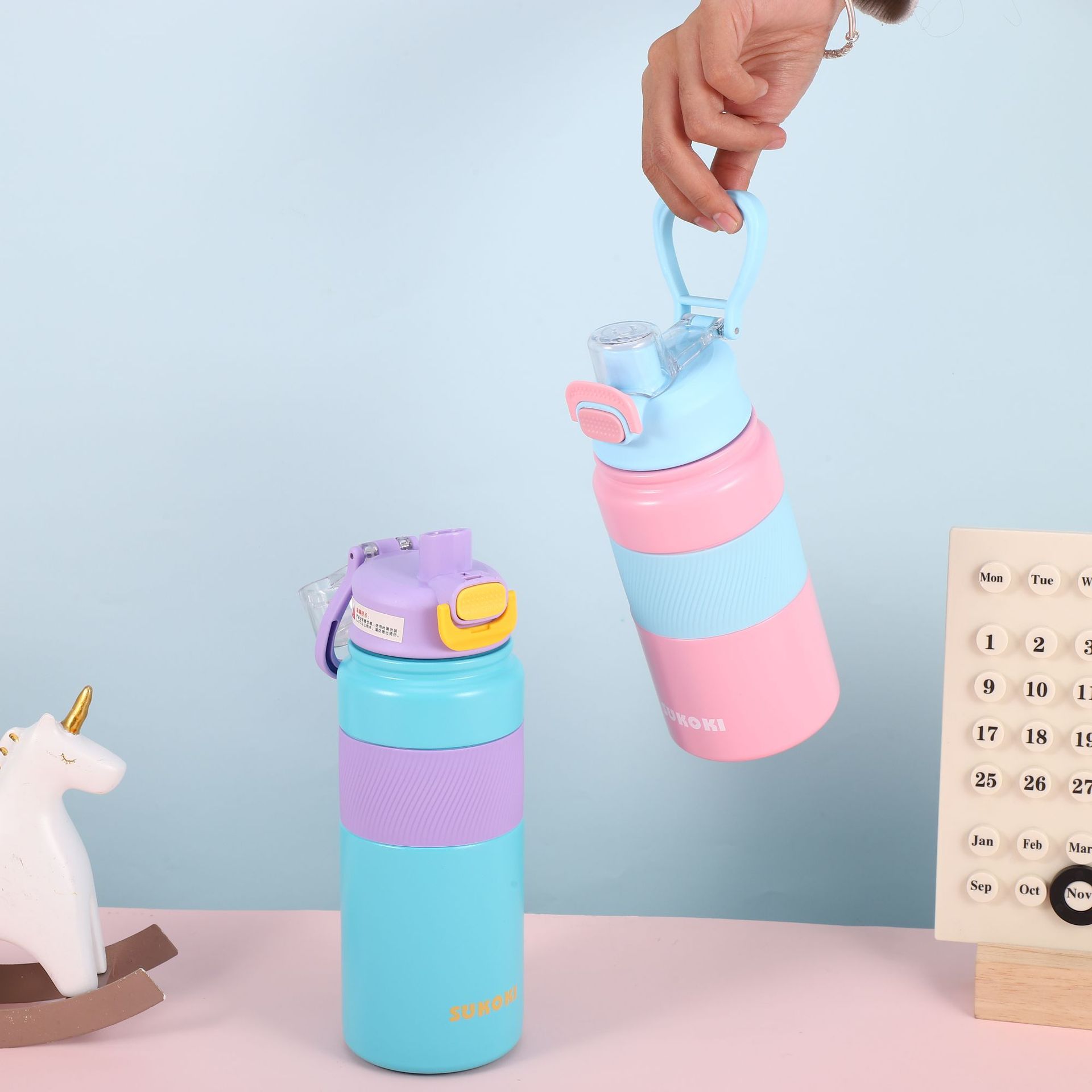 316 스테인레스 스틸 스포츠 물병 잠금 핸들 등반 냄비 더블 마시는 빨대 야외 승마 진공 보온병 컵스토어 가기