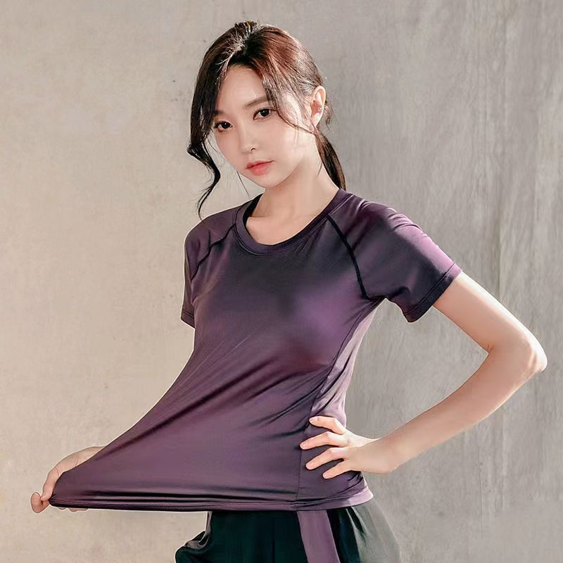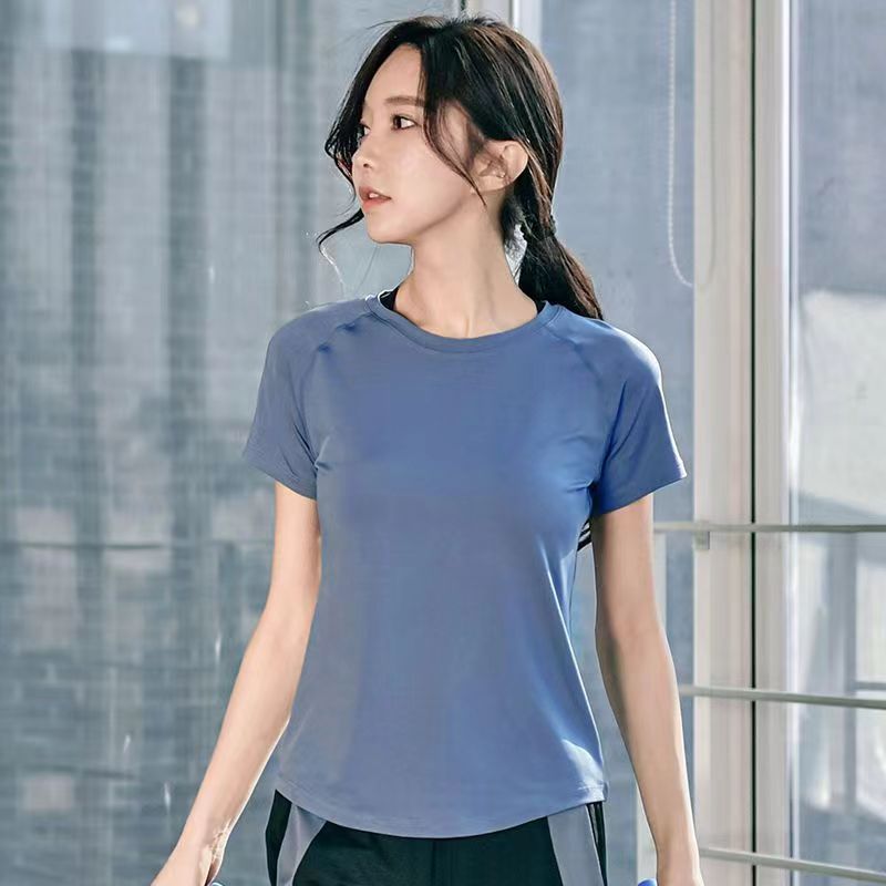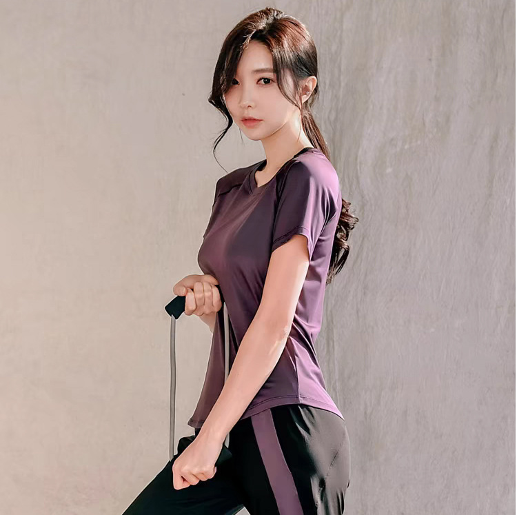 여성용 반팔 속건성 의류, 요가 피트니스 의류, 대형 통기성 루즈 캐주얼 스포츠 러닝 아침 러닝 여성용 봄 여름 상의스토어 가기